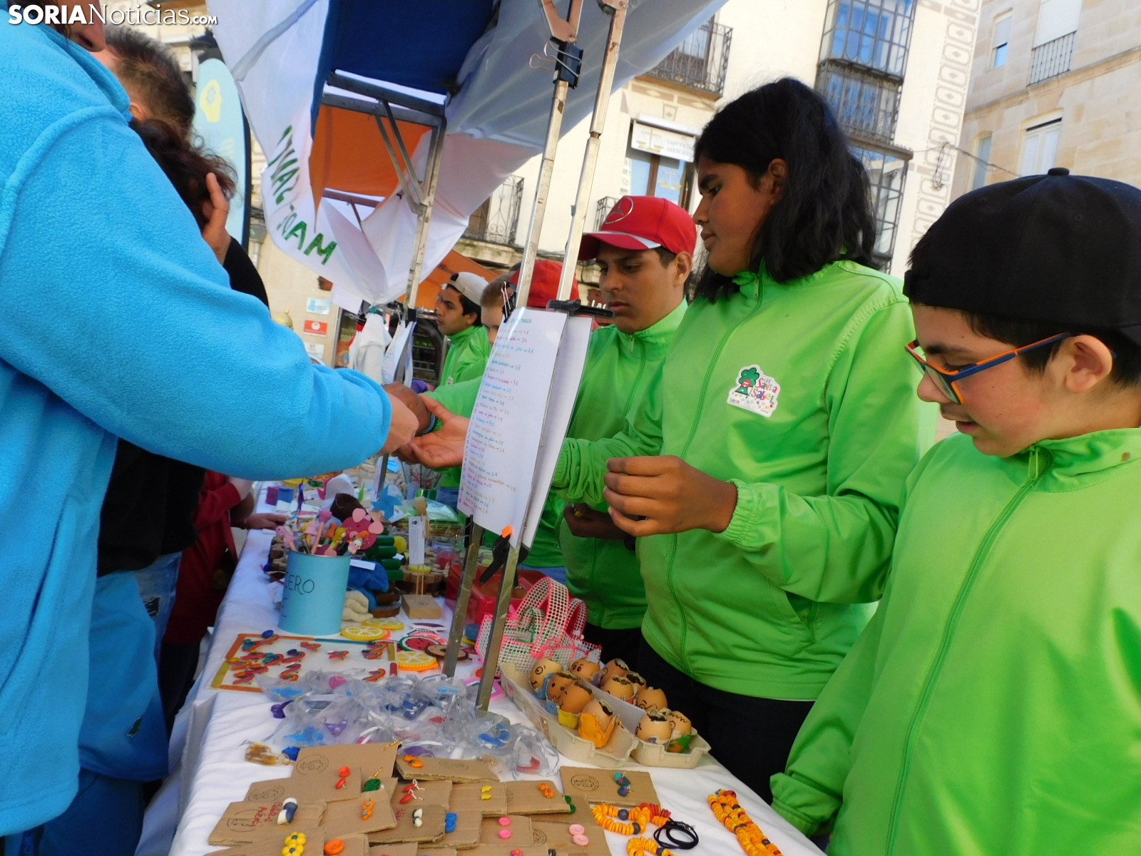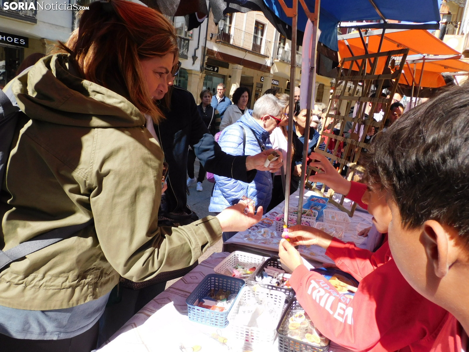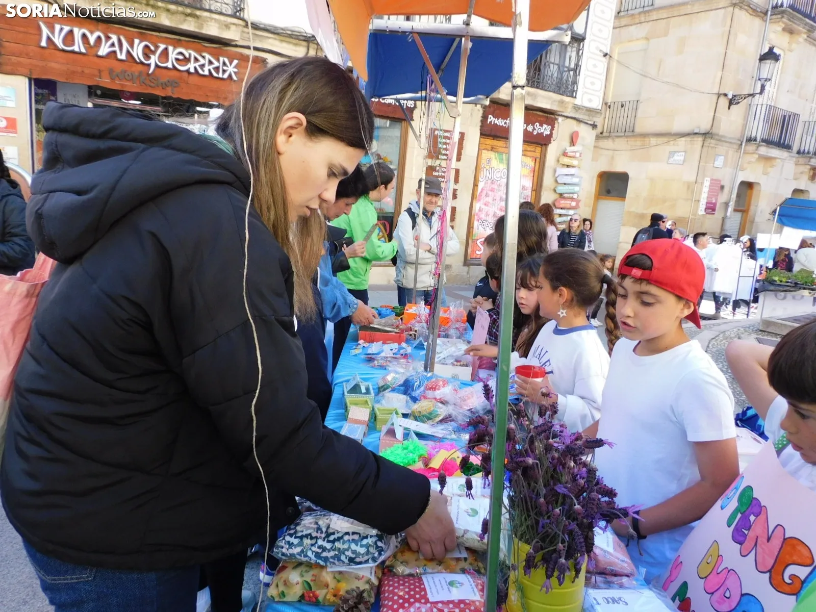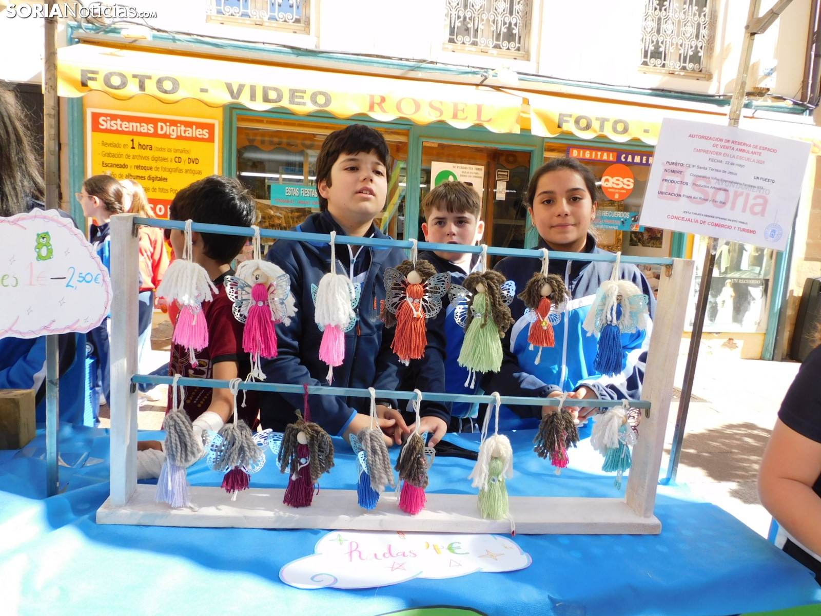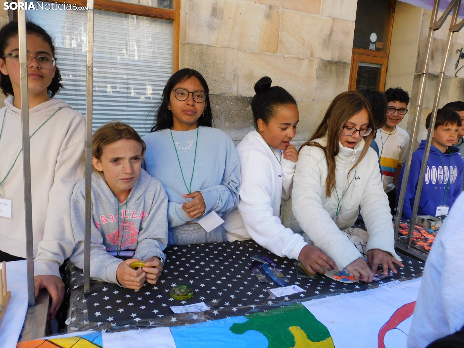 Llaveros, plantas, neceseres, camisetas… Una amplia variedad de productos elaborados a mano se han puesto a la venta esta mañana en la plaza del Rosel y San Blas. Se trata del mercadillo anual que organizan ocho centros educativos de Soria capital y provincia, con la participación de 250 alumnos de quinto y sexto de Primaria.