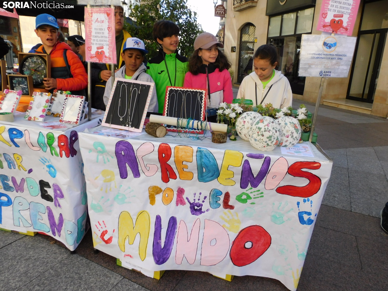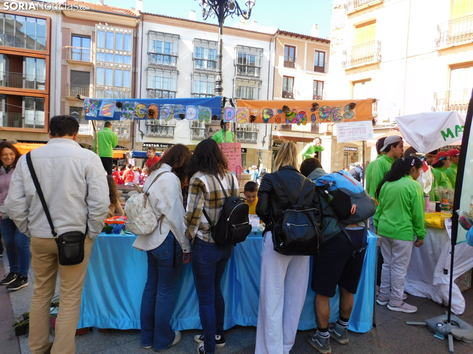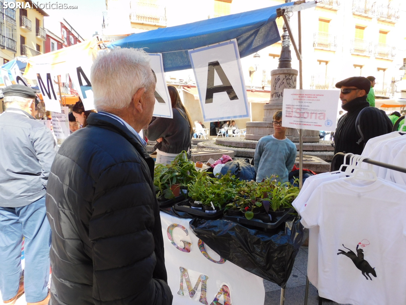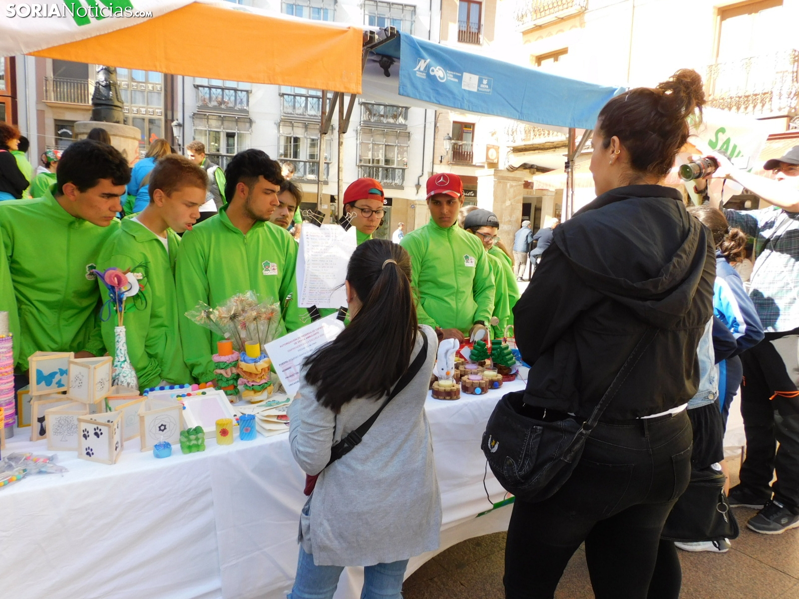 Llaveros, plantas, neceseres, camisetas… Una amplia variedad de productos elaborados a mano se han puesto a la venta esta mañana en la plaza del Rosel y San Blas. Se trata del mercadillo anual que organizan ocho centros educativos de Soria capital y provincia, con la participación de 250 alumnos de quinto y sexto de Primaria.