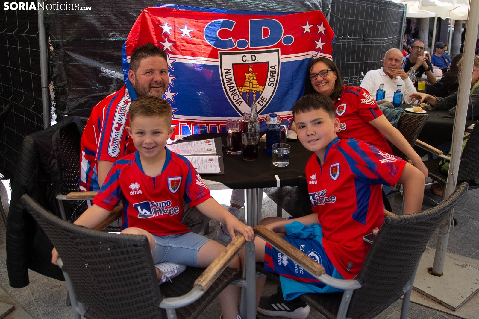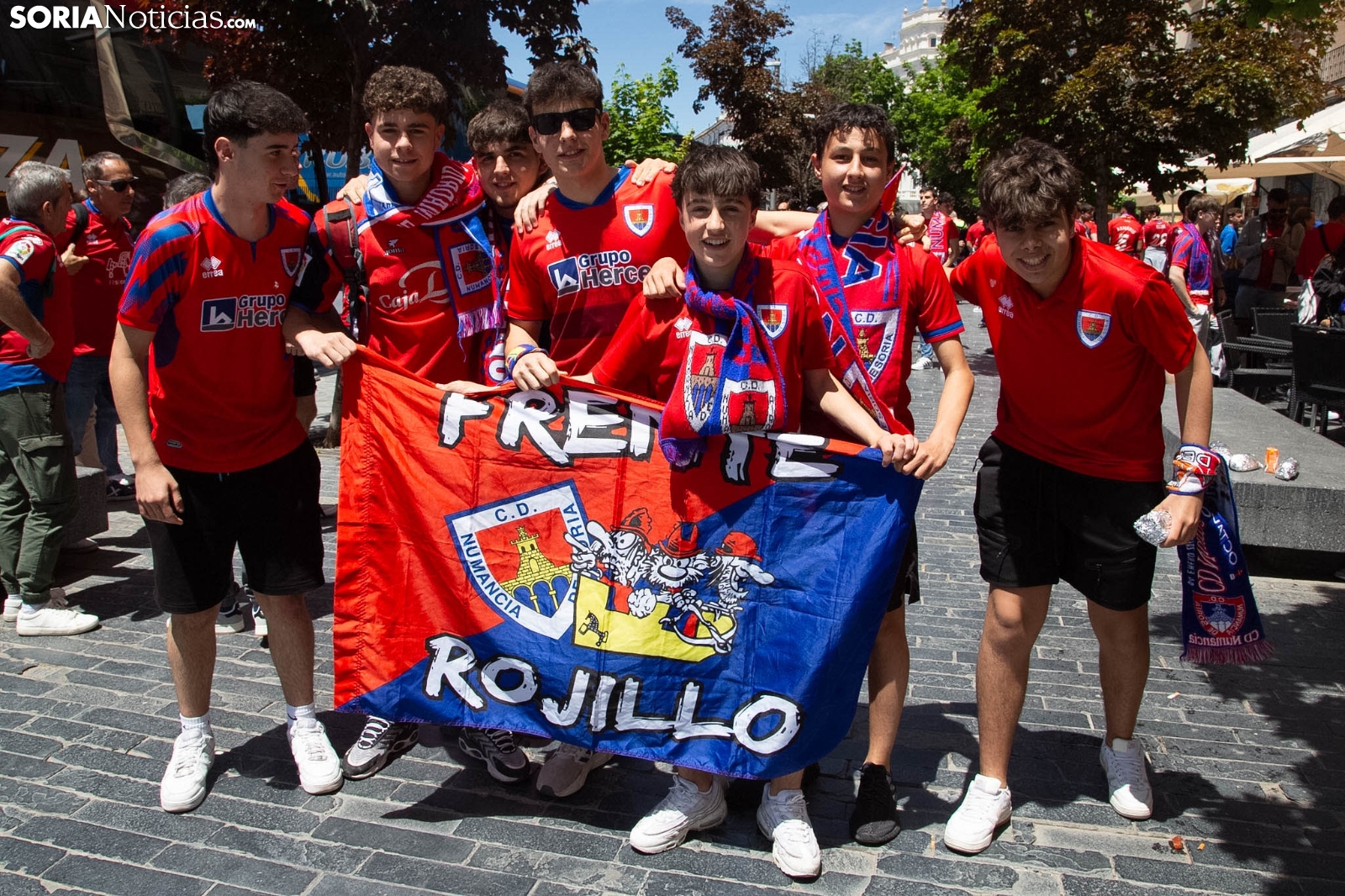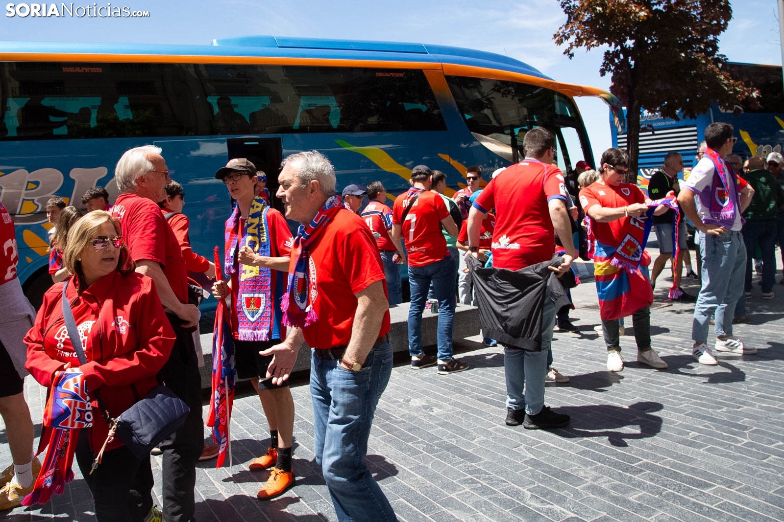 Los autobuses desplazados desde Soria han llegado repletos de aficionados, pero otros muchos se han desplazado en vehículos particulares para aprovechar al máximo el día. En estos momentos cogen fuerzas de cara a una tarde que se promete más que intensa. No les faltarán apoyos a los jugadores rojillos, que deberán emplearse al máximo para superar a un rival que llega a esta fase final en la mejor forma posible.