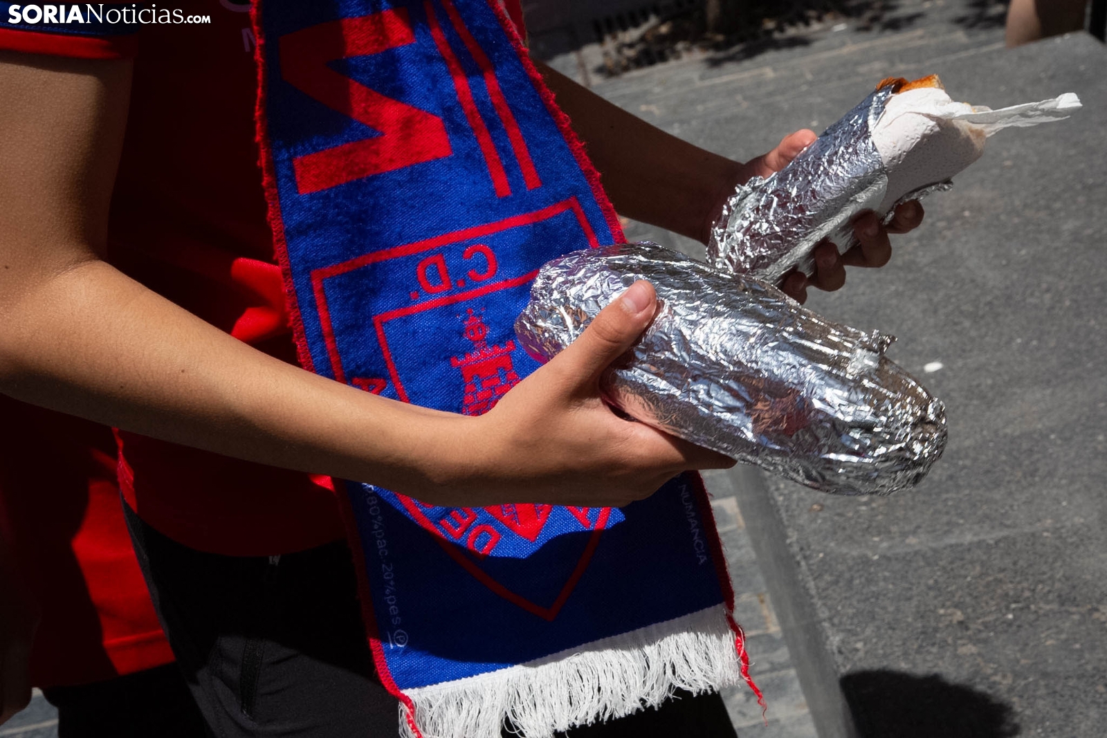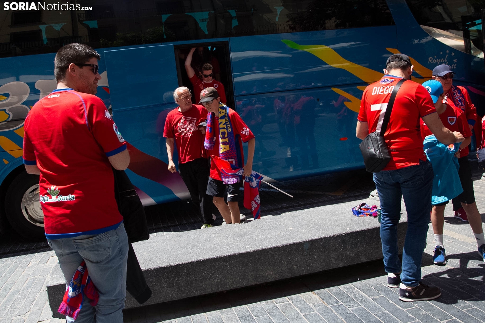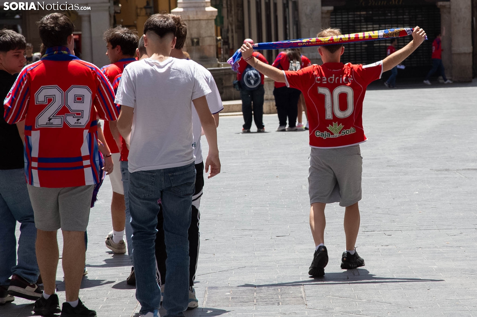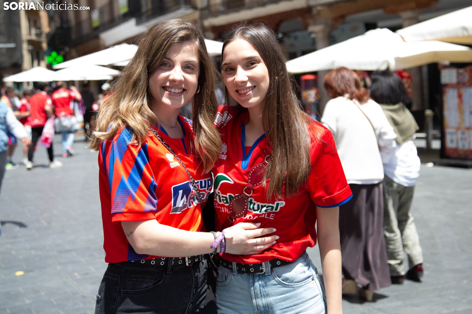 Los autobuses desplazados desde Soria han llegado repletos de aficionados, pero otros muchos se han desplazado en vehículos particulares para aprovechar al máximo el día. En estos momentos cogen fuerzas de cara a una tarde que se promete más que intensa. No les faltarán apoyos a los jugadores rojillos, que deberán emplearse al máximo para superar a un rival que llega a esta fase final en la mejor forma posible.