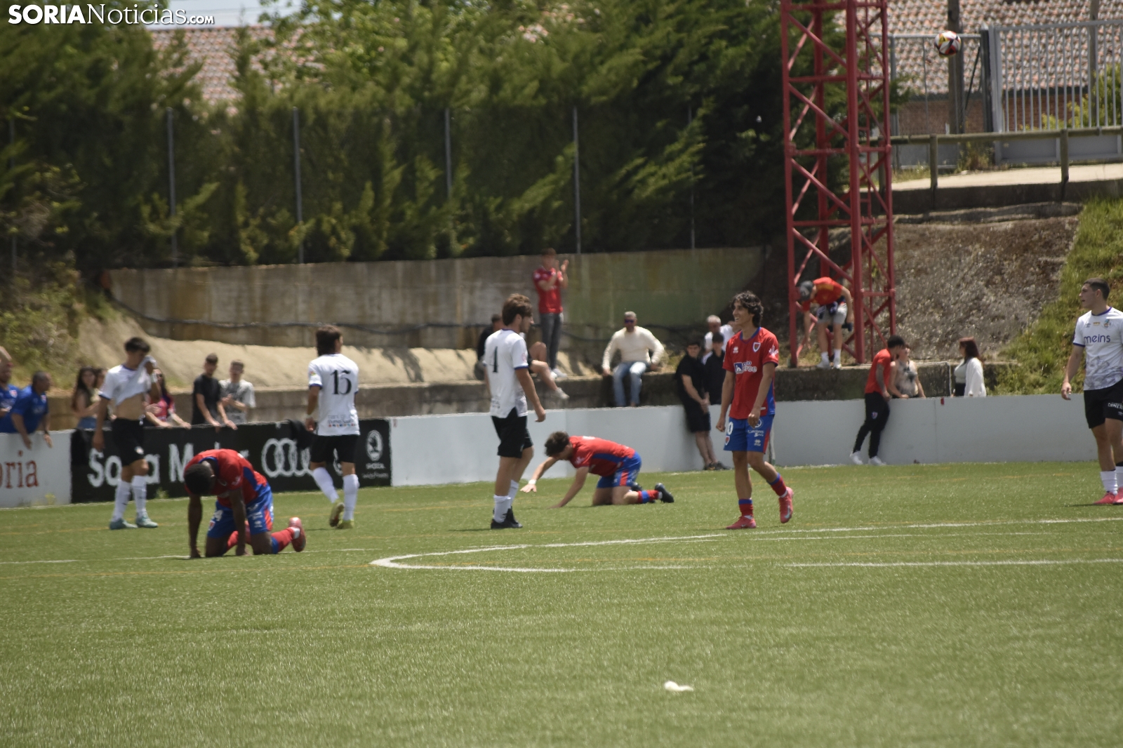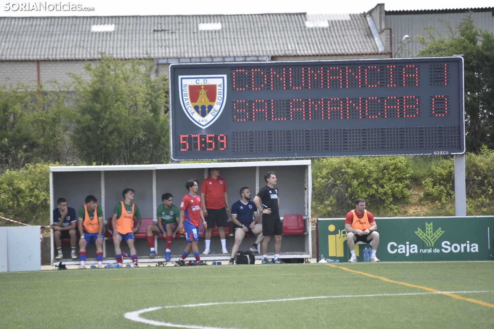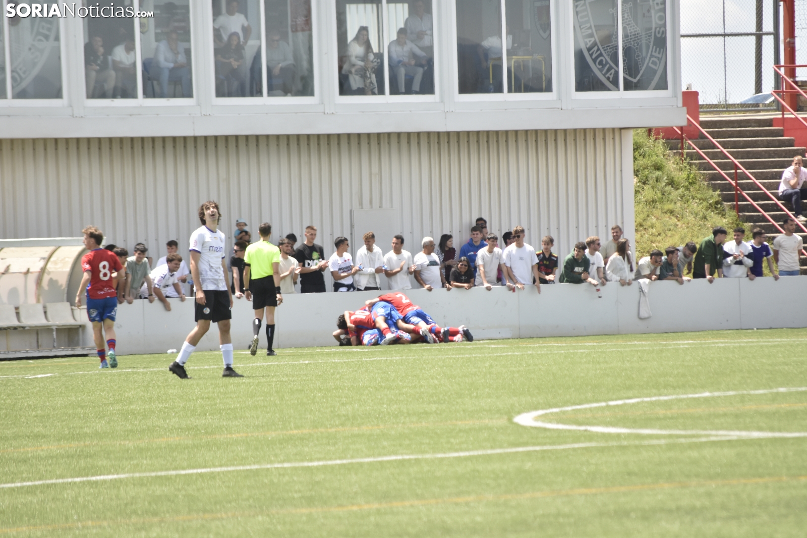 El partido ha tenido que decidirse en la prórroga después de que los 90 minutos terminasen con empate a 1 en el marcador. No obstante, los rojillos han puesto toda la carne en el asador para que su afición no sufriese más de la cuenta. Con dos goles en los primeros 15 minutos de añadido han sentenciado el encuentro que les enfrentaba al filial del Salamanca UDS. Pasa el Numancia B a la final por el ascenso a la RFEF y peleará contra el Betis, que ha ganado hoy 3-0 al Turégano.