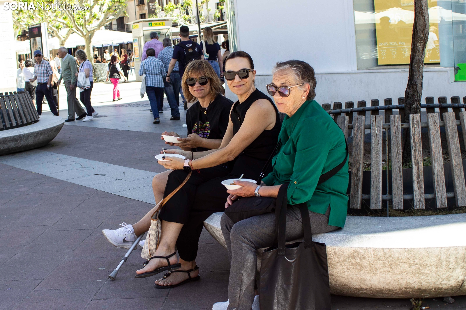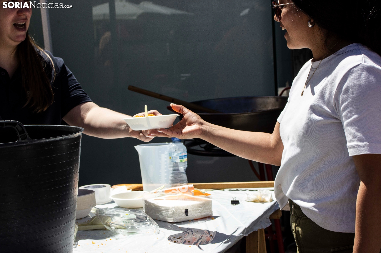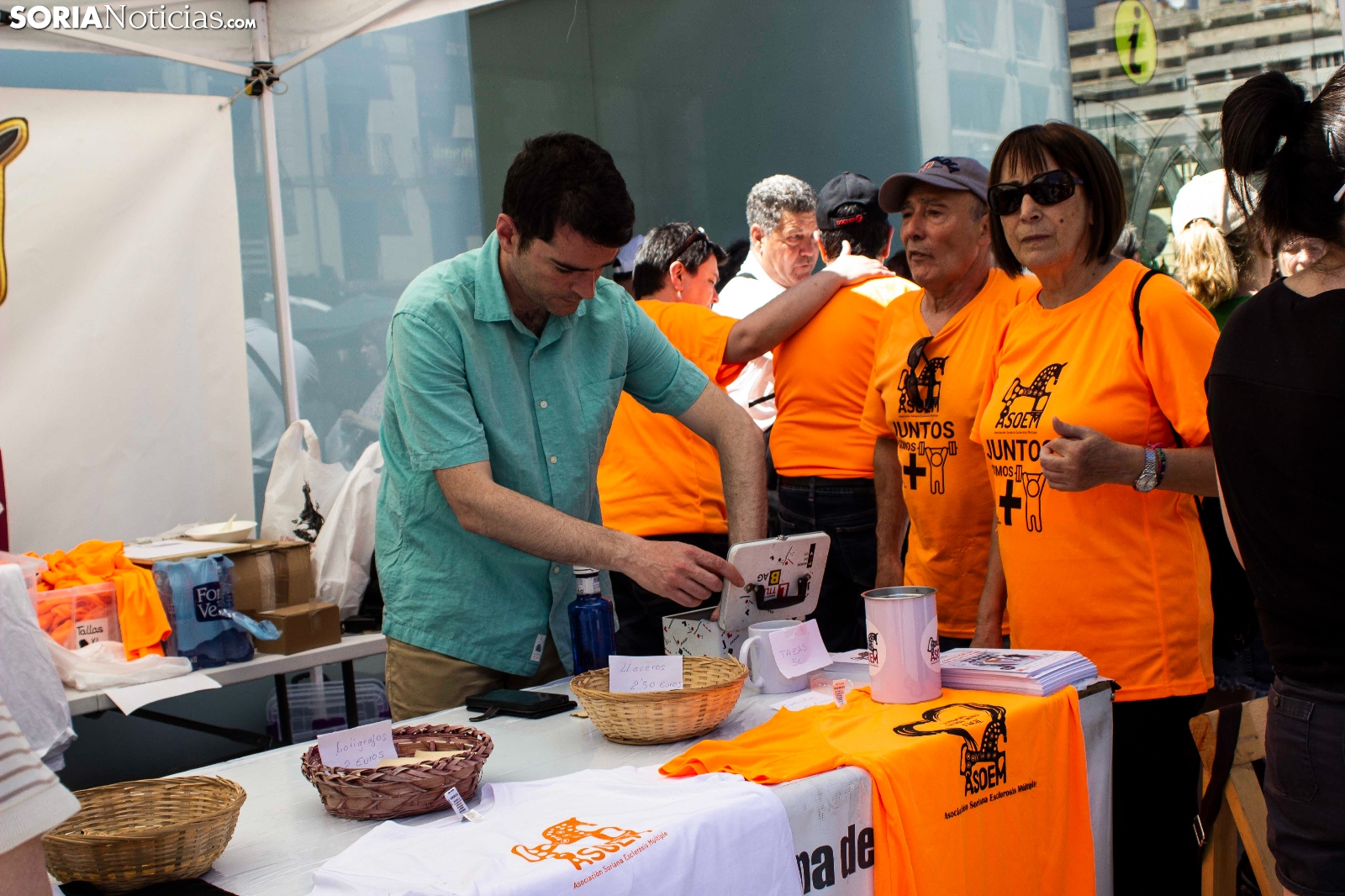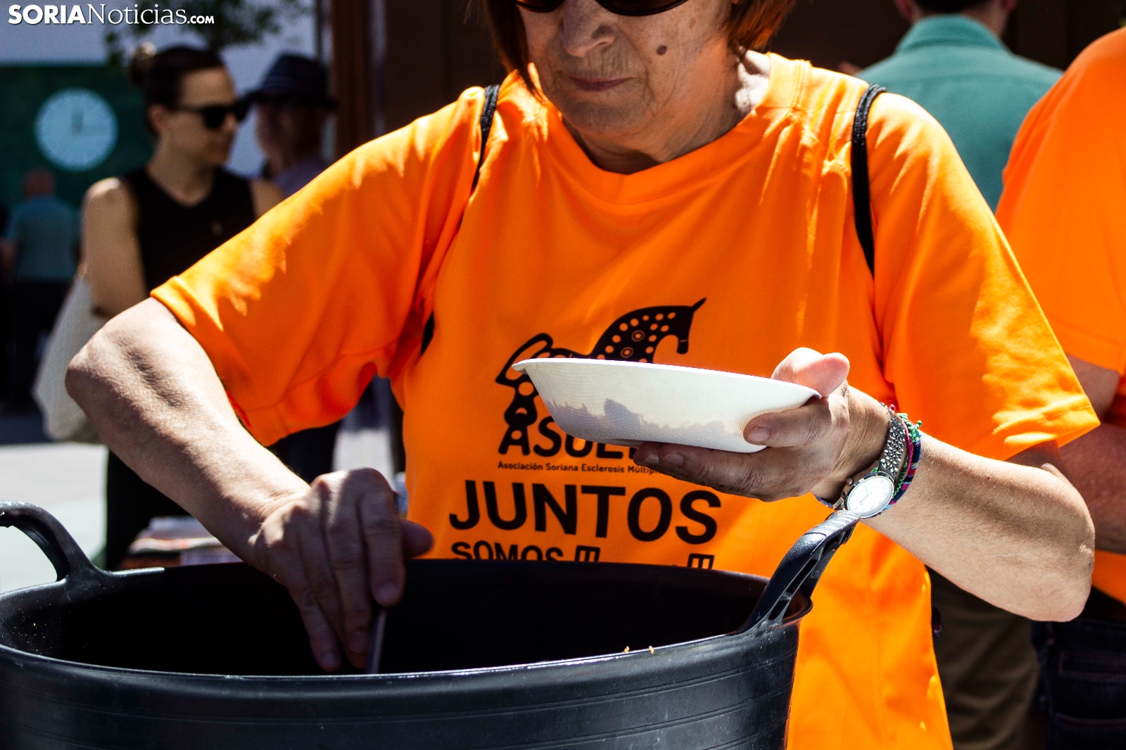 La Asociación Soriana de Esclerosis Múltiple celebraba este mediodía una jornada solidaria con la que poner el foco en esta dolencia y también para obtener fondos con los que continuar la labor asistencial que realizan. Centenares de raciones de migas tradicionales, cocinadas por miembros de la Asociación de Extremeños, han sido dispensadas entre la concurrencia. También han sido dispuestos diversos objetos a la venta. La esclerosis múltiple (EM) es una enfermedad neurológica crónica y autoinmune en la que el sistema inmunitario ataca la mielina, la capa protectora de las fibras nerviosas del cerebro y la médula espinal. Este daño interfiere en la transmisión de los impulsos nerviosos, provocando una amplia variedad de síntomas que difieren en cada persona. En la actualidad, se calcula que en España más de 55.000 personas conviven con esta dolencia, lo que supone que un centenar de ellas la padecen en Soria y provincia. Mañana viernes es el día mundial de la EM.