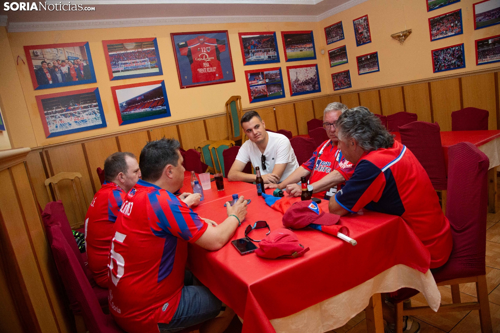 Las peñas llevan varios días movilizándose, preparando varios actos para animar a los suyos en las horas previas al partido. Como ha adelantado Soria Noticias esta mañana, las actividades comenzarán con un vermú en la Herradores y con una bajada conjunta hasta los aledaños del estadio. Posteriormente, ha ganado enteros la posibilidad de hacer un recibimiento a los jugadores a la entrada al parking “después de valorarlo durante varios días, ya que tampoco queremos que los futbolistas se sientan presionados”.