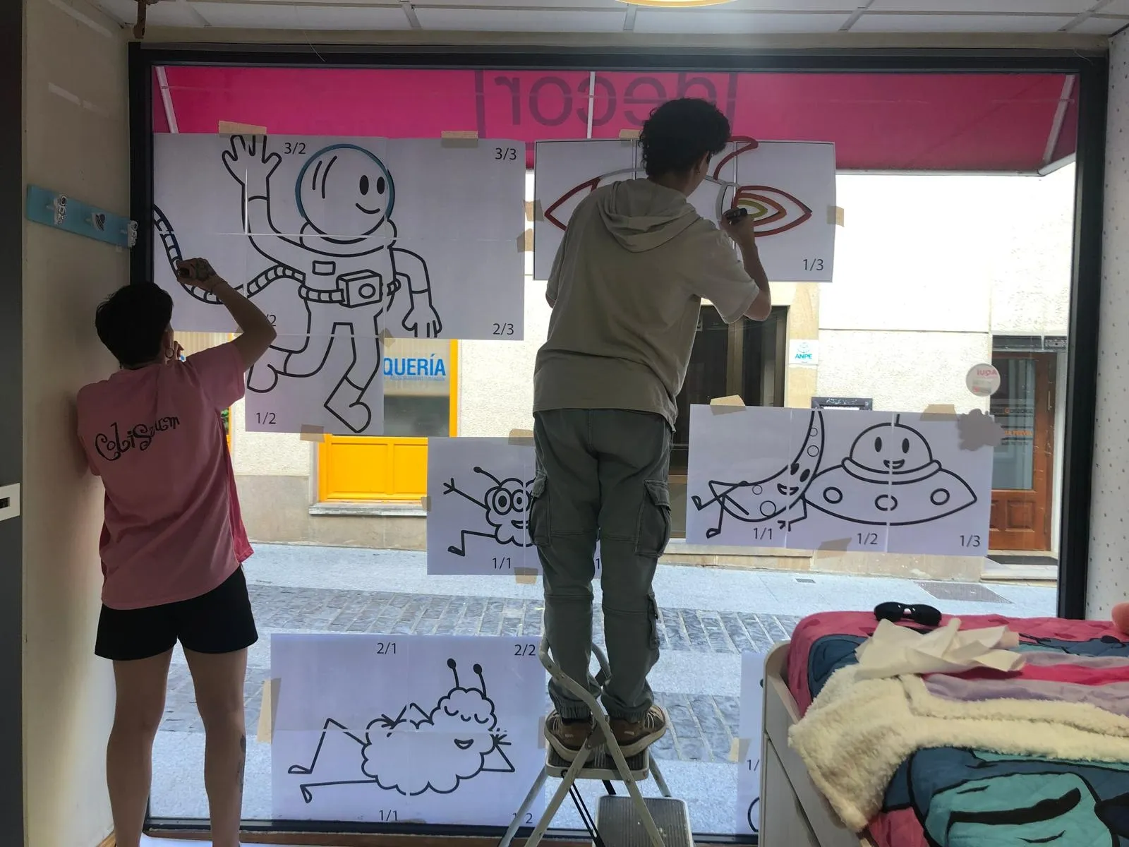 Alhama Textil, Perfumería y Estética Aquabel, Baby Shop Soria, Casa Bella, Decor Hogar Textil, Ferretería 2000, Librería Piccolo, Noebe Moda, Librería Santos Ochoa, SM Decor, Supelso y Teyma cederán sus espacios más visibles al ingenio de los alumnos. Las obras —en ejecución en la actualidad— estarán expuestas a partir del 11 de junio.