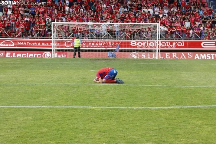 El fútbol ha vuelto a castigar sobre manera al Numancia. Cuando tenía todo para subir a Primera RFEF, el Teruel se ha llevado el gato al agua con un gol de penalti en el tiempo de añadido. La pena máxima se ha apoderado de un estadio en el que las lágrimas de impotencia han vuelto a aparecer. Por tercera temporada consecutiva, el Numancia estará en la cuarta categoría del fútbol nacional.