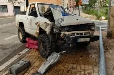 Un todoterreno se salía de la calzada, yendo a parar contra una farola. El choque causaba daños tanto al vehículo como a la unidad de iluminación pública.