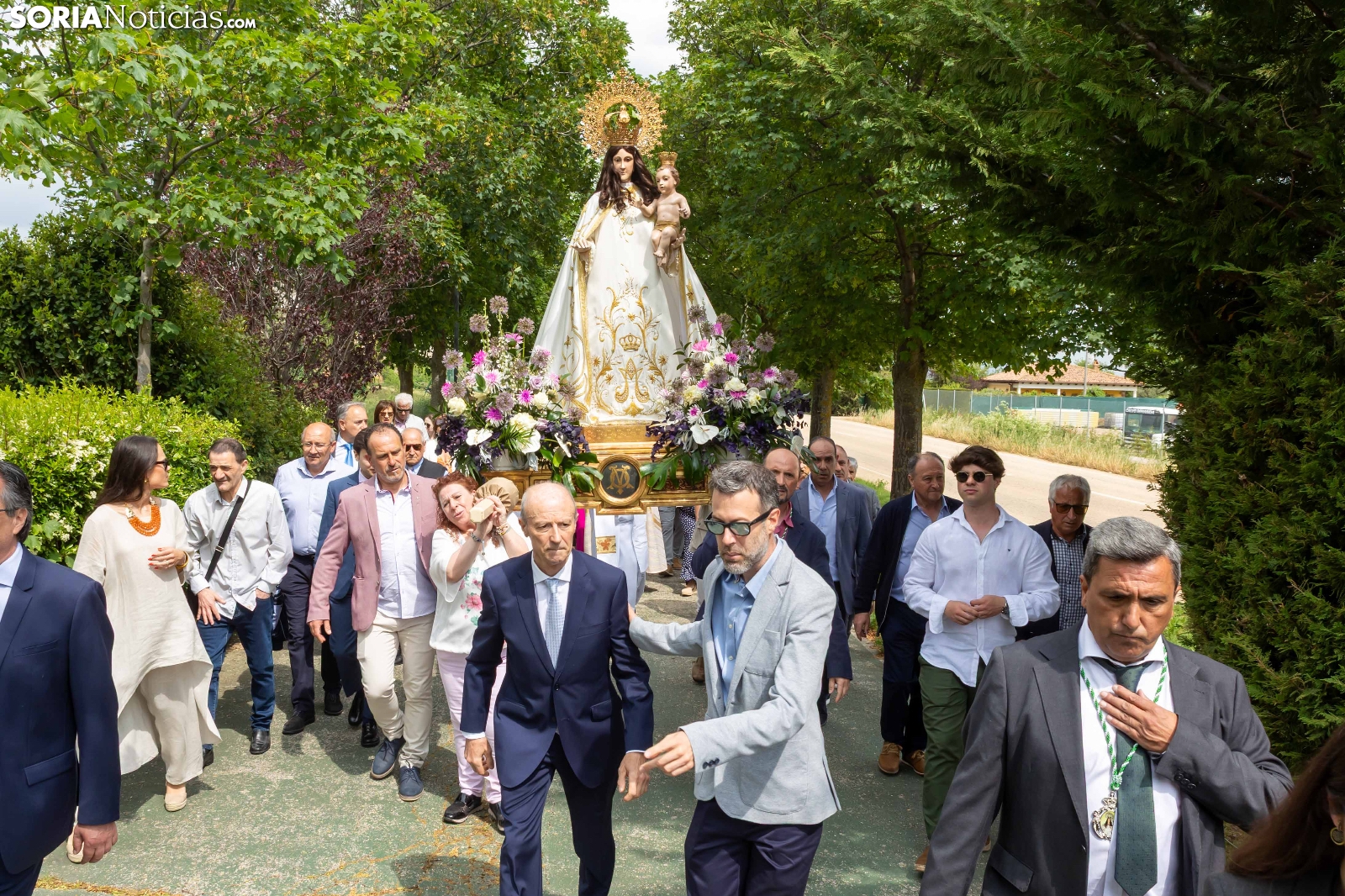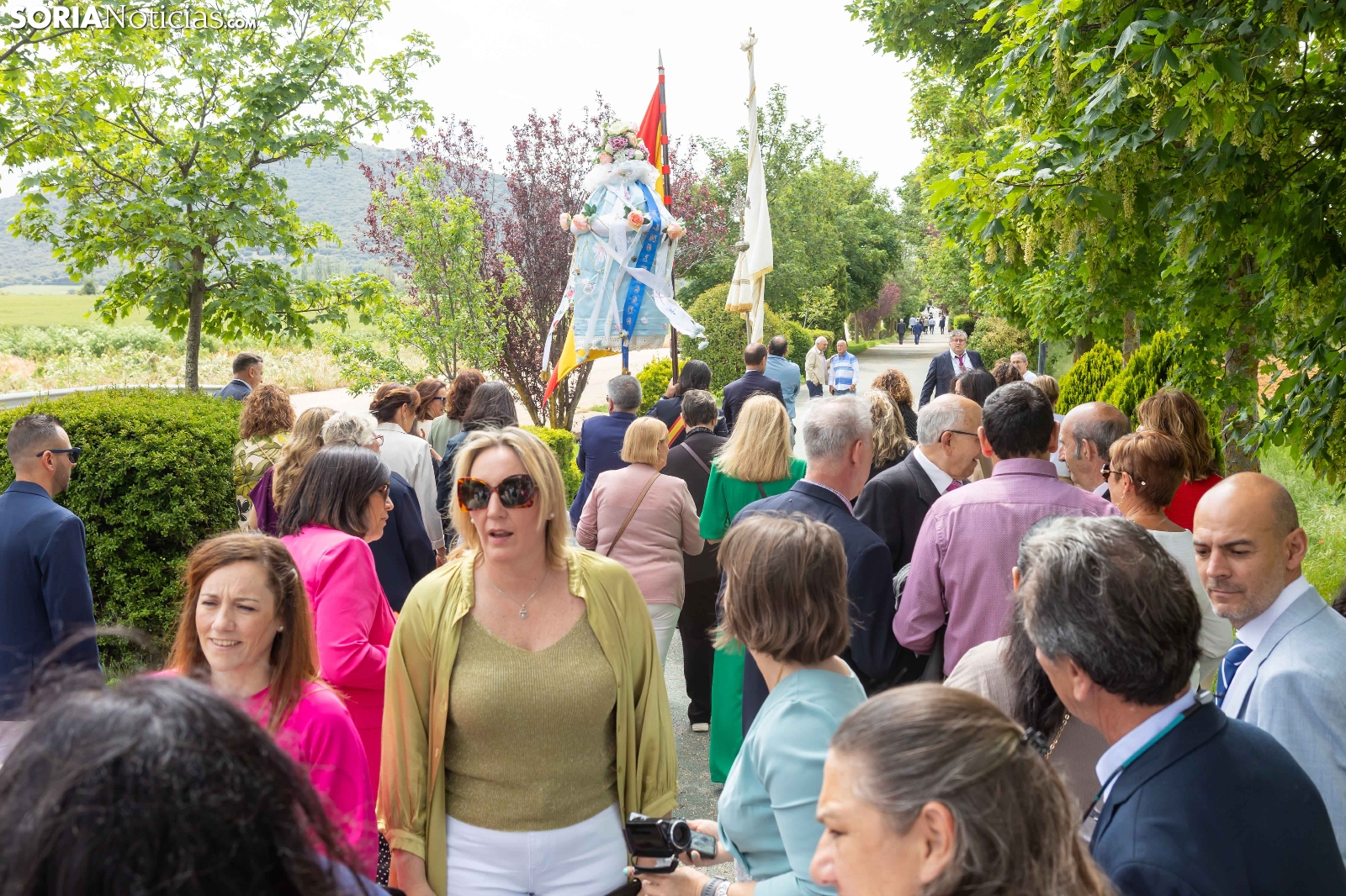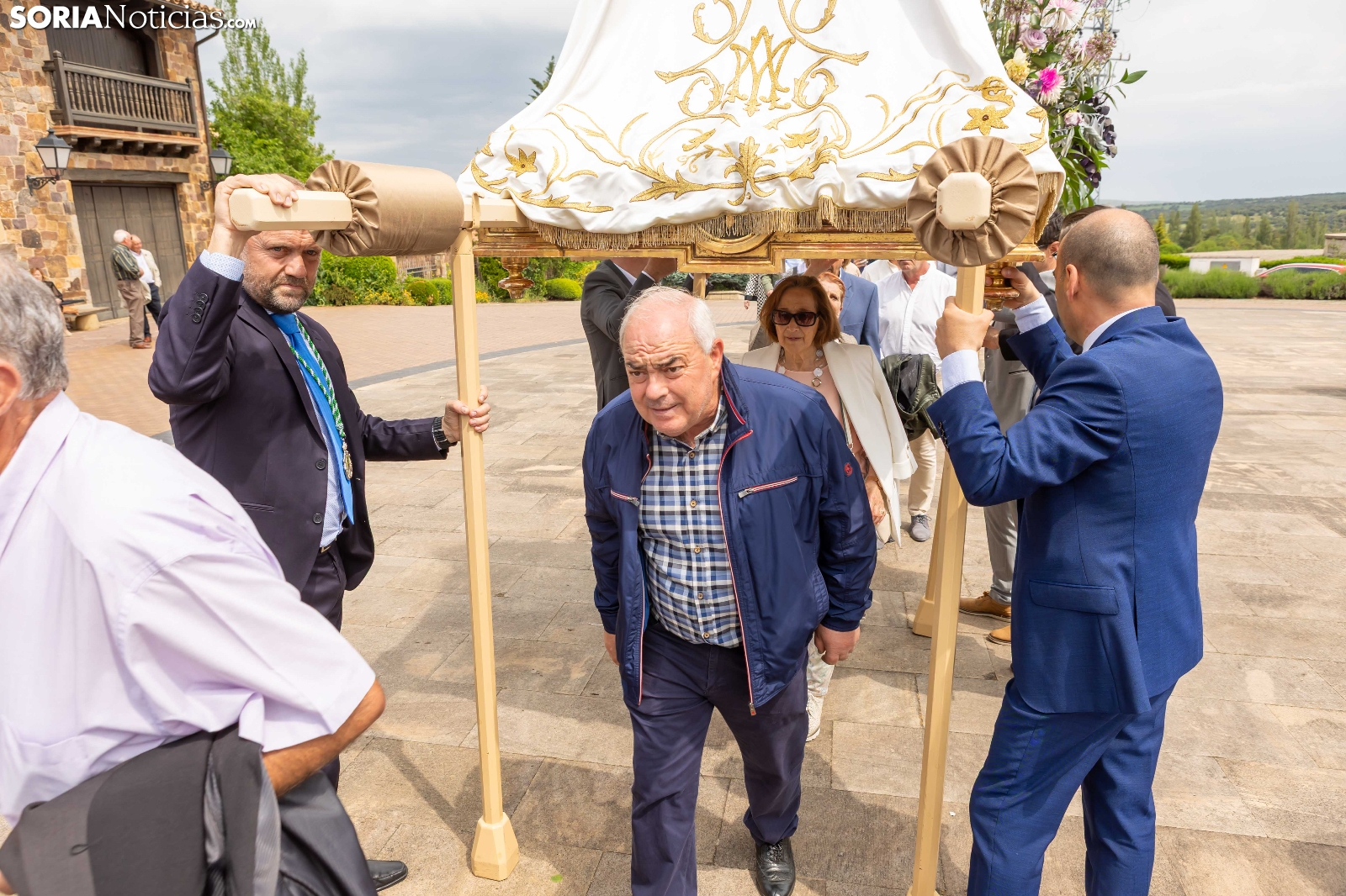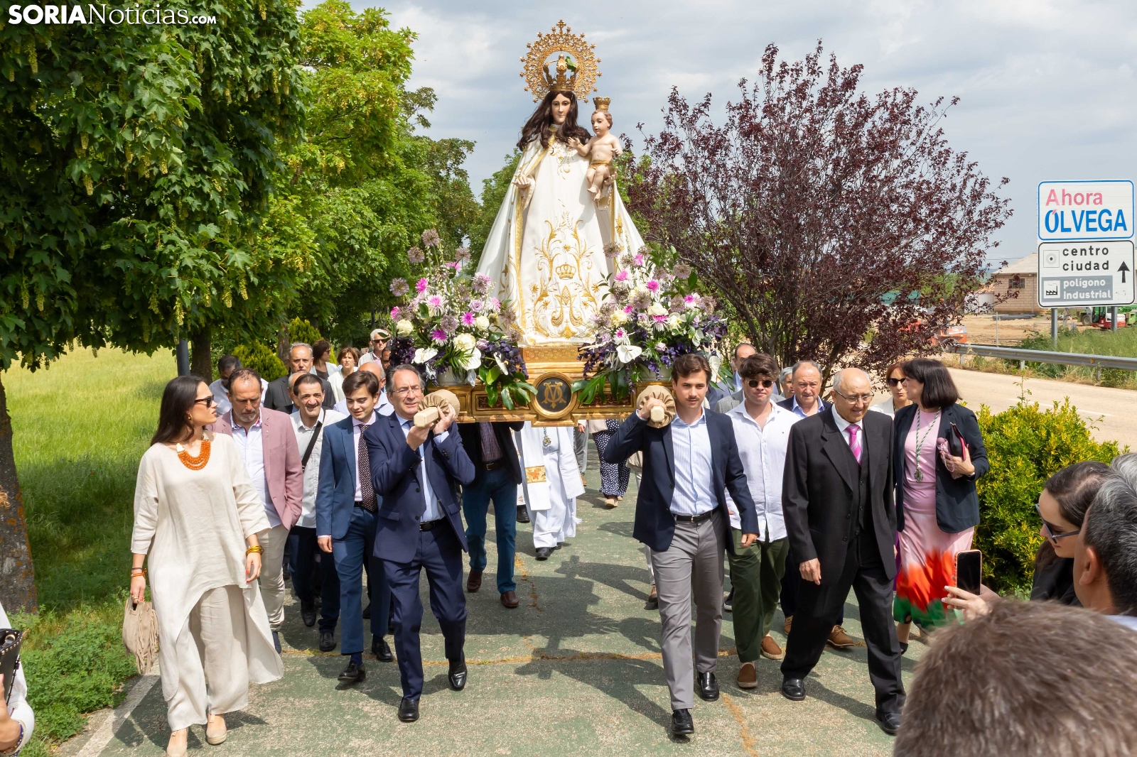 Tras los nueve días preceptivos, la imagen de la Virgen de Olmacedo ha vuelto a su ermita, en el paraje del mismo nombre, después de que fuese llevada también en andas para ser honrada en la iglesia parroquial de La Mayor, en Ólvega. Centenares de olvegueños han acompañado a la imagen de su patrona en el día grande de las fiestas. El fresco no ha intimidado a la multitud y la lluvia ha respetado. Los quintos (este 2025 alcanzan los 50 años) han cumplido con la obligación de ejercer como mayordomos.