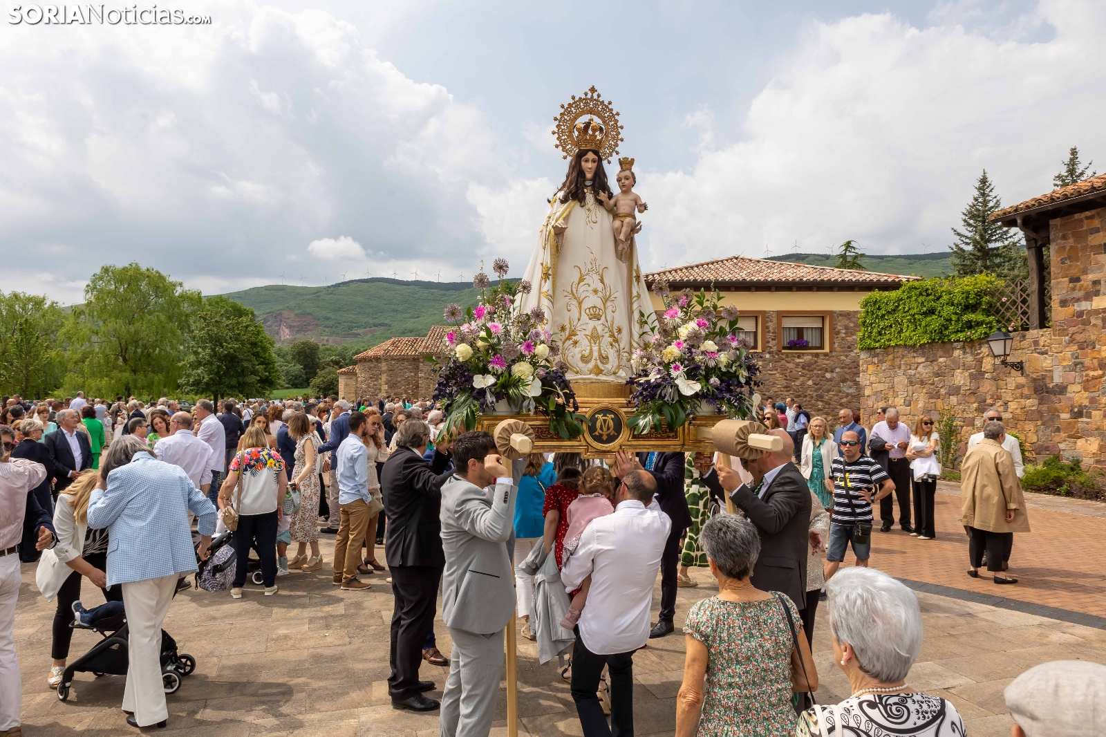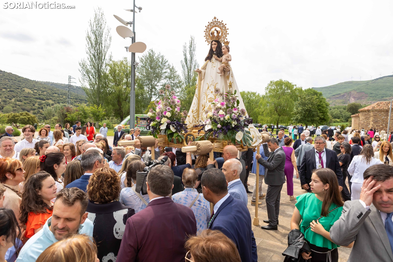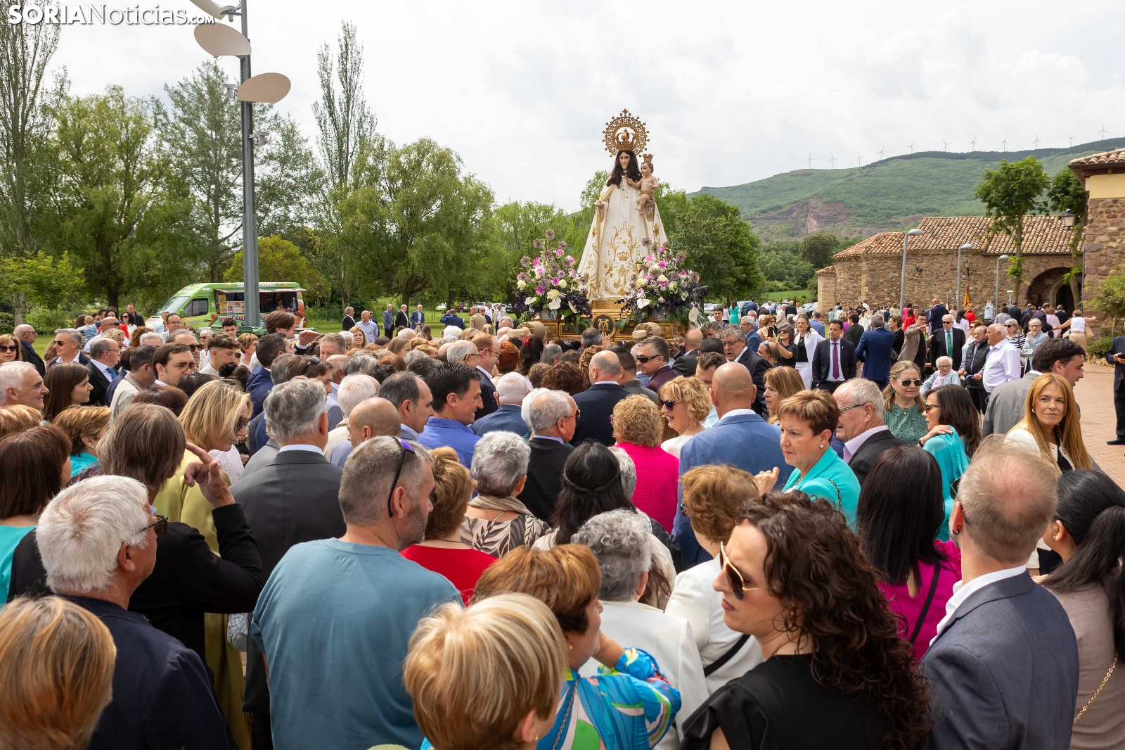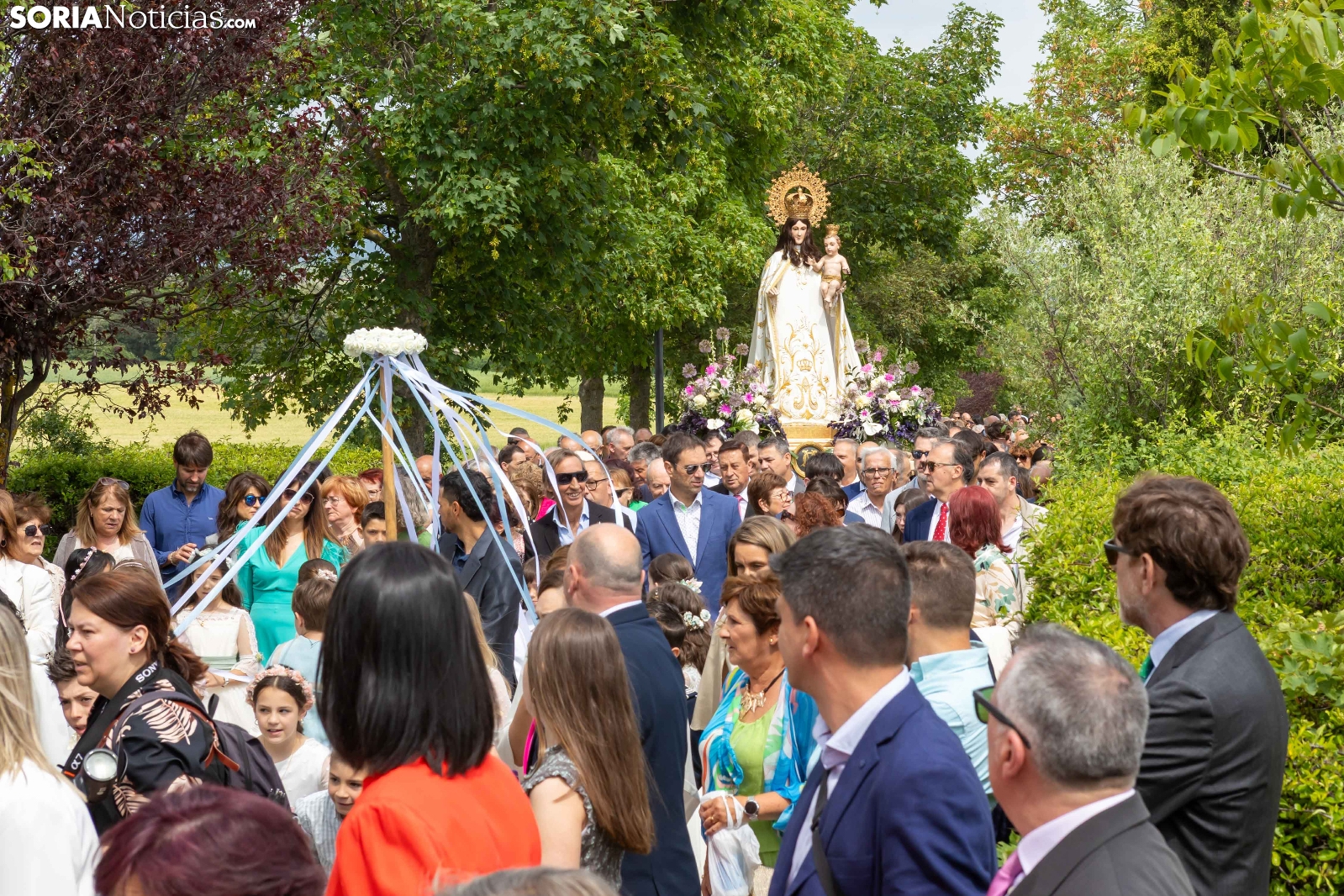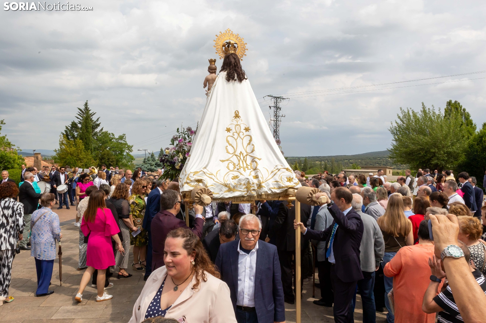 Tras los nueve días preceptivos, la imagen de la Virgen de Olmacedo ha vuelto a su ermita, en el paraje del mismo nombre, después de que fuese llevada también en andas para ser honrada en la iglesia parroquial de La Mayor, en Ólvega. Centenares de olvegueños han acompañado a la imagen de su patrona en el día grande de las fiestas. El fresco no ha intimidado a la multitud y la lluvia ha respetado. Los quintos (este 2025 alcanzan los 50 años) han cumplido con la obligación de ejercer como mayordomos.