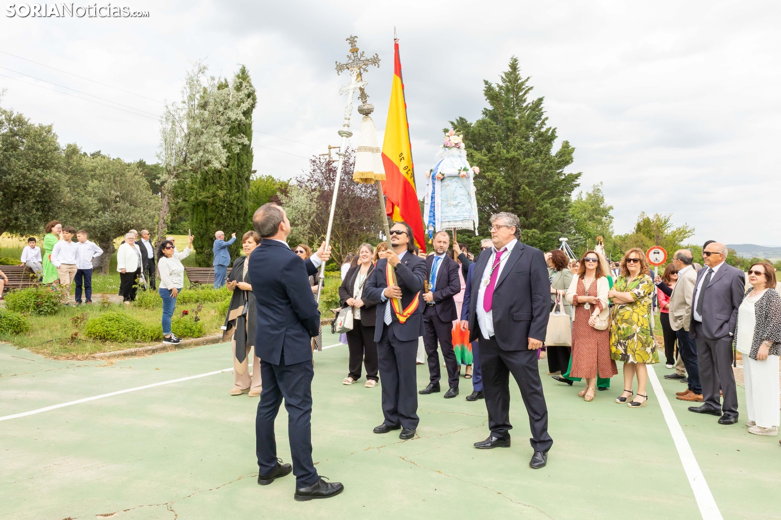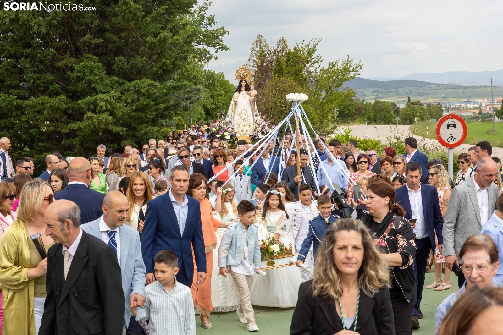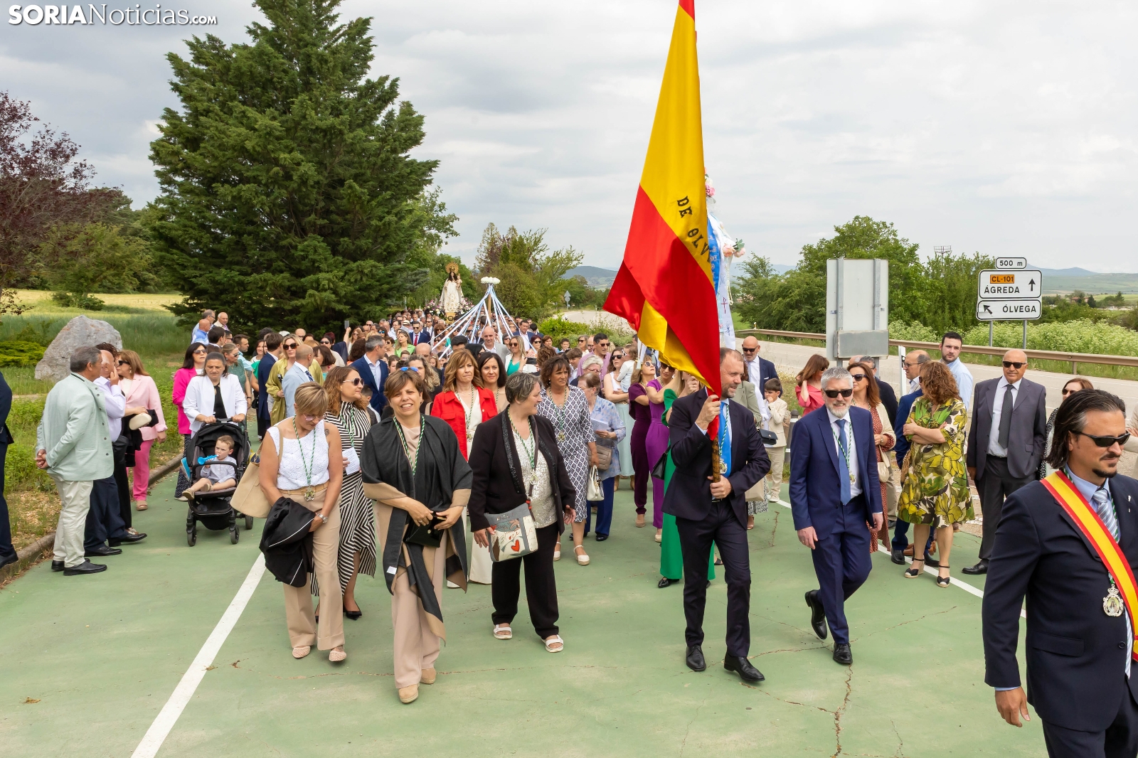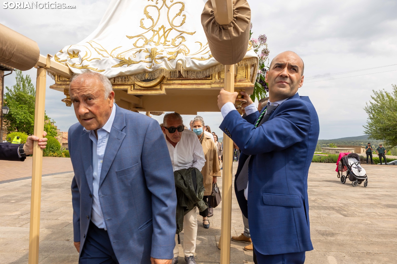 Tras los nueve días preceptivos, la imagen de la Virgen de Olmacedo ha vuelto a su ermita, en el paraje del mismo nombre, después de que fuese llevada también en andas para ser honrada en la iglesia parroquial de La Mayor, en Ólvega. Centenares de olvegueños han acompañado a la imagen de su patrona en el día grande de las fiestas. El fresco no ha intimidado a la multitud y la lluvia ha respetado. Los quintos (este 2025 alcanzan los 50 años) han cumplido con la obligación de ejercer como mayordomos.