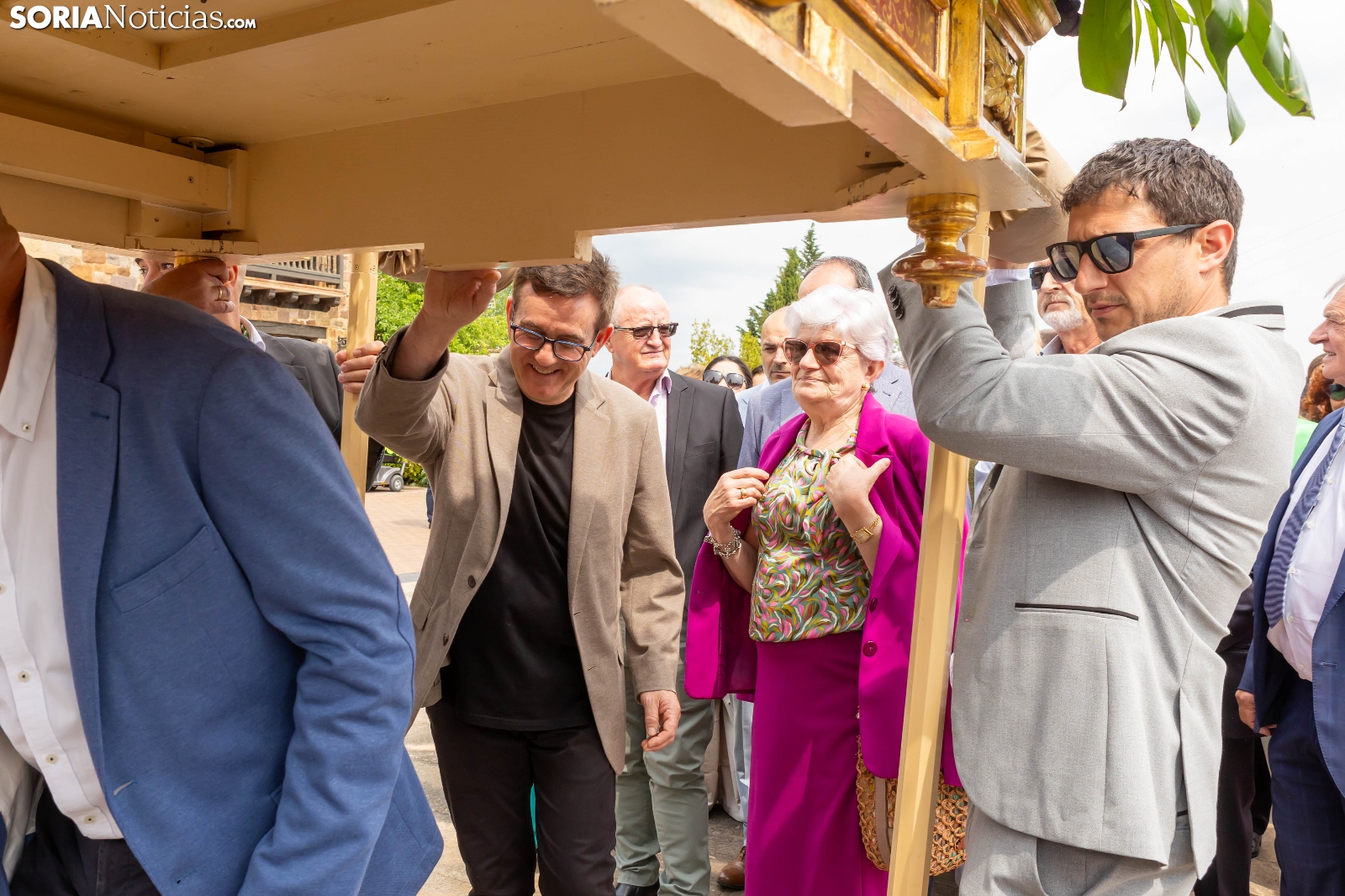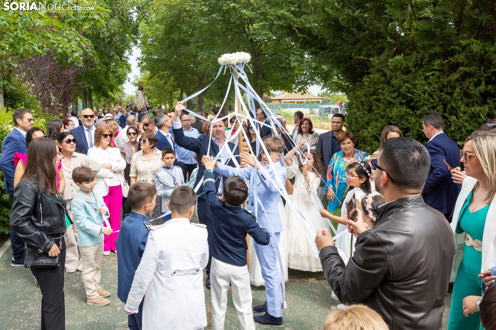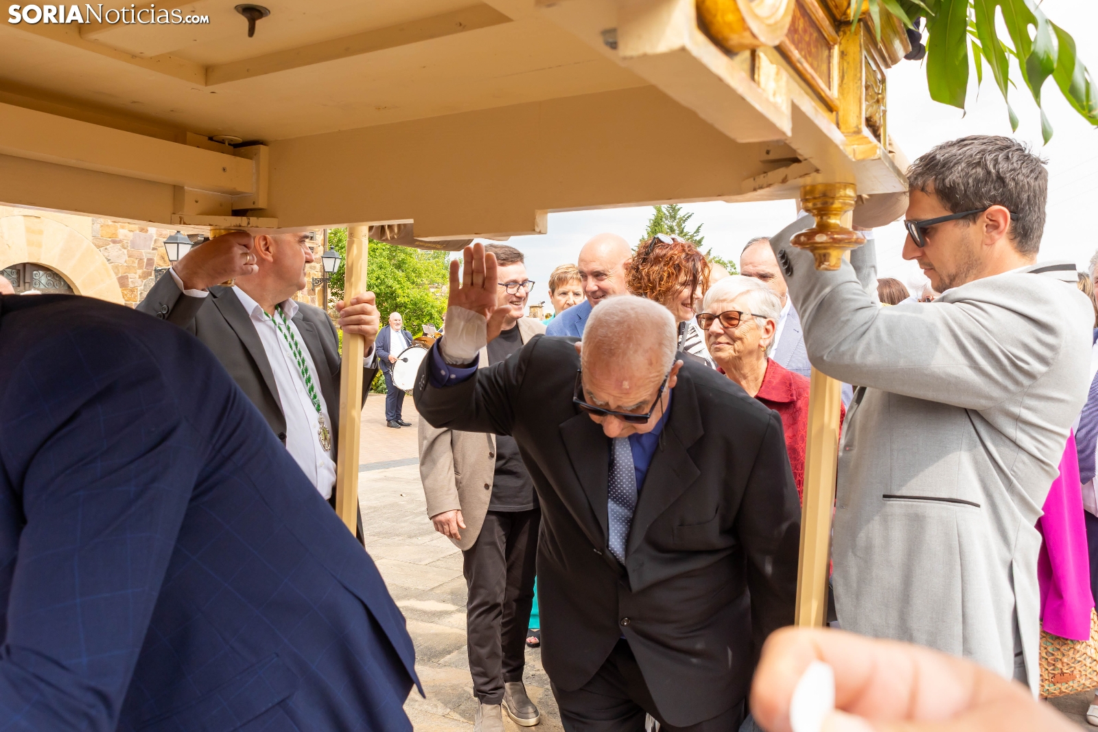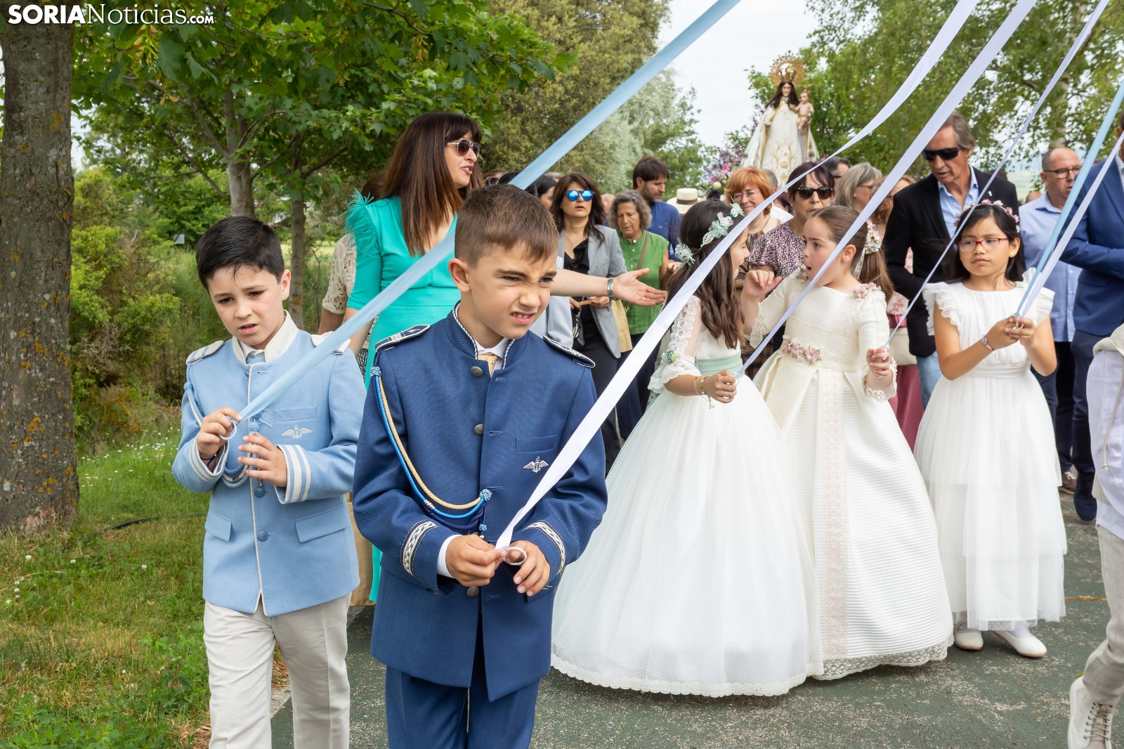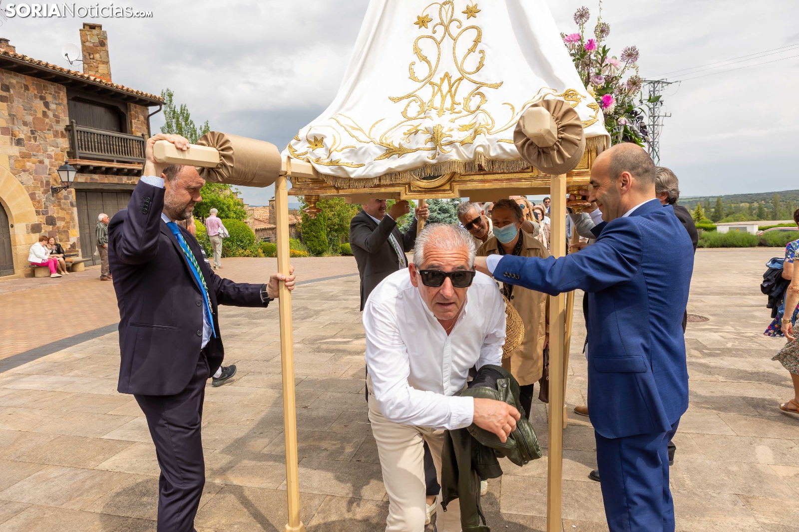 Tras los nueve días preceptivos, la imagen de la Virgen de Olmacedo ha vuelto a su ermita, en el paraje del mismo nombre, después de que fuese llevada también en andas para ser honrada en la iglesia parroquial de La Mayor, en Ólvega. Centenares de olvegueños han acompañado a la imagen de su patrona en el día grande de las fiestas. El fresco no ha intimidado a la multitud y la lluvia ha respetado. Los quintos (este 2025 alcanzan los 50 años) han cumplido con la obligación de ejercer como mayordomos.