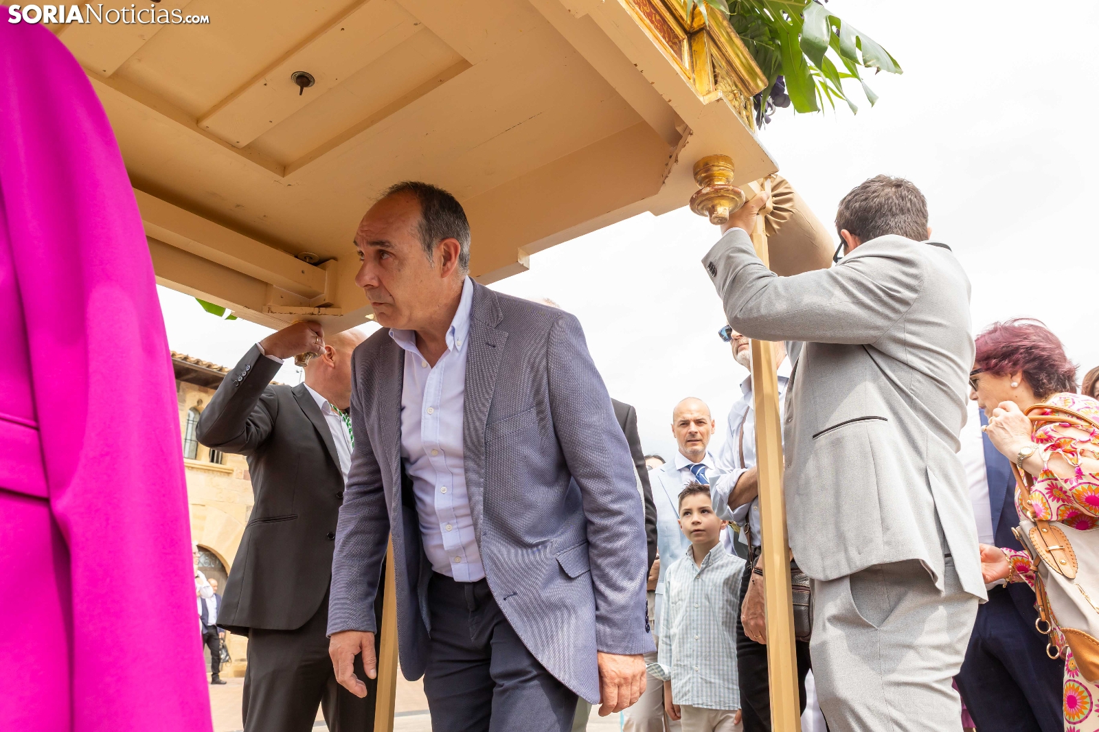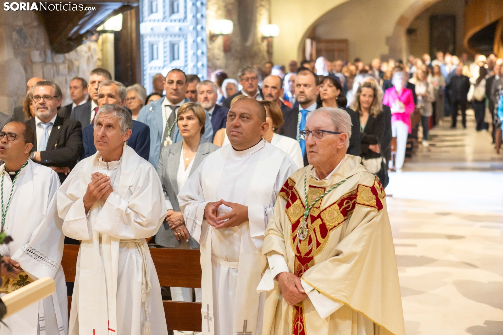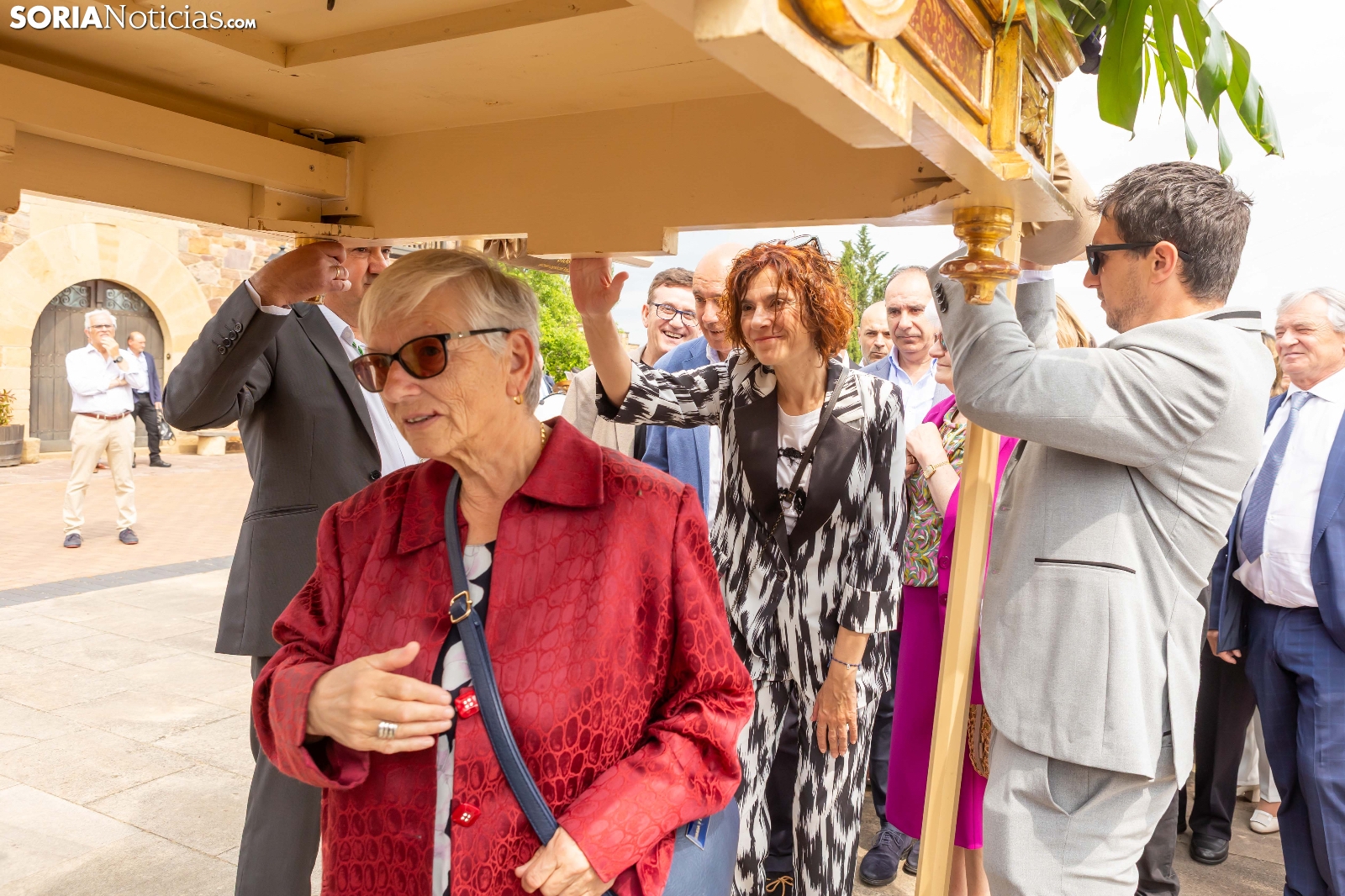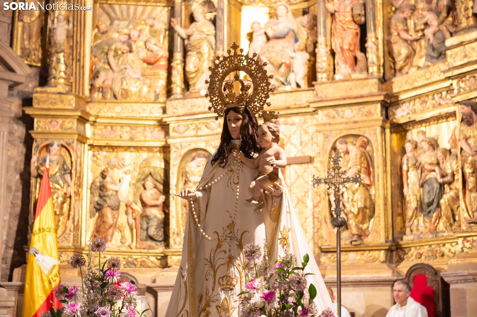 Tras los nueve días preceptivos, la imagen de la Virgen de Olmacedo ha vuelto a su ermita, en el paraje del mismo nombre, después de que fuese llevada también en andas para ser honrada en la iglesia parroquial de La Mayor, en Ólvega. Centenares de olvegueños han acompañado a la imagen de su patrona en el día grande de las fiestas. El fresco no ha intimidado a la multitud y la lluvia ha respetado. Los quintos (este 2025 alcanzan los 50 años) han cumplido con la obligación de ejercer como mayordomos.