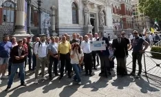 Cerca de un centenar de profesionales del agro soriano, encabezados por la presidenta de la OPA en la provincia, Ana Pastor, y el vicepresidente, Fernando Borque, llegaron también acompañados de sendas siluetas alusivas a tamaño real de Donald Trump y Vladímir Putin, que ya habían estado presentes en la caseta de ASAJA los tres días de la Feria de Muestras de Almazán a modo de acto reivindicativo. La imagen del presidente norteamericano portaba un gráfico en el que se apreciaba claramente la enorme bajada del precio del cereal después de que fuera elegido, y especialmente desde que mostró su famoso cartelón con los aranceles.