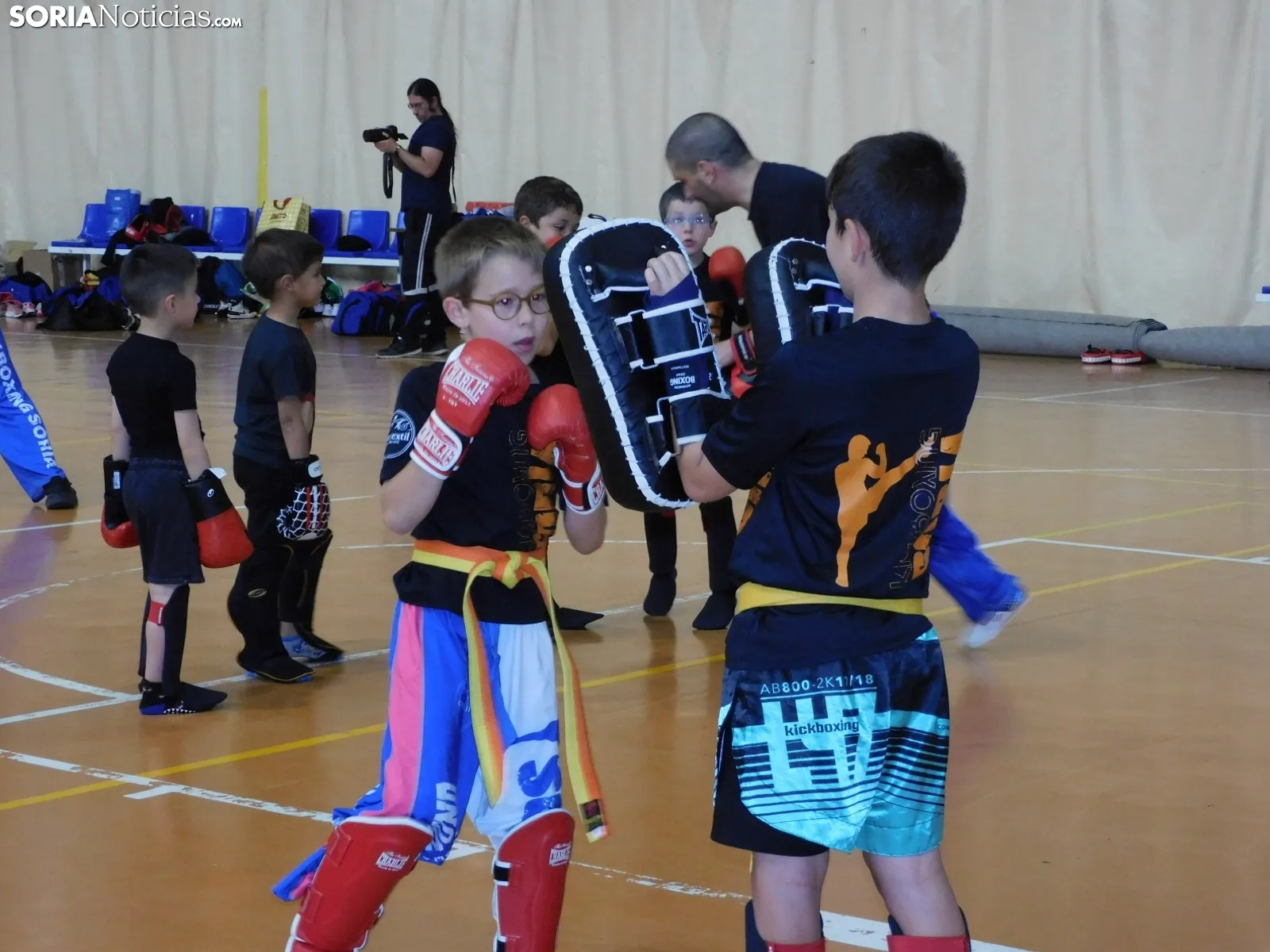 El Kickboxing es uno de los deportes que más han crecido en la provincia en los últimos años. Prueba de ello, es la jornada que se ha vivido esta tarde en el polideportivo San Andrés. Medio centenar de kickboxers de cinco a 50 años han mostrado sus dotes en unos exámenes para subir de cinturón y en una exhibición de los más pequeños. Acompañados por familiares y amigos, han sacado a relucir todo su potencial con diferentes ejercicios de formas, trabajos por parejas y asaltos con manoplas, entre otras muchas cosas.