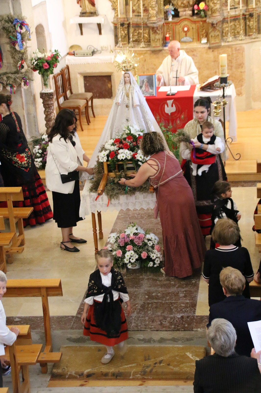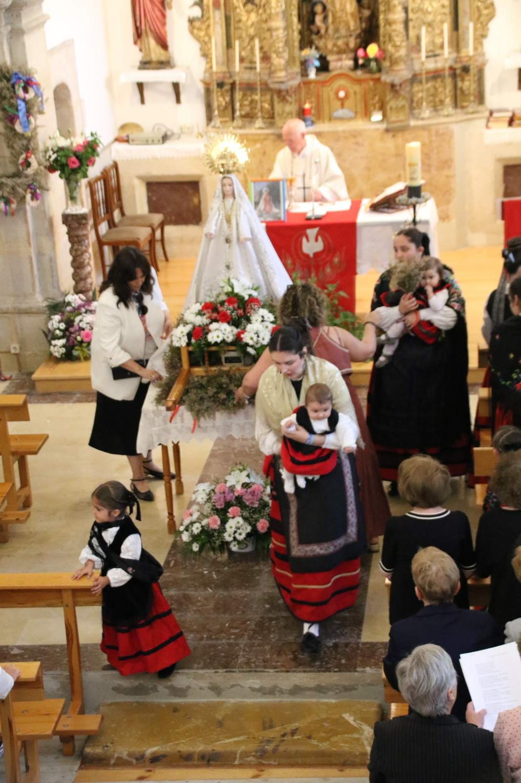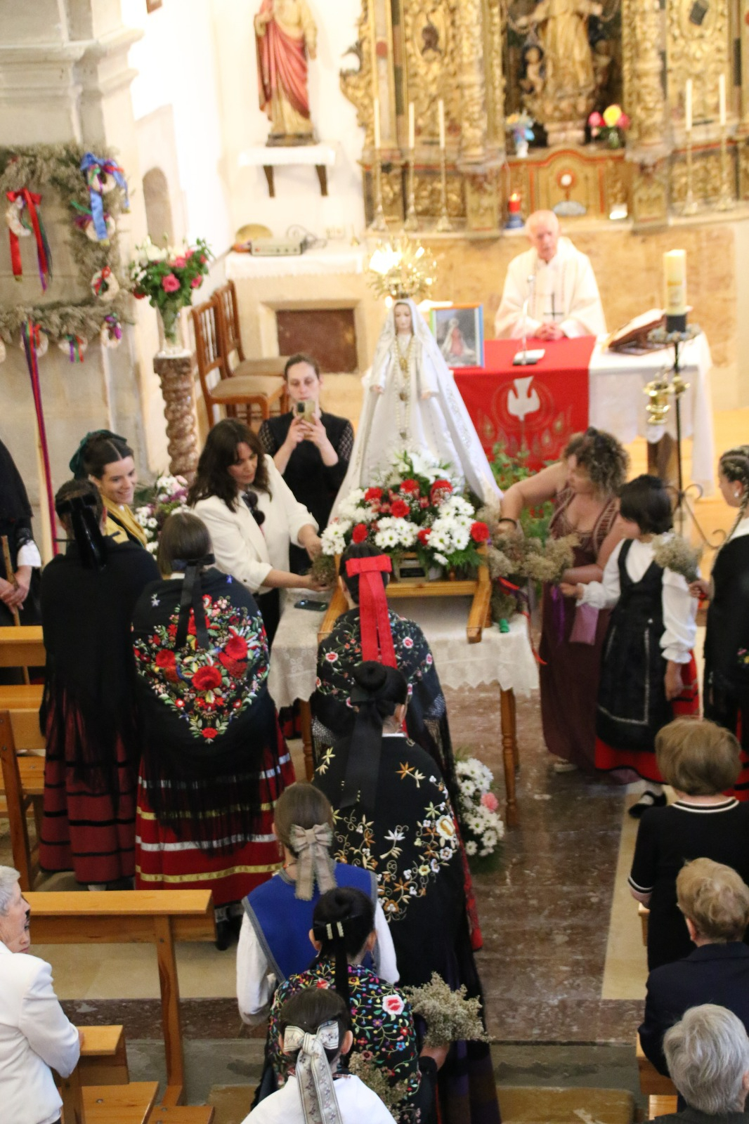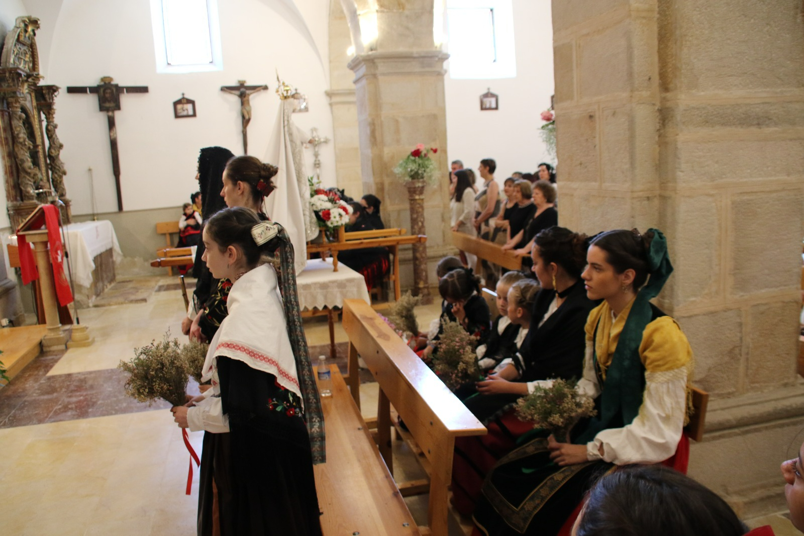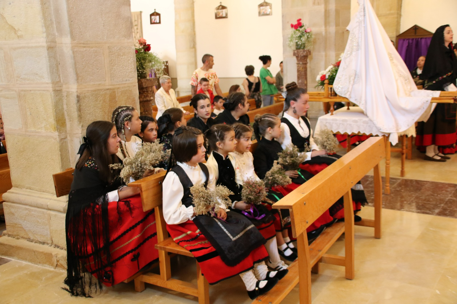 Uno de los momentos más esperados de las fiestas de Espejón en honor a la Virgen de Brezales se ha vivido esta mañana de sábado durante la misa: la Ofrenda del Ramo. Se trata de un emotivo acto que se ha incorporado al programa festivo este año. Mozas y niñas han lucido el traje regional, llenando de color, simbolismo y emoción esta nueva tradición que ha dado un carácter especial a la celebración religiosa.