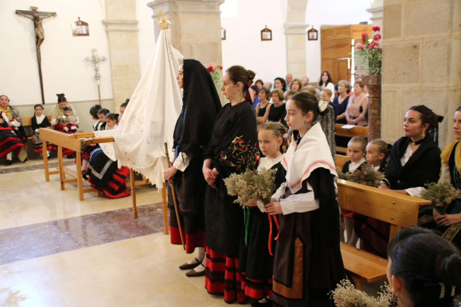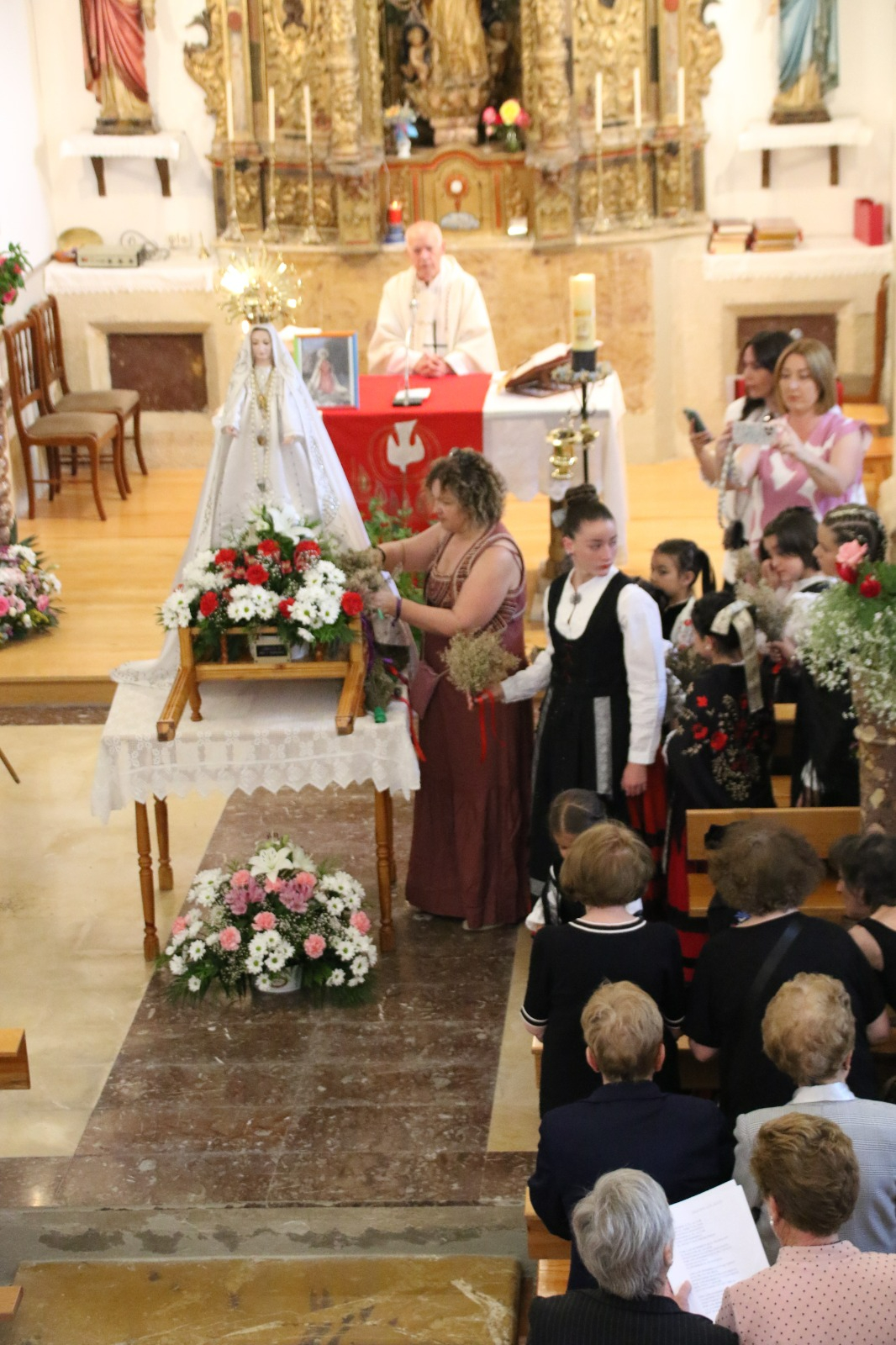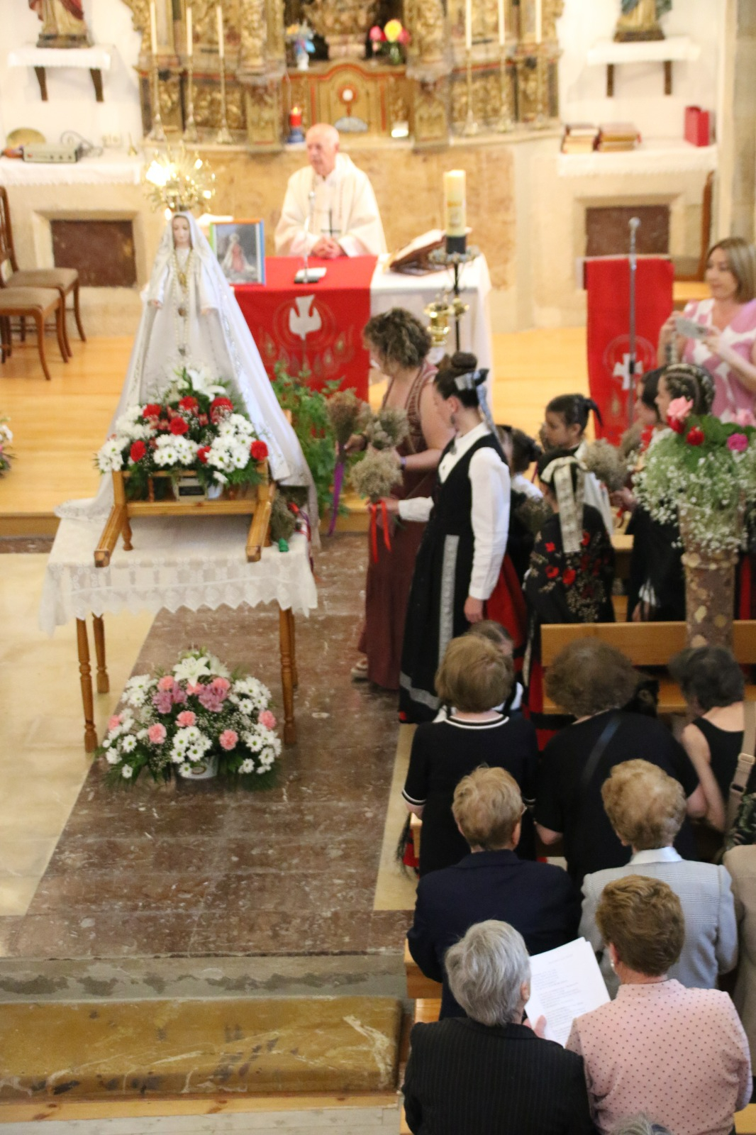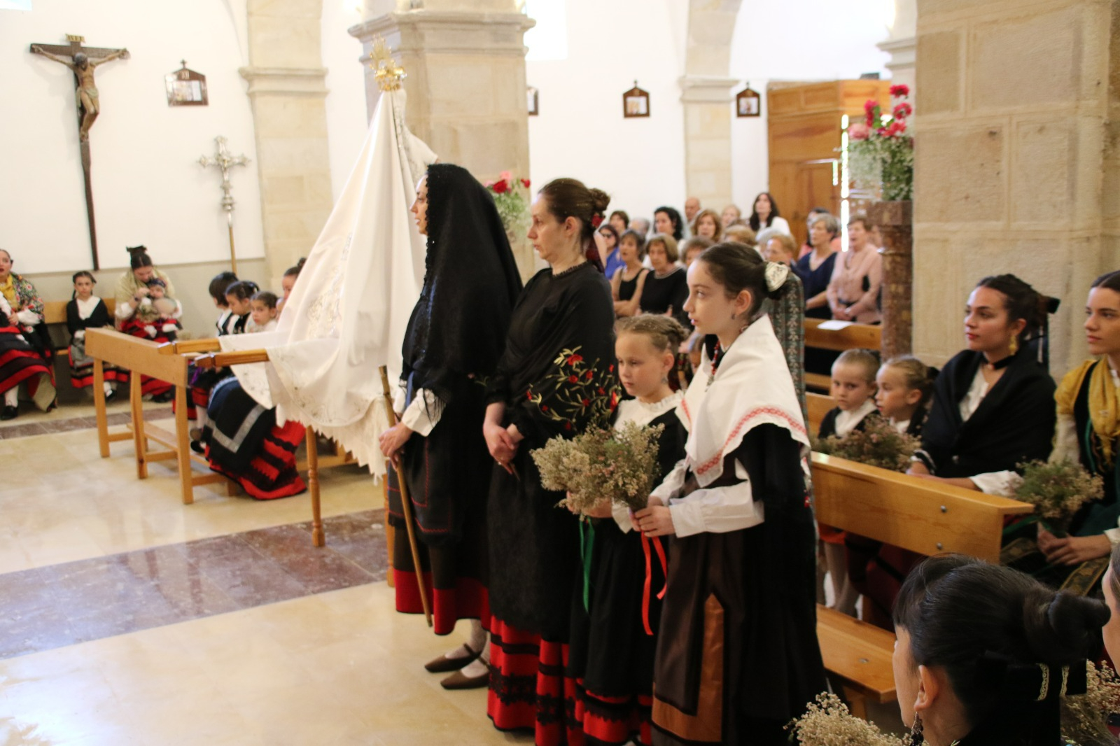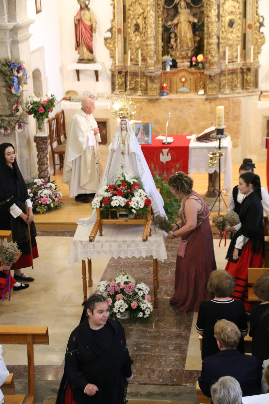 Uno de los momentos más esperados de las fiestas de Espejón en honor a la Virgen de Brezales se ha vivido esta mañana de sábado durante la misa: la Ofrenda del Ramo. Se trata de un emotivo acto que se ha incorporado al programa festivo este año. Mozas y niñas han lucido el traje regional, llenando de color, simbolismo y emoción esta nueva tradición que ha dado un carácter especial a la celebración religiosa.