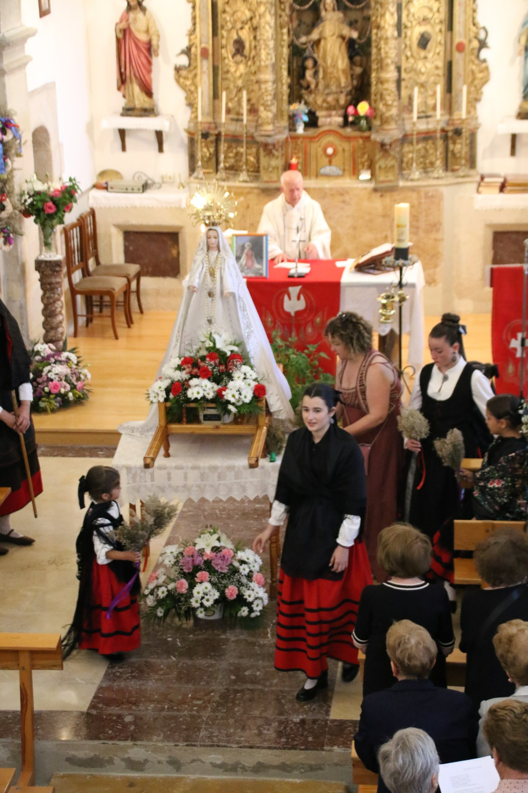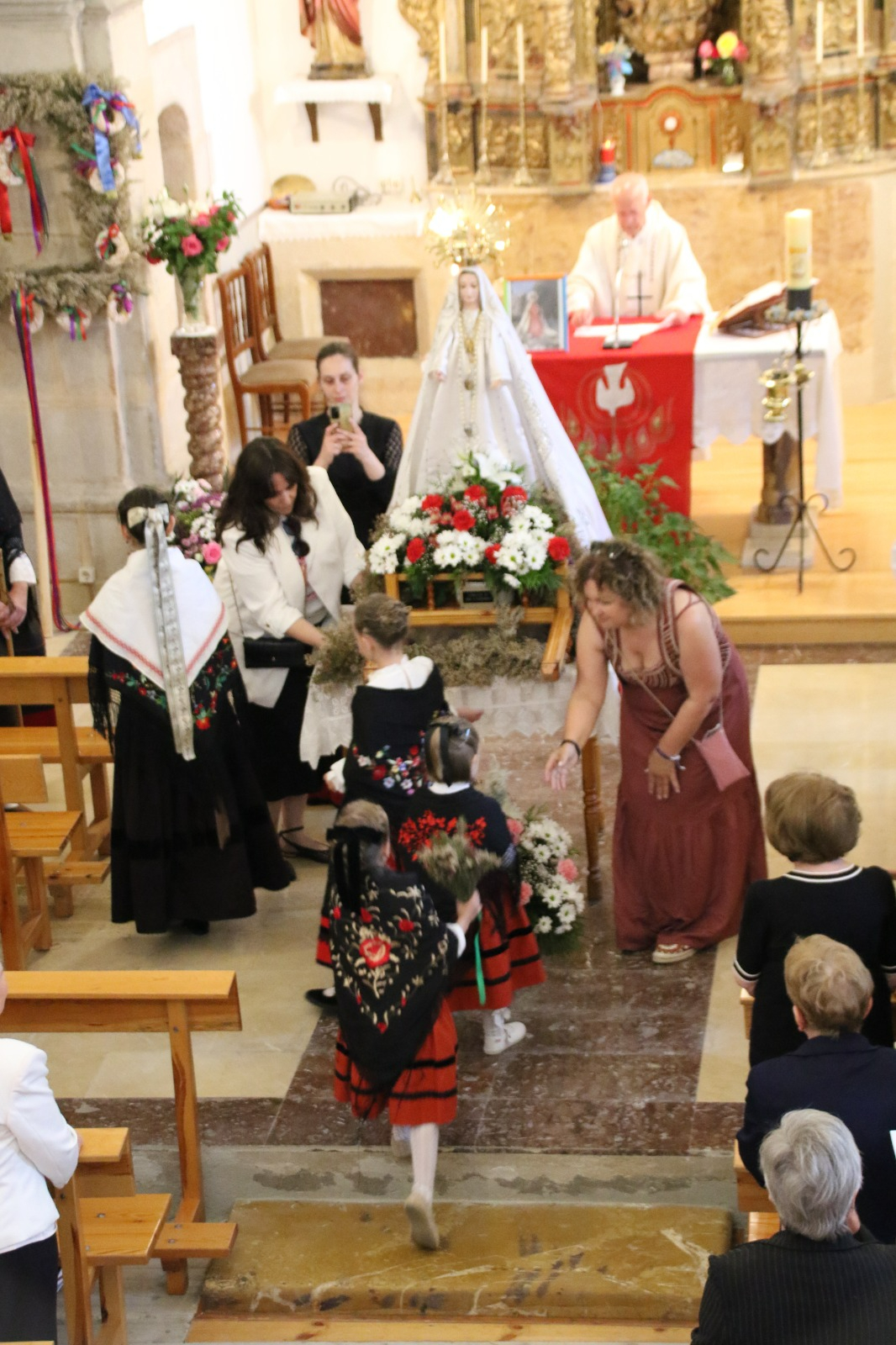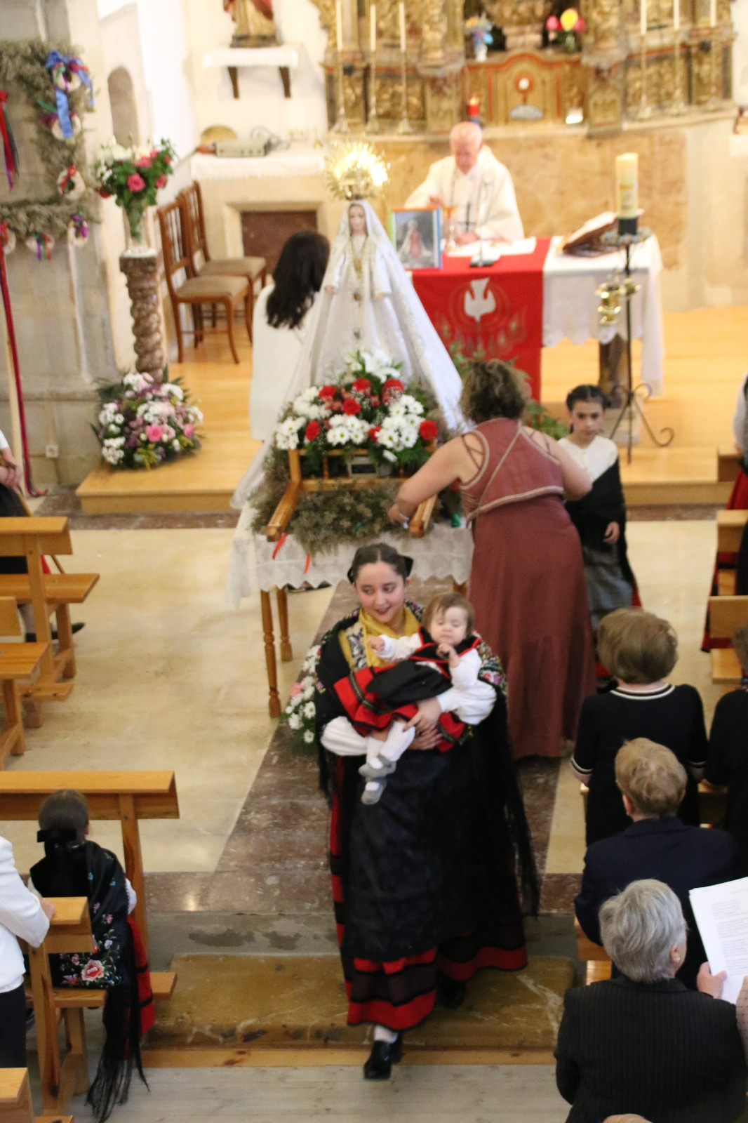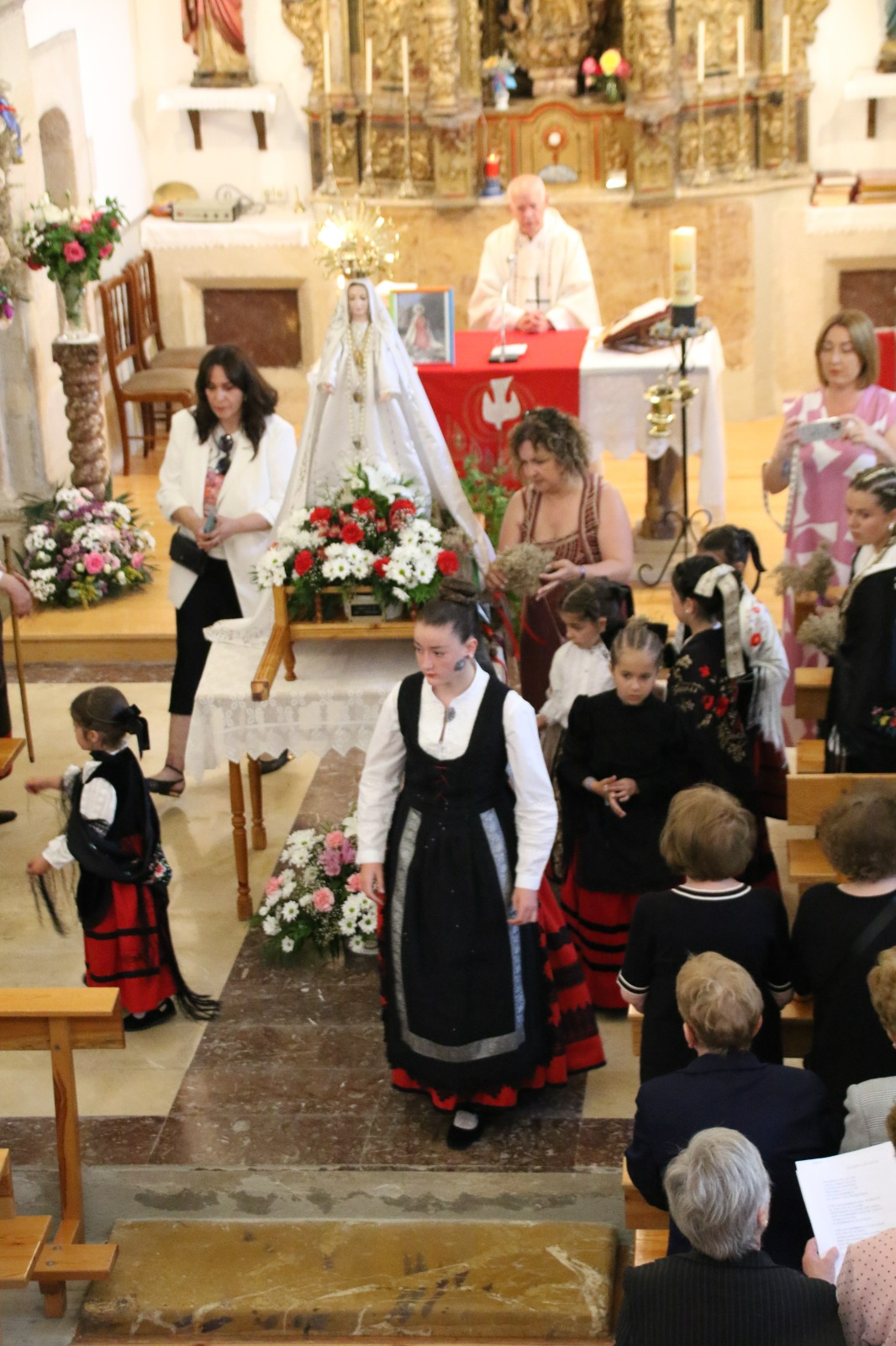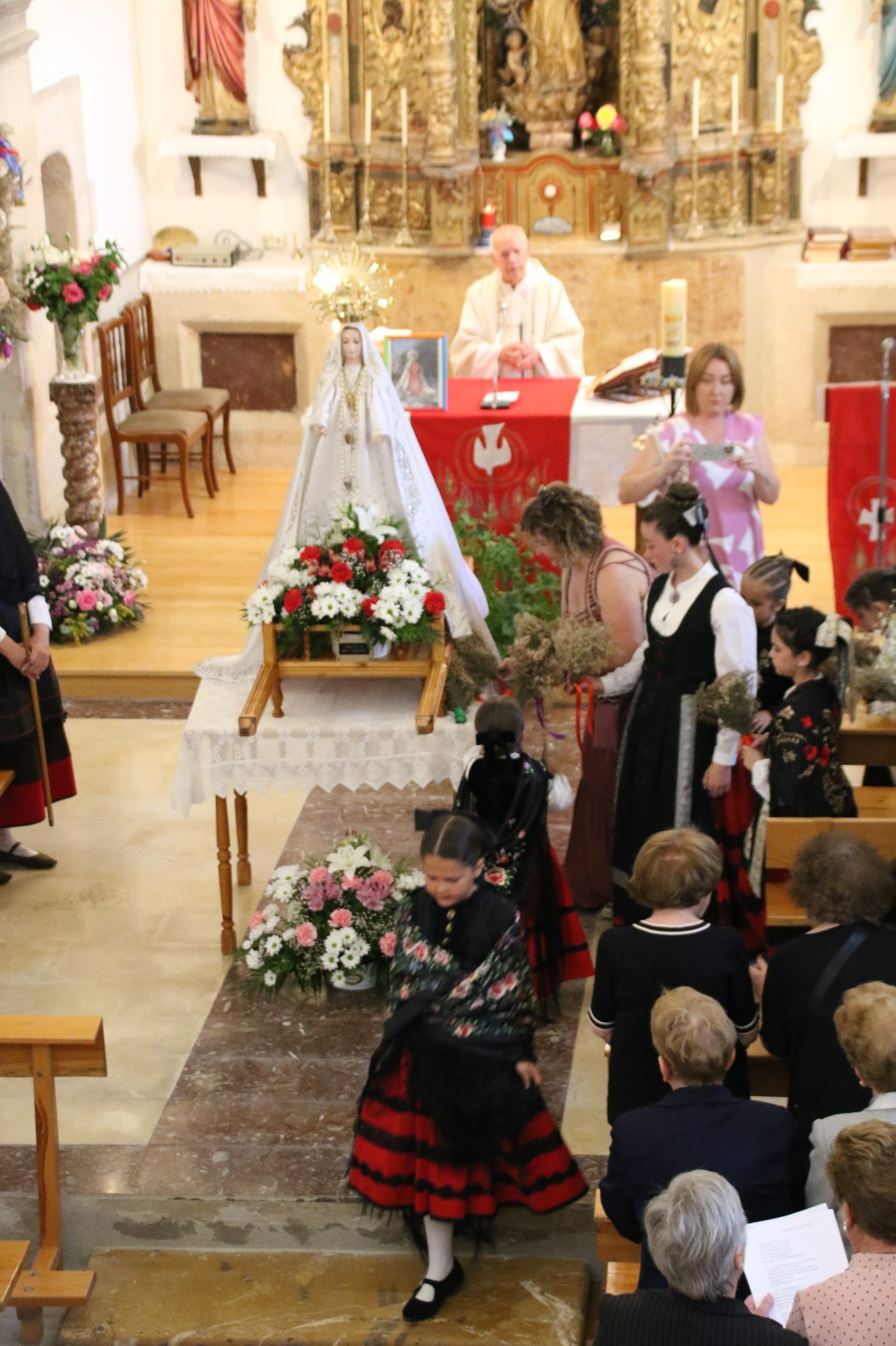 Uno de los momentos más esperados de las fiestas de Espejón en honor a la Virgen de Brezales se ha vivido esta mañana de sábado durante la misa: la Ofrenda del Ramo. Se trata de un emotivo acto que se ha incorporado al programa festivo este año. Mozas y niñas han lucido el traje regional, llenando de color, simbolismo y emoción esta nueva tradición que ha dado un carácter especial a la celebración religiosa.