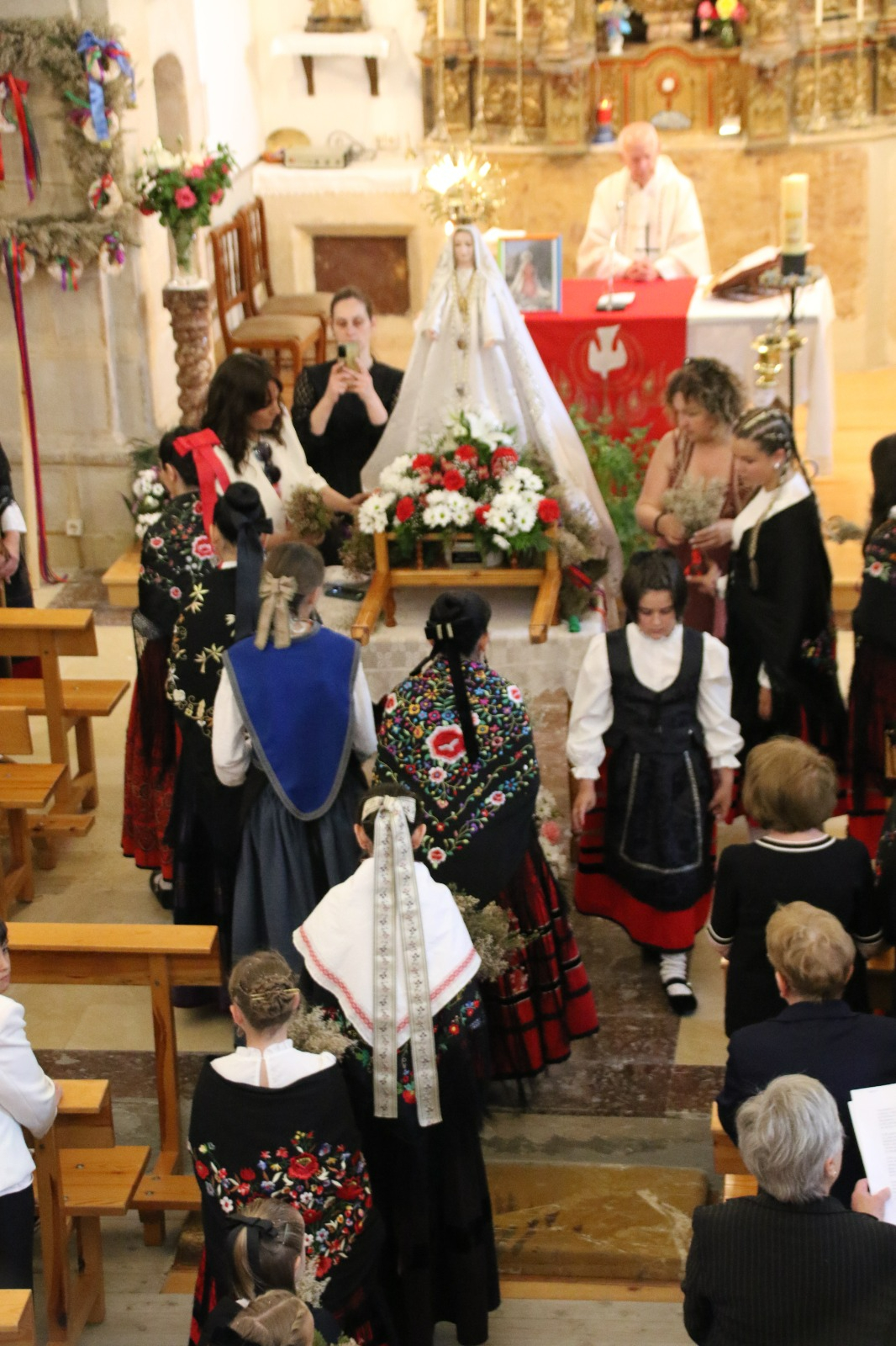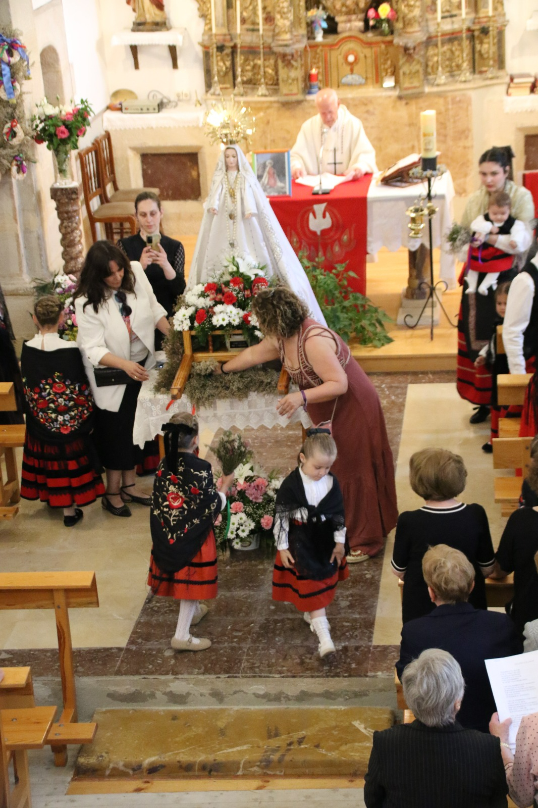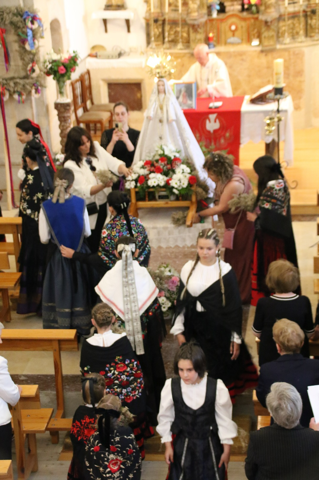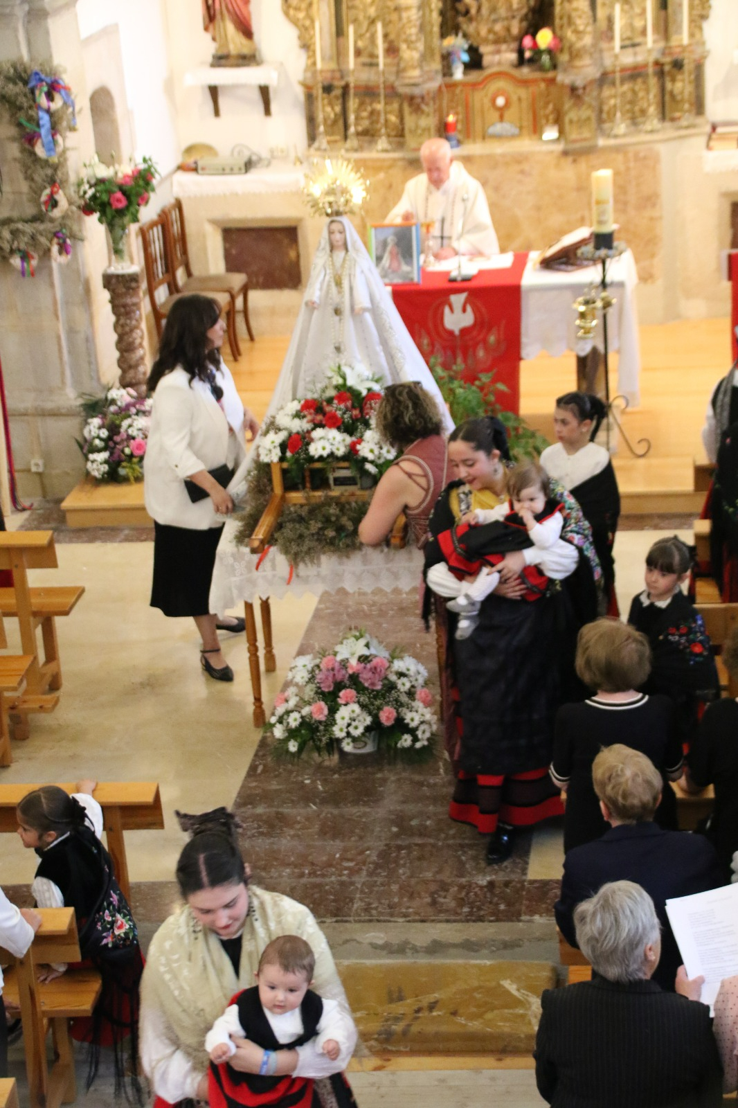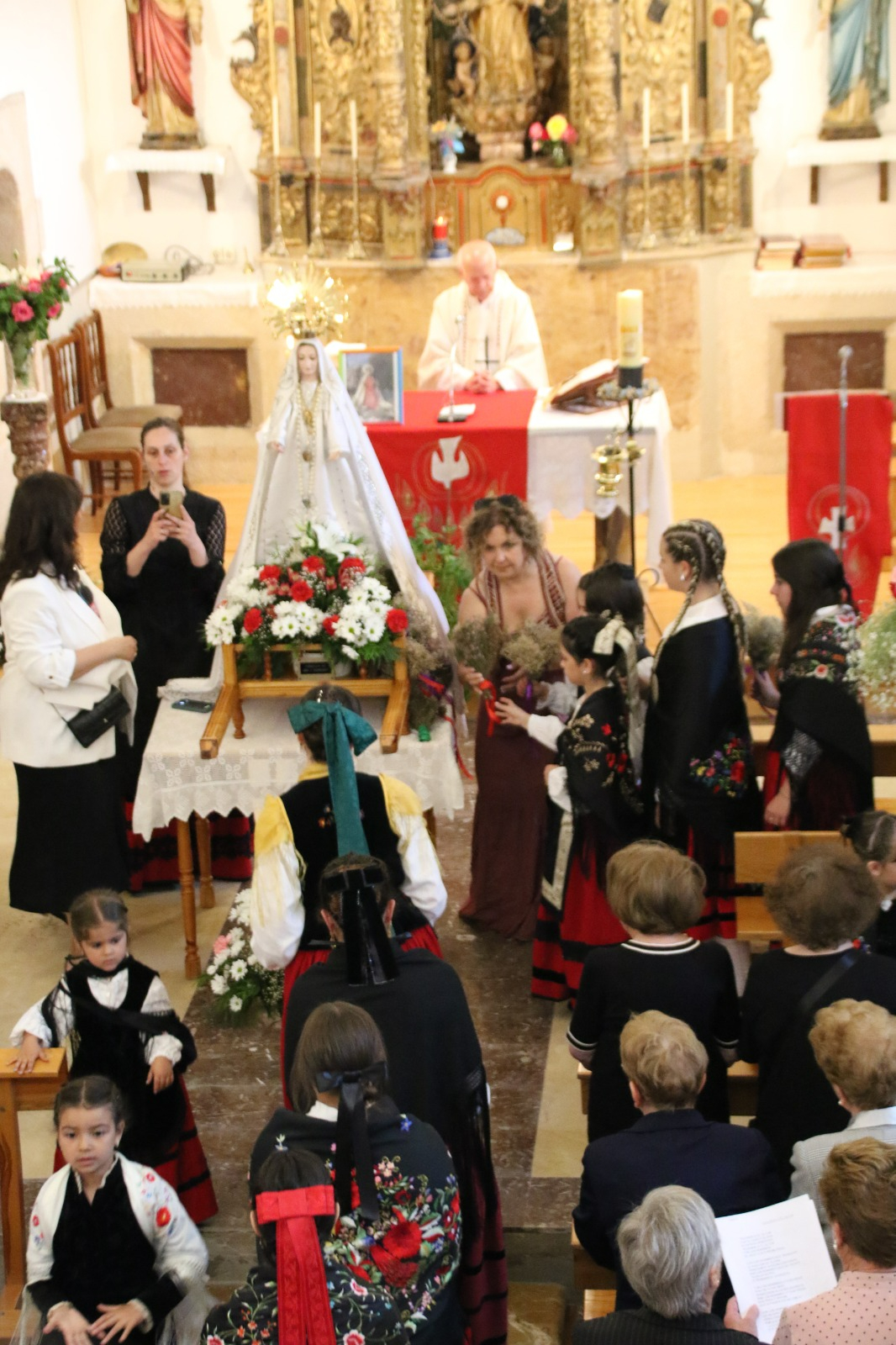 Uno de los momentos más esperados de las fiestas de Espejón en honor a la Virgen de Brezales se ha vivido esta mañana de sábado durante la misa: la Ofrenda del Ramo. Se trata de un emotivo acto que se ha incorporado al programa festivo este año. Mozas y niñas han lucido el traje regional, llenando de color, simbolismo y emoción esta nueva tradición que ha dado un carácter especial a la celebración religiosa.