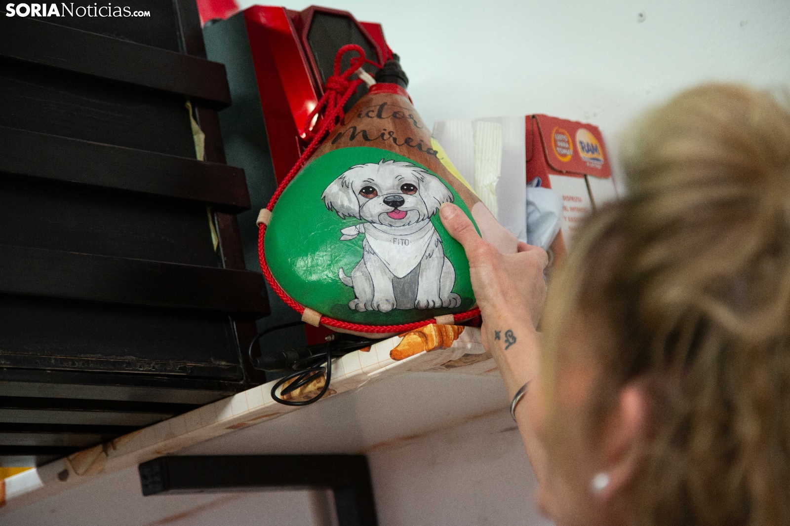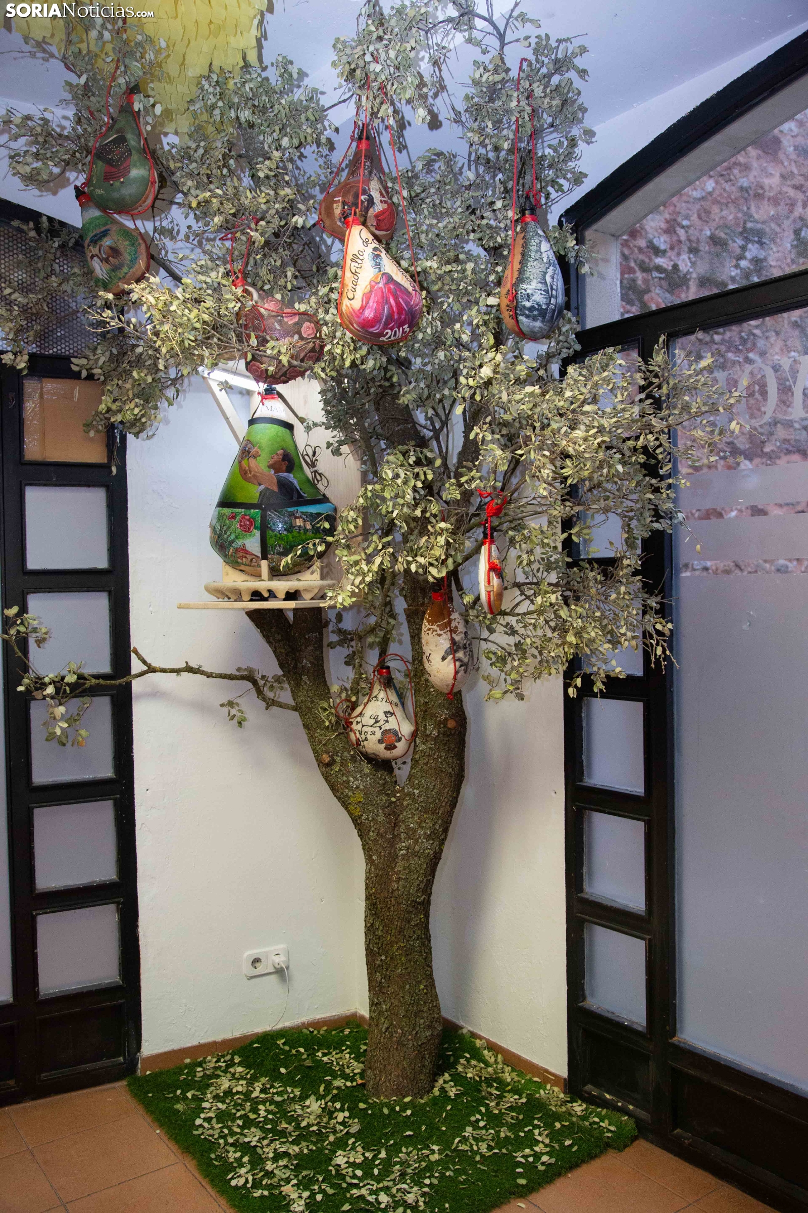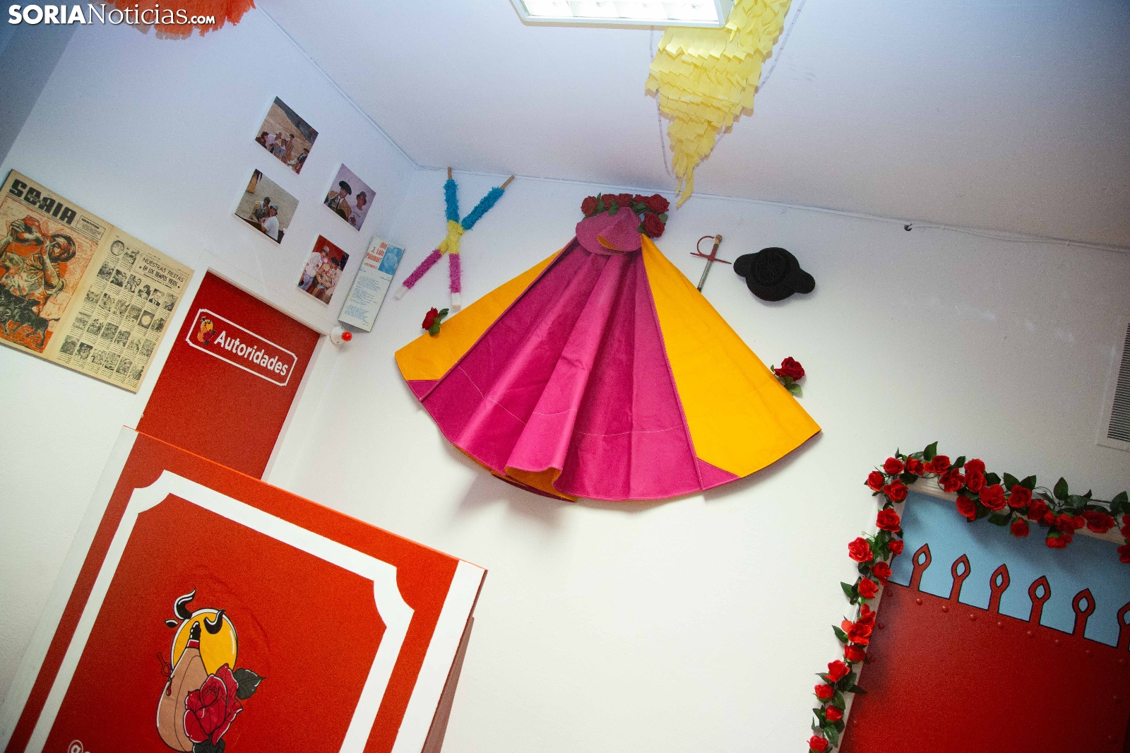 Los jurados, Mireia Molina y Víctor Manuel Hergueta, han dado un lavado de cara completo al local. Empezando por la cocina, han creado un espacio en el que no falta ningún detalle de las fiestas de San Juan. Una de las paredes luce una foto del propio Víctor, en la que se aprecia la salida de la Saca del 2024. Otro de los rincones más especiales del local cuenta con los carteles de San Juan de los años en los que nacieron los hijos de la pareja. La tradición familiar perdura en otro de los rincones de la cuadrilla con un espacio dedicado para los recuerdos de sus tíos y padres. A todo ello, hay que sumarle un jardín vertical, una pared al estilo cómic, un proyector con sanjuaneras y un espacio para las peñas en el que se vislumbran sus pañuelos desde el año 1959. Por último, reluce con luz propia una bota enorme en la que se aprecian varios momentos especiales de la vida de la pareja.