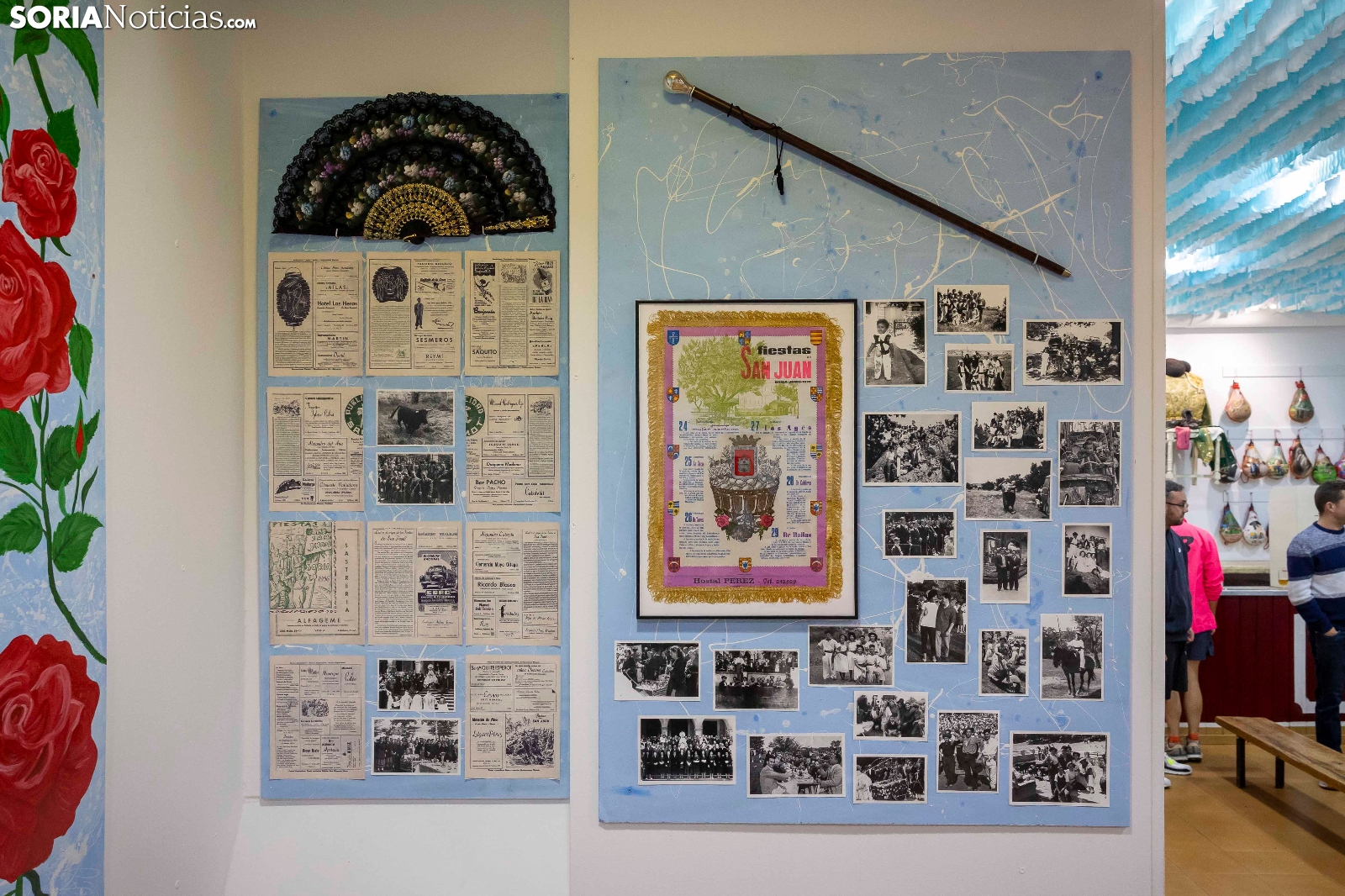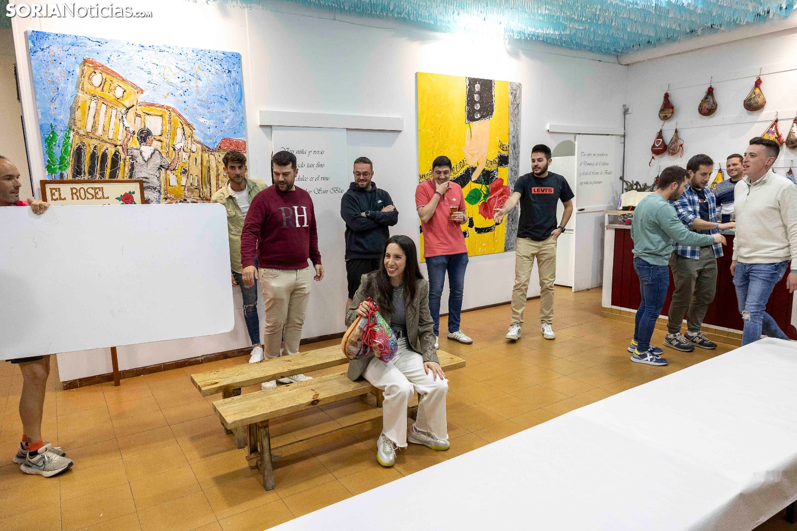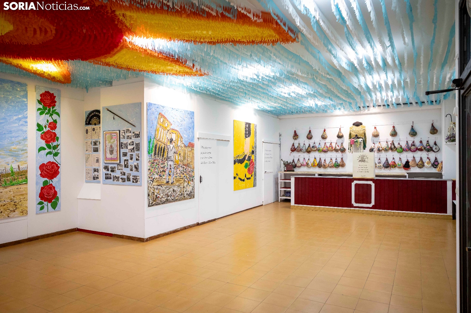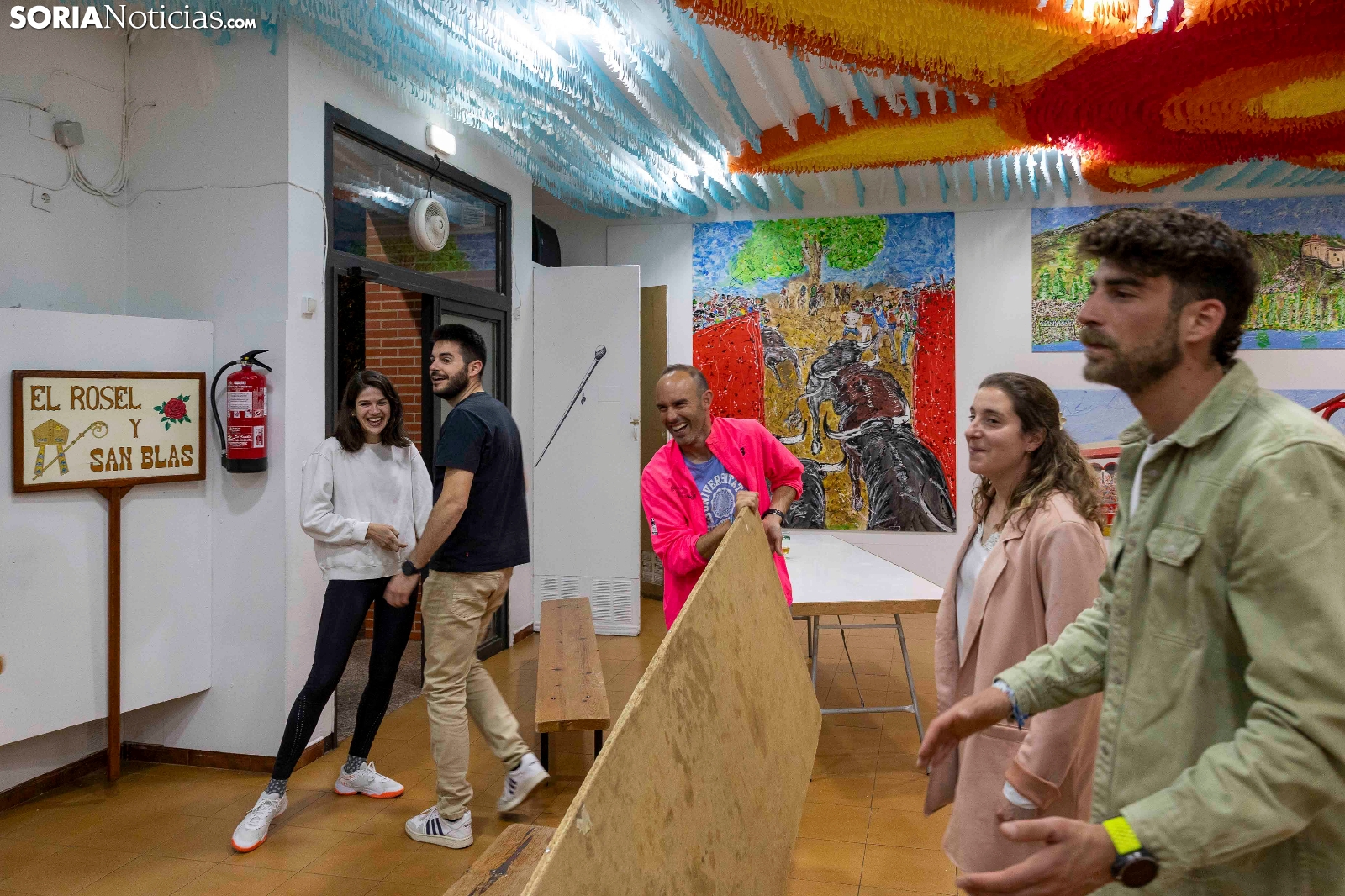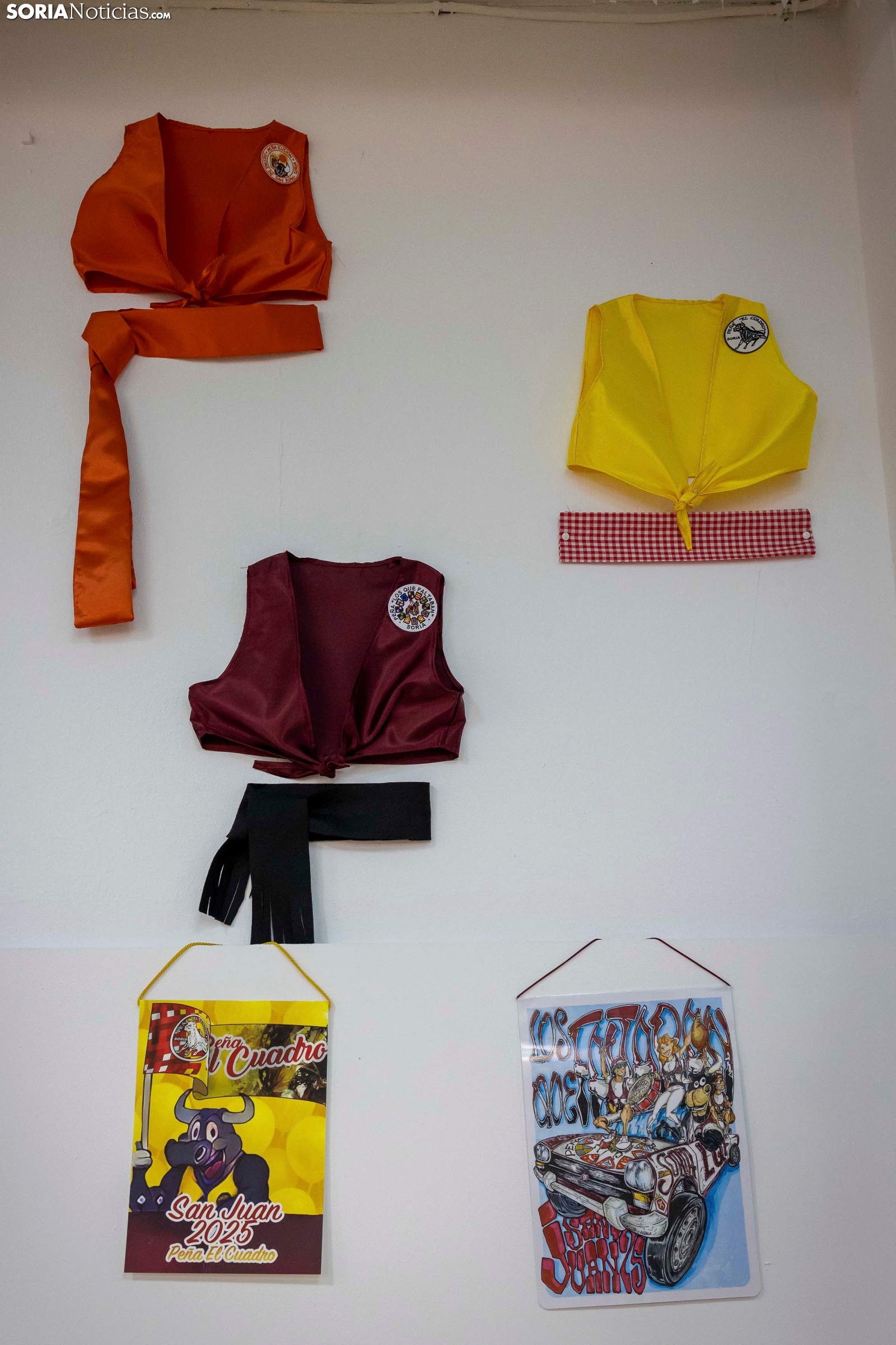 Sandra Romero y Pablo García, jurados de El Rosel y San Blas, han preparado local en el que se ven representados los diferentes días, lugares emblemáticos como la Soledad o el árbol de la música o las peñas. A ello, hay que sumarle unas 50 botas “que nos han entregado los colaboradores con mucho cariño”. Entre sus favoritas, una en la que salen inmortalizados ellos u otra en la que se recogen diferentes momentos del Catapán.