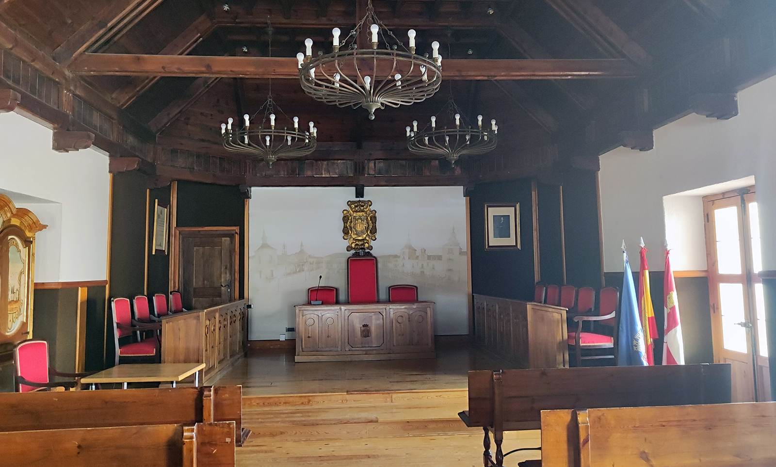 Mientras duró la obra, los servicios municipales tuvieron que cruzar la plaza Mayor para instalarse justo en el otro frontal de esta, en el centro cultural San Agustín. Durante esos meses, no solo los servicios municipales, sino también el salón de plenos, se reubicaron en las diferentes estancias del antiguo hospital.