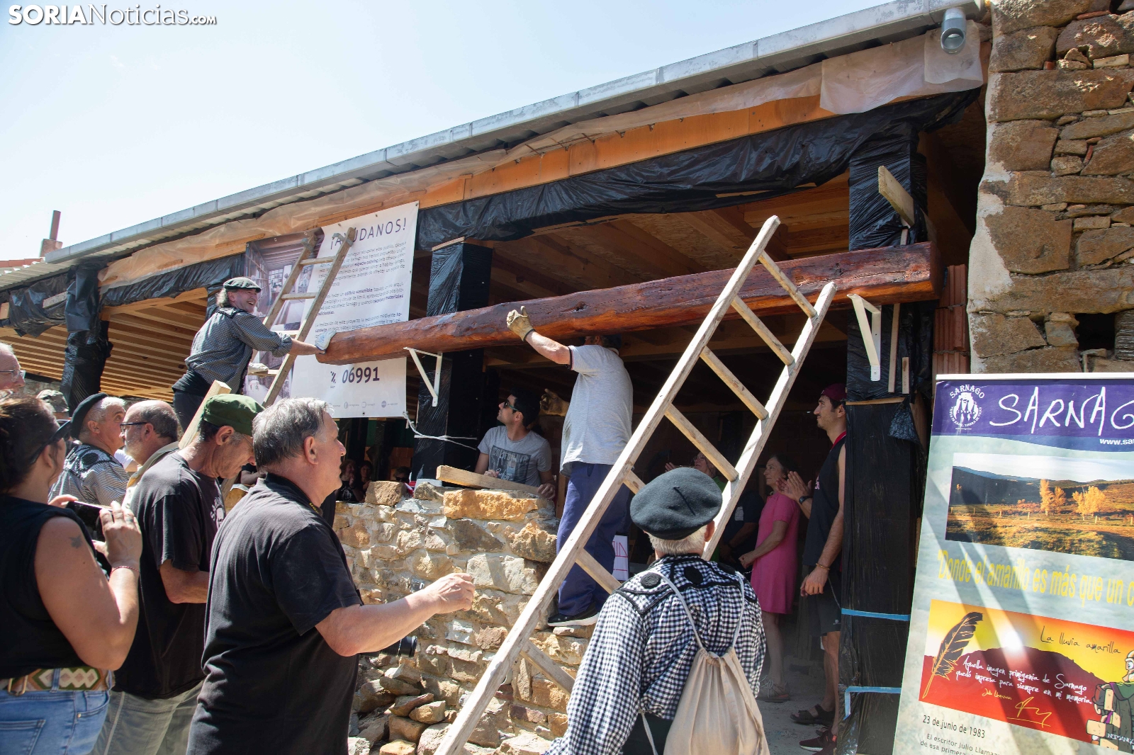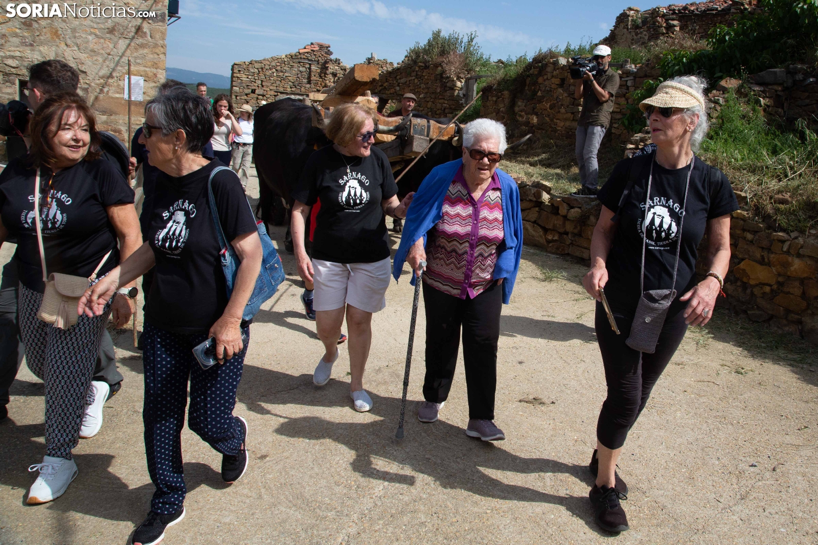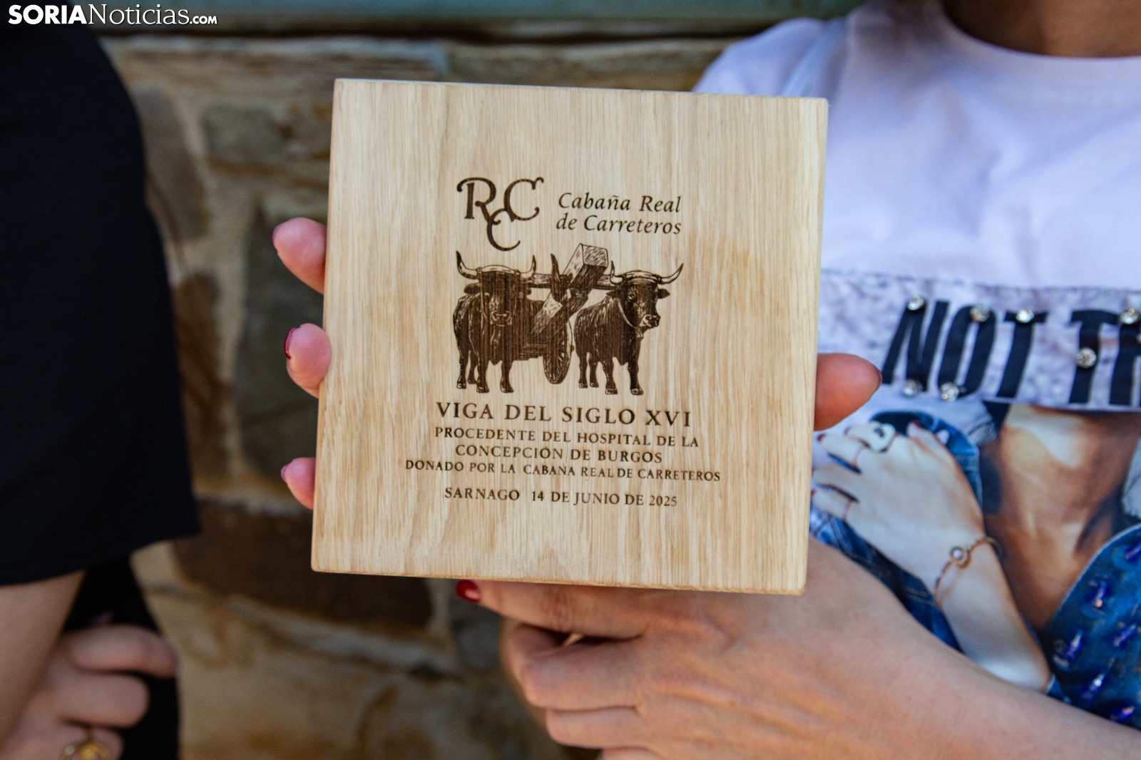 Sarnago ha celebrado esta mañana, gracias a la Asociación de Amigos de la localidad y a la Cabaña Real de Carreteros, la Ruta Carreteril 2025, un homenaje al transporte tradicional de madera y, al mismo tiempo, un acto profundamente simbólico: la entrega en el pueblo de una viga del siglo XVI, procedente del antiguo Hospital de la Concepción de Burgos, que será integrada en la construcción de El Refugio de Sarnago, un proyecto colectivo para dar nueva vida a este pueblo soriano, hoy sin vecinos permanentes. La expectación ha sido la protagonista en una mañana llena de emociones.