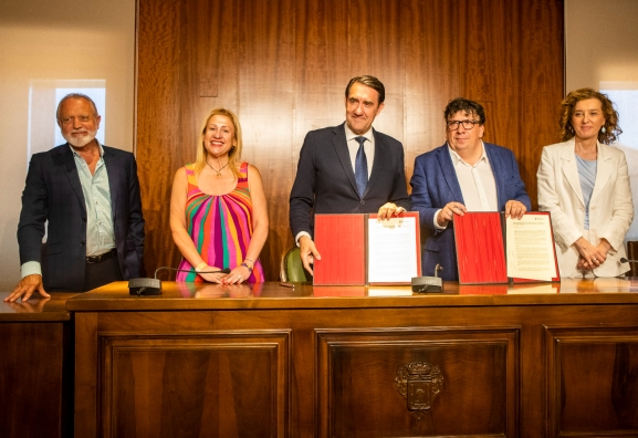 La Junta de Castilla y León y el Ayuntamiento de Almazán han firmado un acuerdo, a petición de este último, para la construcción de 12 viviendas públicas dirigidas a los jóvenes, con el objetivo de "asentar población en nuestra localidad", ha indicado con palabras de alegría el alcalde del municipio, Jesús Cedazo. Para llevar a cabo este acuerdo, el consistorio cederá una parcela ubicada en la carretera general Martínez, al lado del monumento al Zarrón.