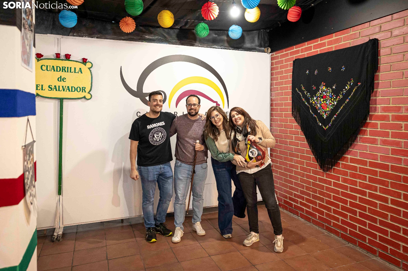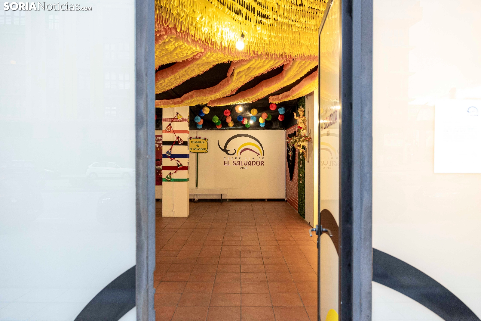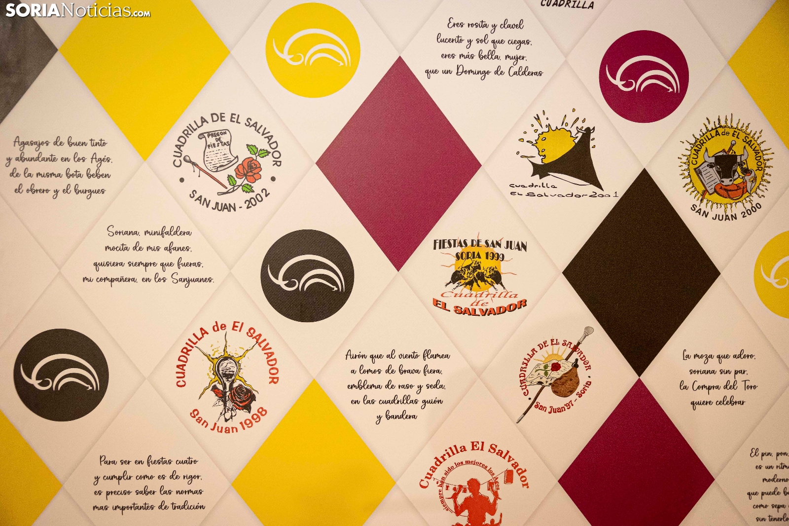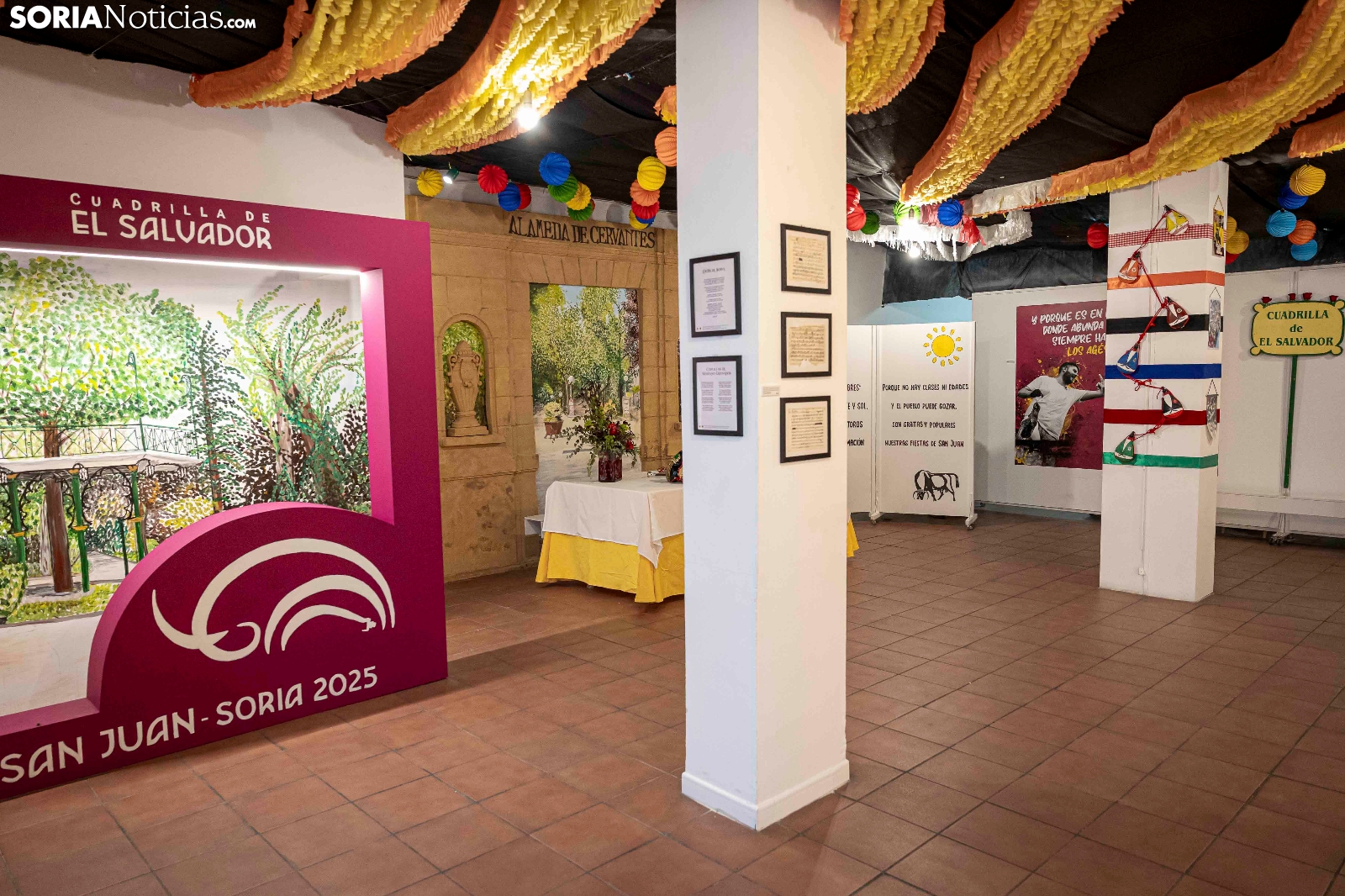 Los integrantes de la cuadrilla, encabezados por los jurados, Alba García y Sergio García, se han volcado en un local al que no le falta ningún detalle sanjuanero. La pared principal representa uno a uno los seis días de San Juan con unas formas geométricas "variadas y alegres". Además, también se puede apreciar un mantón bordado por la madre de Sergio o un jardín vertical y las letras de la cuadrilla que acompañan al Santo. Los rincones con recuerdos familiares tampoco faltan en El Salvador, con un marco con fotos de todos los colaboradores, un espacio con logos de la cuadrilla desde 1988 (año en el que nacieron), y con un photocall creado con mucho cariño por los padres de la jurada, Teo y Marisol. Los pilares se acuerdan de dos elementos fundamentales de las fiestas como la música y las peñas. Todo ello sin olvidarse de mirar al techo y de disfrutar con las botas que tienen listas para los mejores Agés.