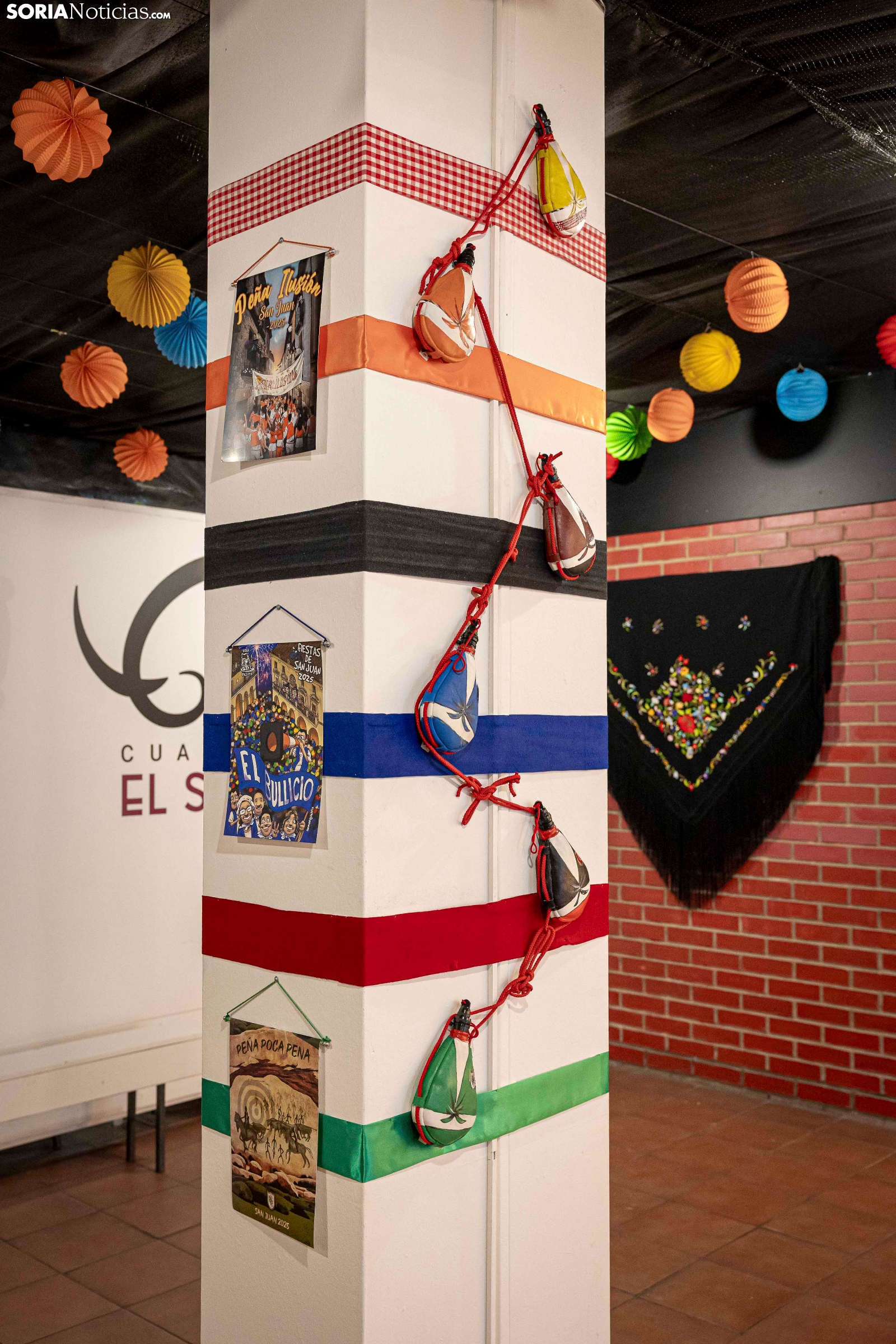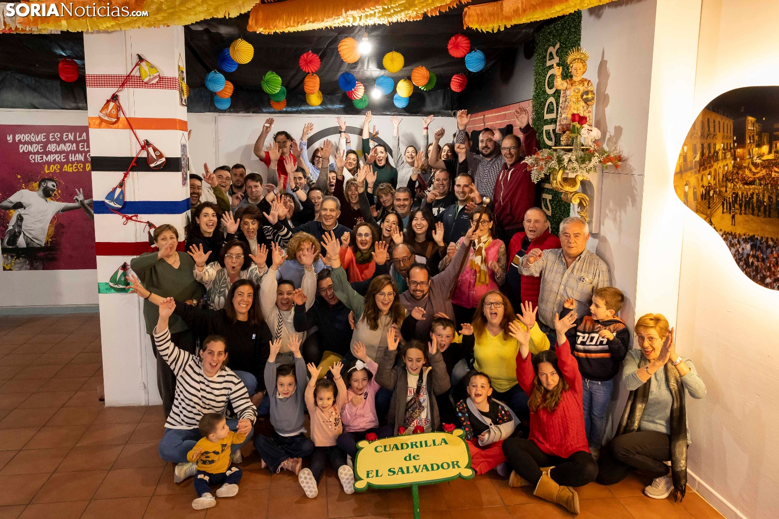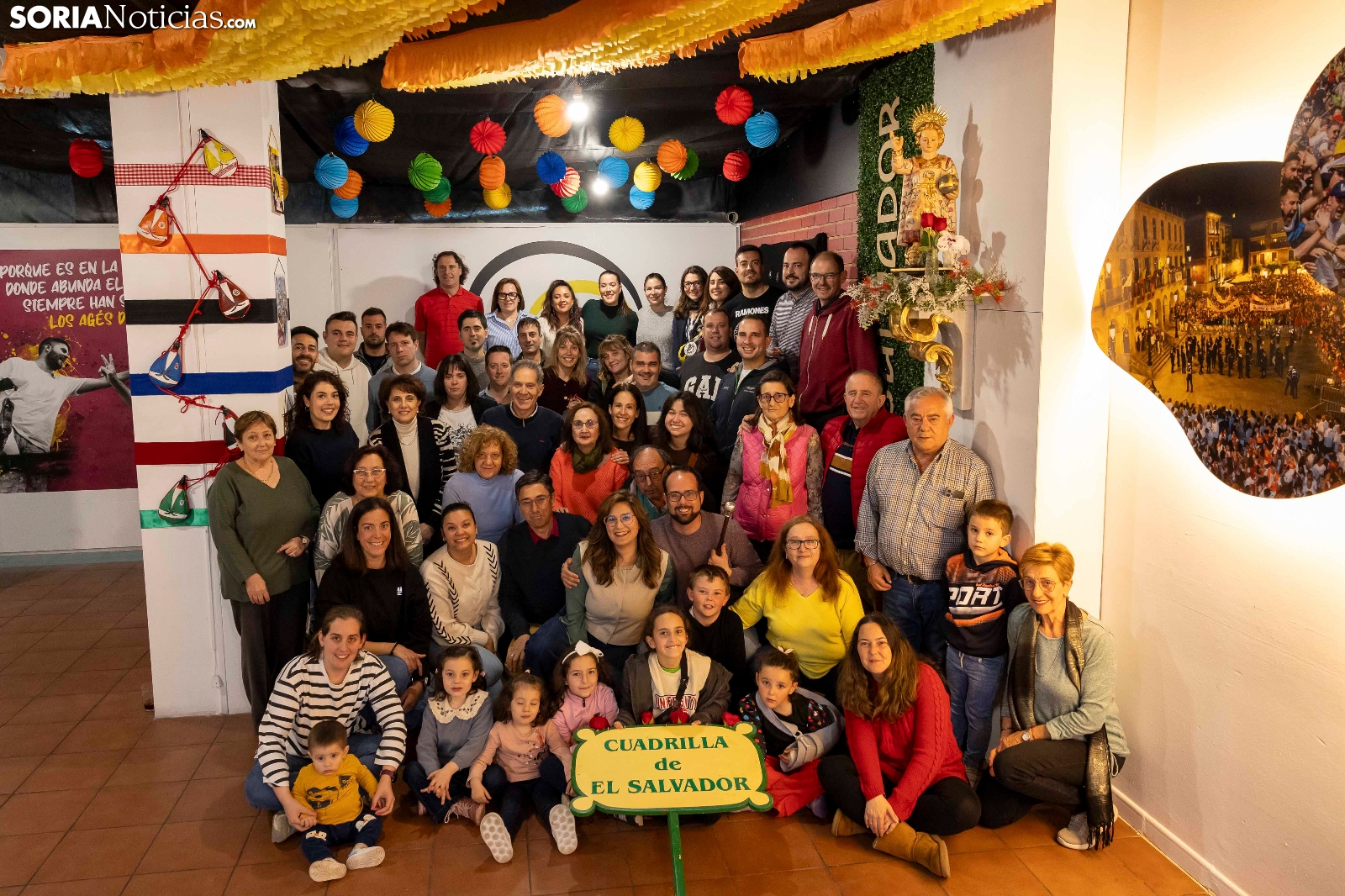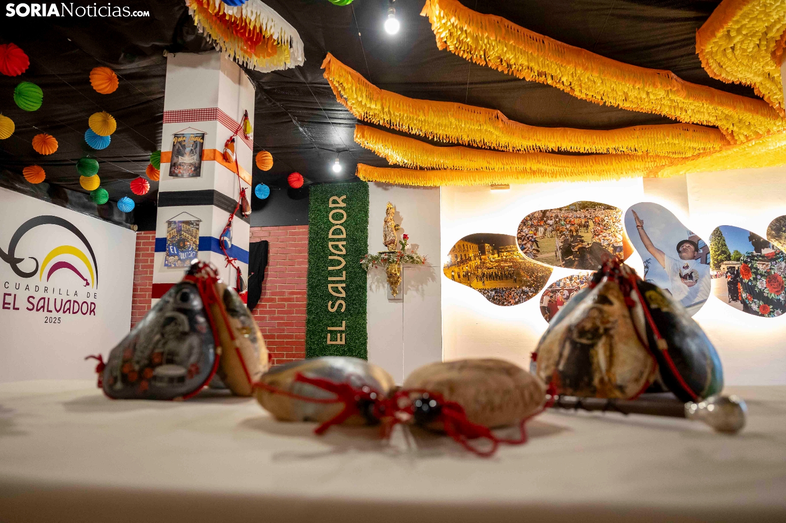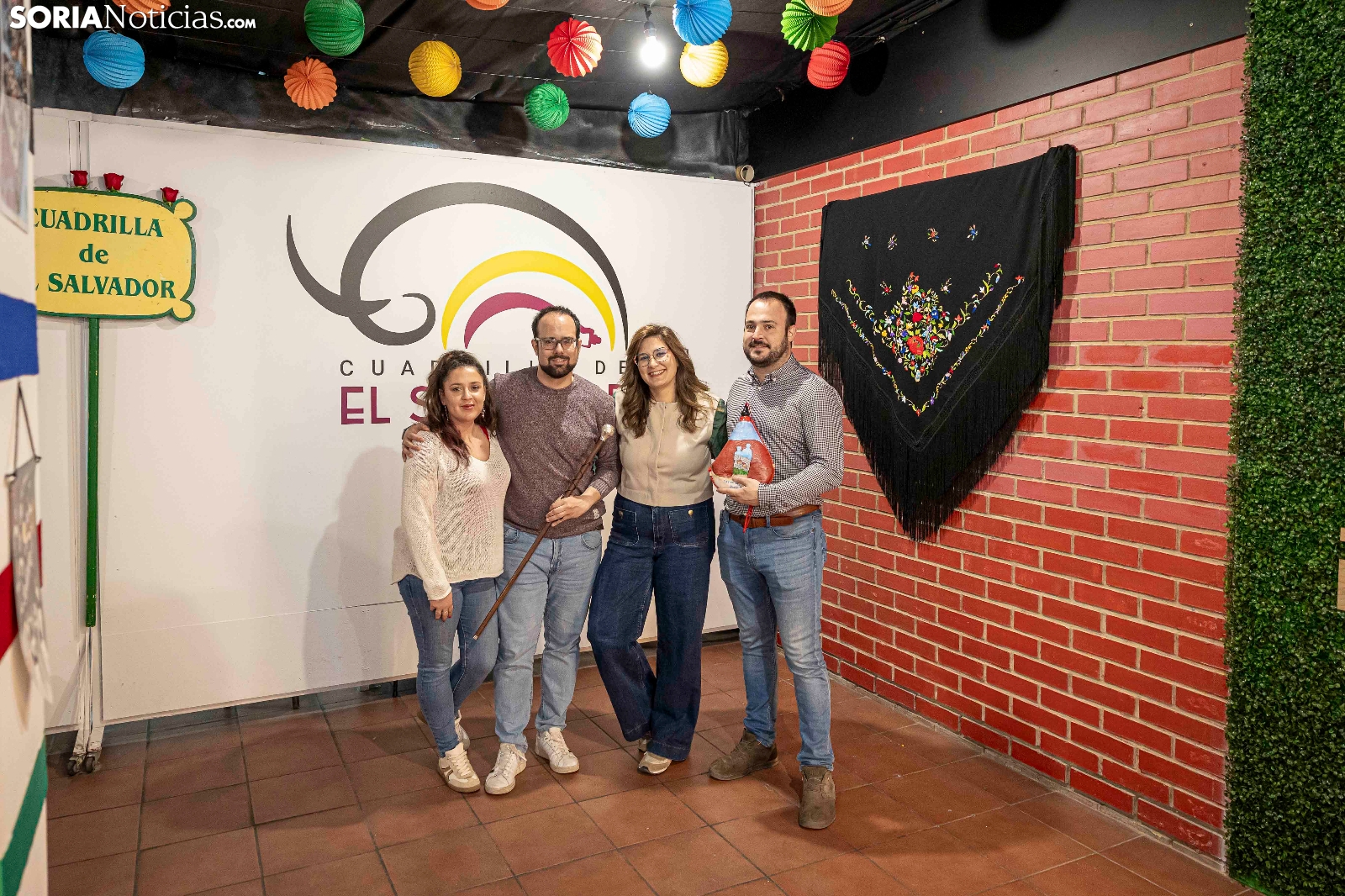 Los integrantes de la cuadrilla, encabezados por los jurados, Alba García y Sergio García, se han volcado en un local al que no le falta ningún detalle sanjuanero. La pared principal representa uno a uno los seis días de San Juan con unas formas geométricas "variadas y alegres". Además, también se puede apreciar un mantón bordado por la madre de Sergio o un jardín vertical y las letras de la cuadrilla que acompañan al Santo. Los rincones con recuerdos familiares tampoco faltan en El Salvador, con un marco con fotos de todos los colaboradores, un espacio con logos de la cuadrilla desde 1988 (año en el que nacieron), y con un photocall creado con mucho cariño por los padres de la jurada, Teo y Marisol. Los pilares se acuerdan de dos elementos fundamentales de las fiestas como la música y las peñas. Todo ello sin olvidarse de mirar al techo y de disfrutar con las botas que tienen listas para los mejores Agés.