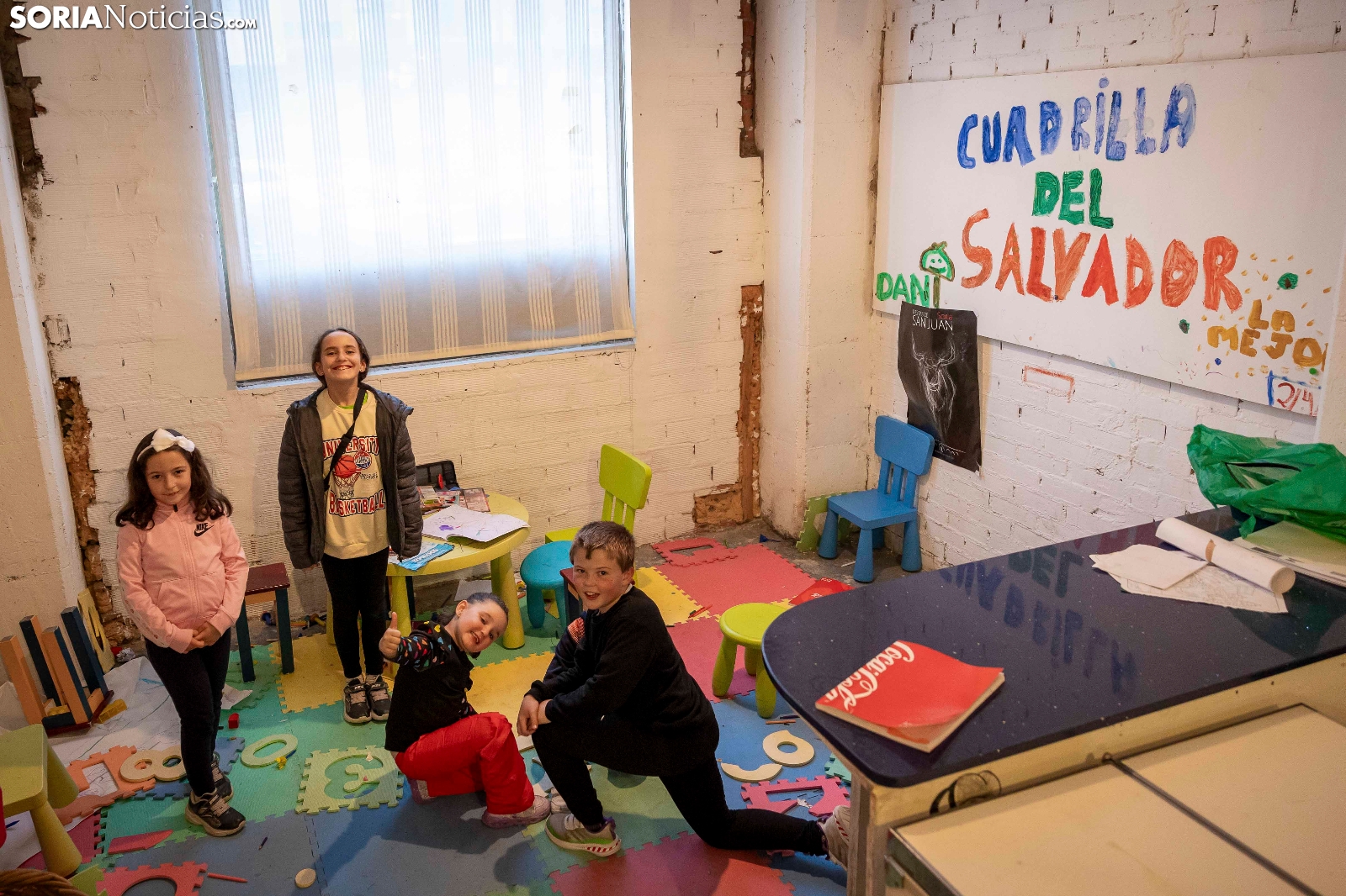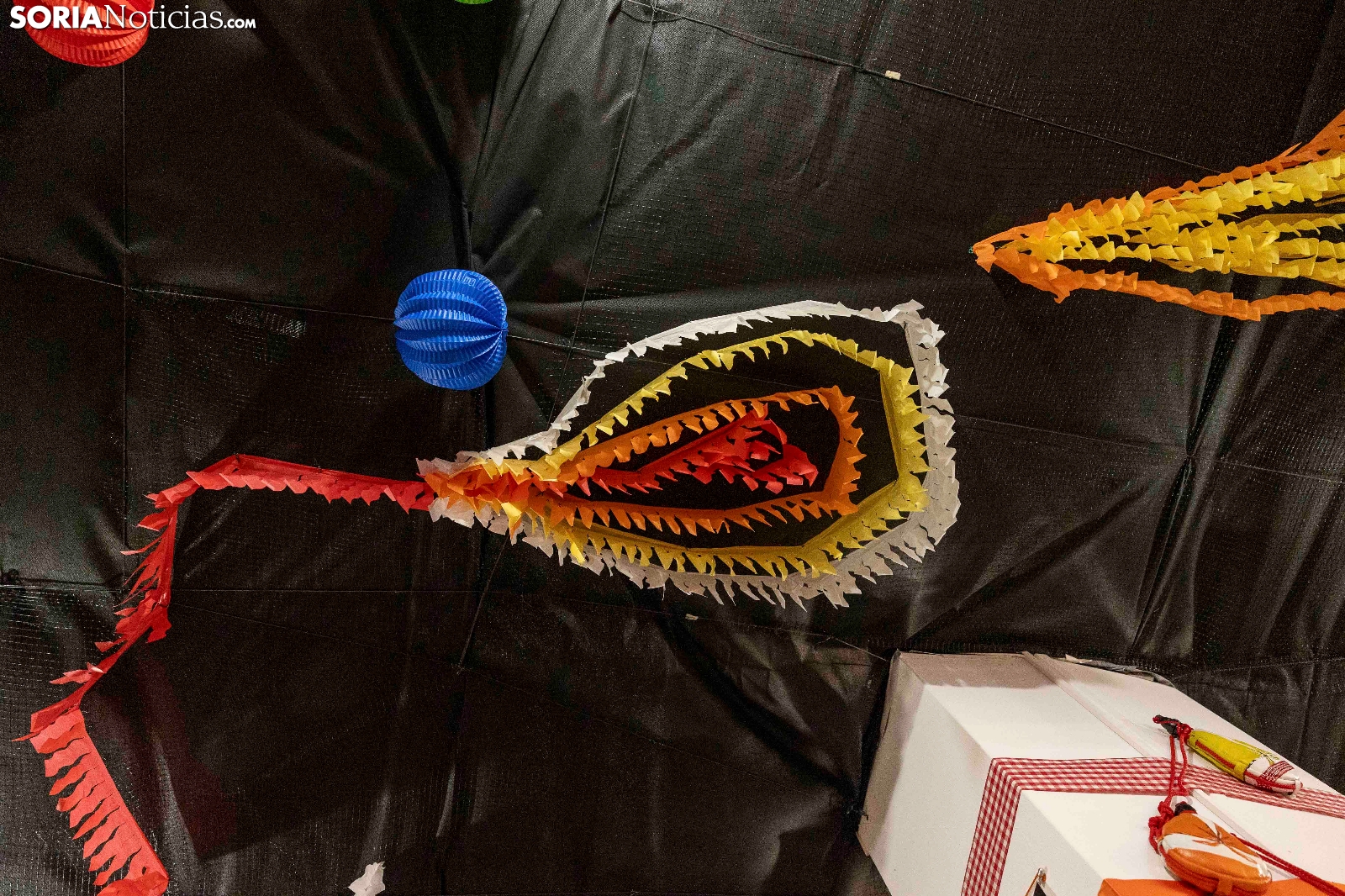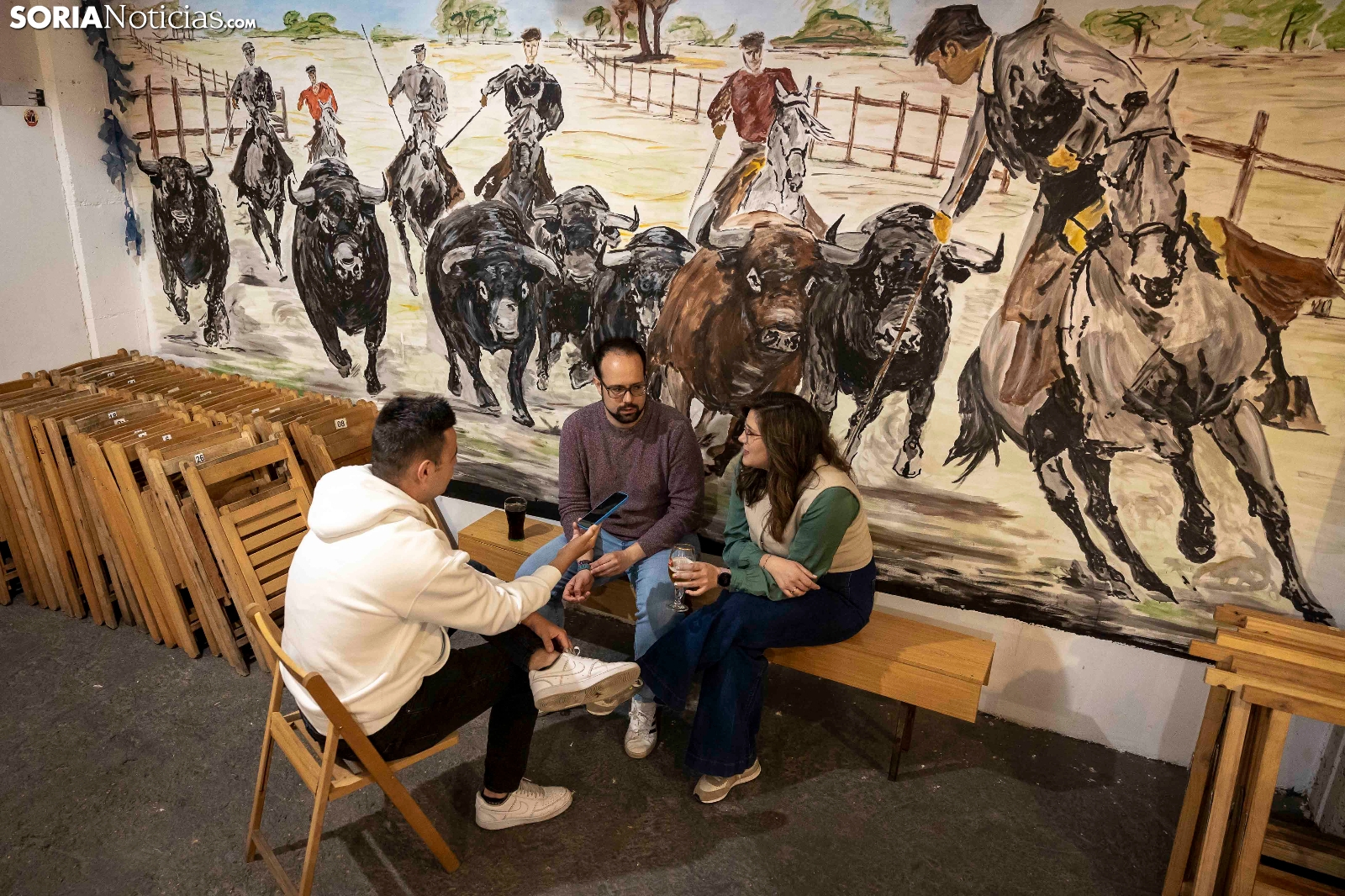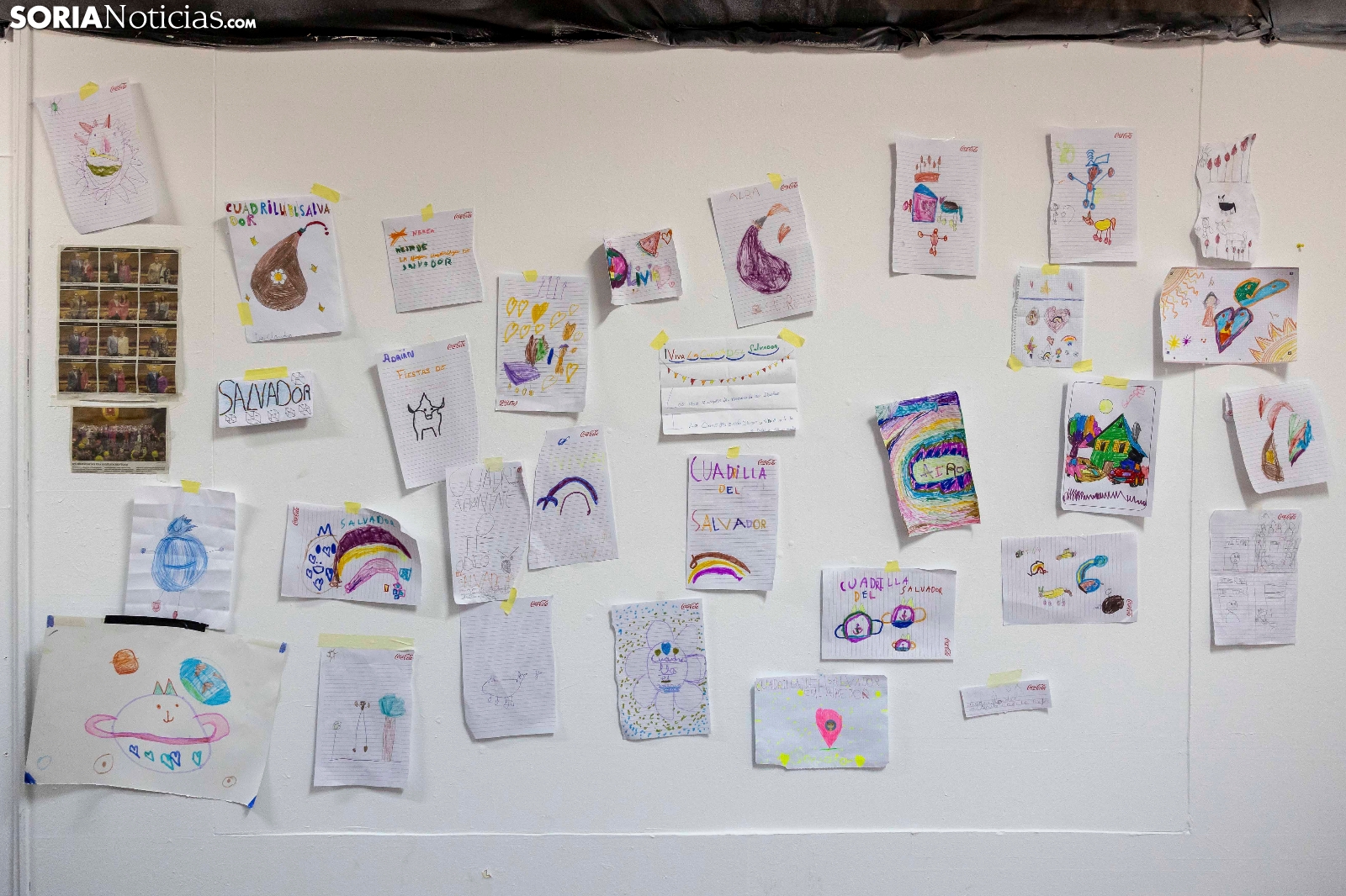 Los integrantes de la cuadrilla, encabezados por los jurados, Alba García y Sergio García, se han volcado en un local al que no le falta ningún detalle sanjuanero. La pared principal representa uno a uno los seis días de San Juan con unas formas geométricas "variadas y alegres". Además, también se puede apreciar un mantón bordado por la madre de Sergio o un jardín vertical y las letras de la cuadrilla que acompañan al Santo. Los rincones con recuerdos familiares tampoco faltan en El Salvador, con un marco con fotos de todos los colaboradores, un espacio con logos de la cuadrilla desde 1988 (año en el que nacieron), y con un photocall creado con mucho cariño por los padres de la jurada, Teo y Marisol. Los pilares se acuerdan de dos elementos fundamentales de las fiestas como la música y las peñas. Todo ello sin olvidarse de mirar al techo y de disfrutar con las botas que tienen listas para los mejores Agés.