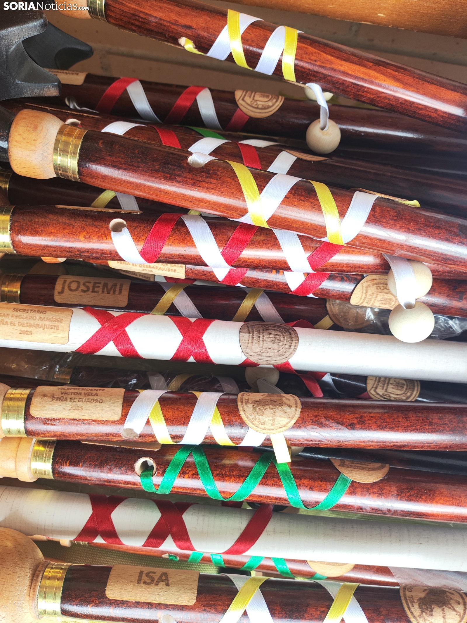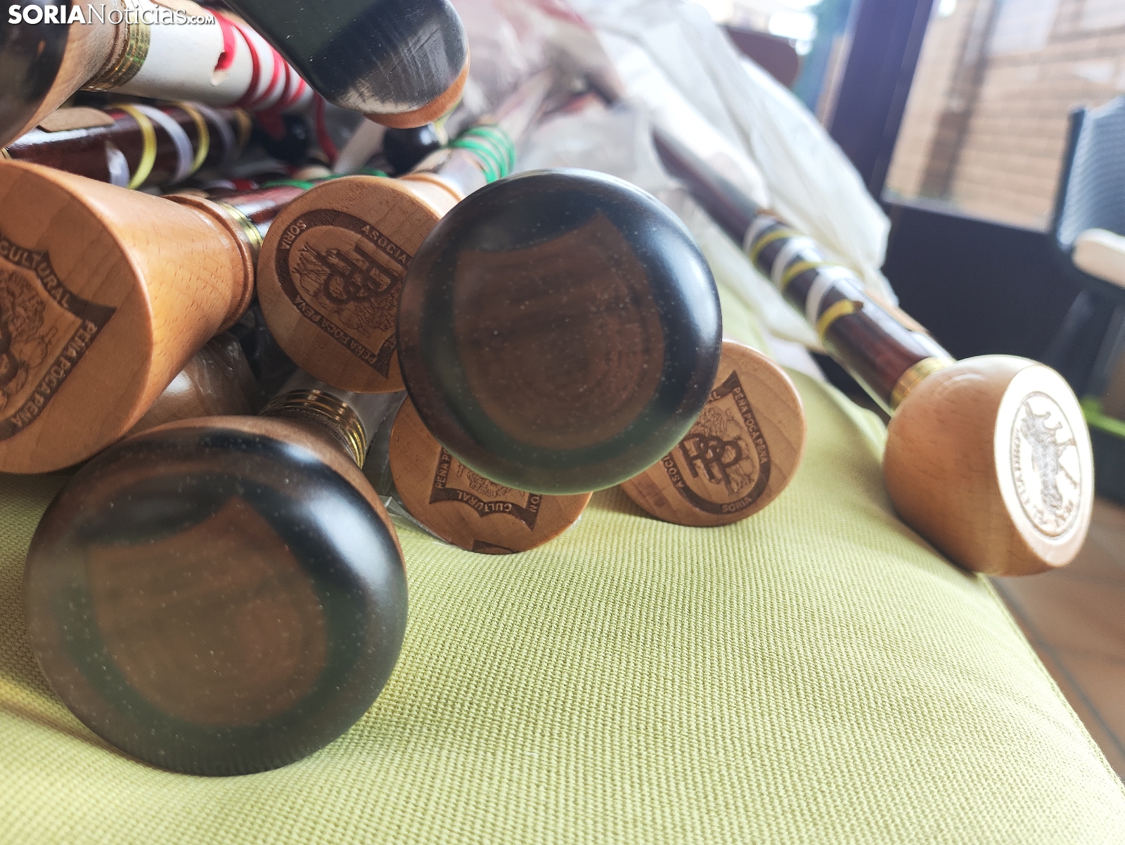 De familia y herencia carpintera, Escolar comenzó a hacer bastones hace tres años cuando le escribieron desde la Poca Pena. El resultado gustó tanto que al año siguiente ya tenía a la mitad de las peñas en su lista de clientes. "Me preguntaron si me atrevía y dije vamos a probar... El resultado fue muy llamativo y salió muy bien. Desde entonces el boca a boca ha hecho el resto", cuenta a Soria Noticias.