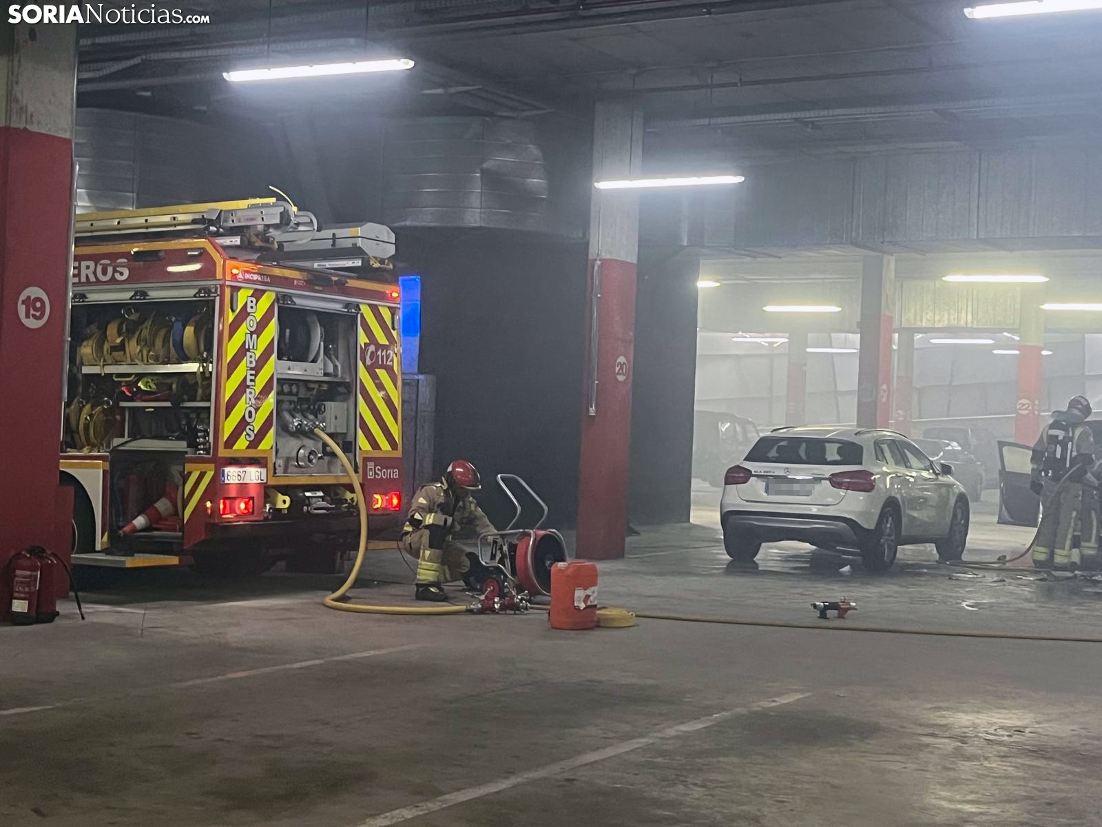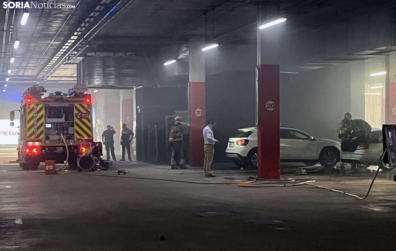 El fuego en un turismo estacionado en el aparcamiento subterráneo del Centro Comercial Camaretas ha hecho intervenir a efectivos de Bomberos de Soria esta mañana de viernes. El fuego, que ha producido una cierta humareda, ha sido sofocado sin que haya afectado a otros vehículos y tampoco ha causado daños personales.