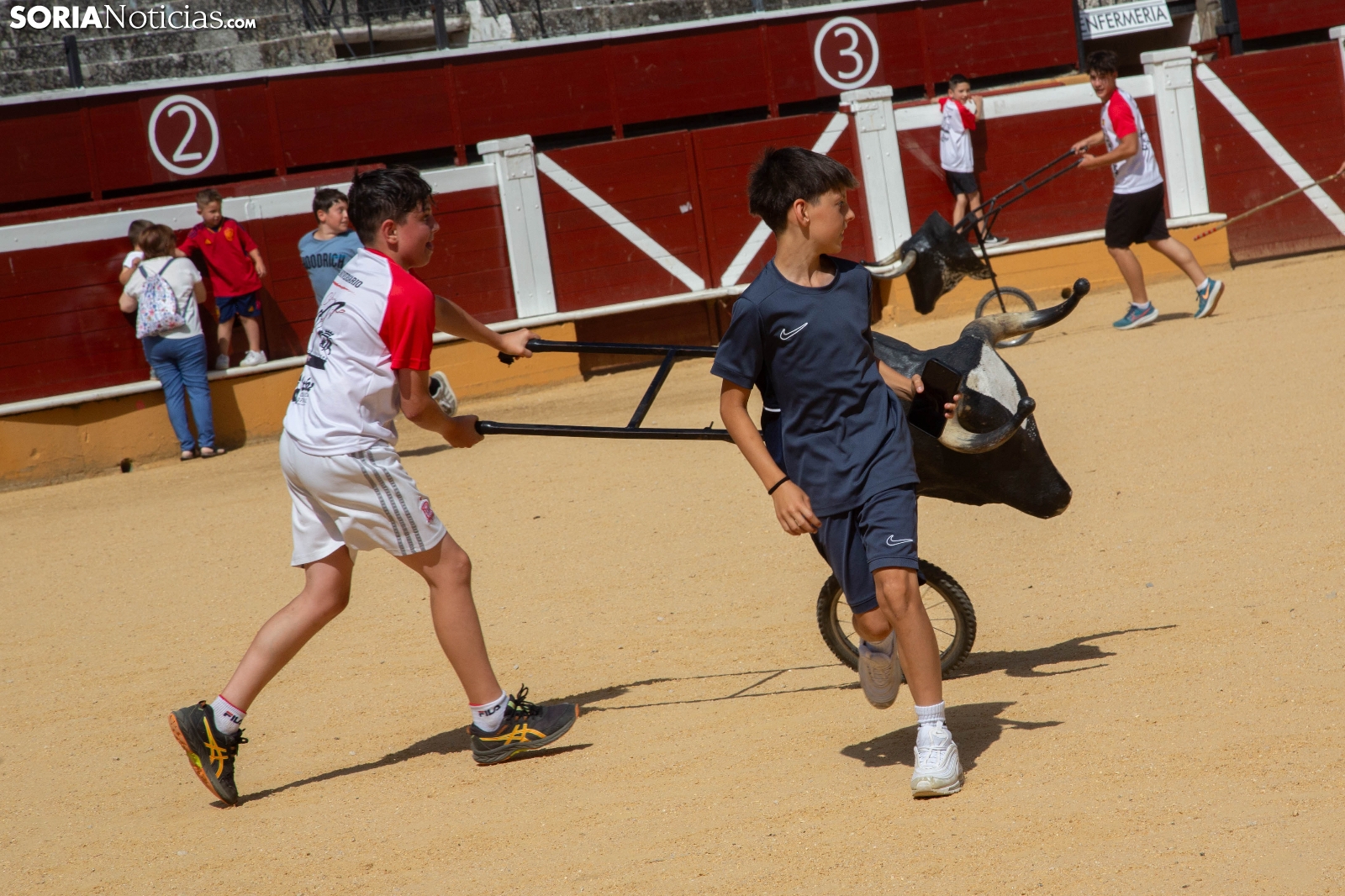 La plaza de toros de Soria se ha transformado esta mañana del sábado, 21 de junio, en un escenario de pura ilusión y aprendizaje para los más jóvenes aficionados con la celebración de los tradicionales Carretones y el encierro infantil. Los niños y niñas han sido los grandes protagonistas de la jornada, llenando el coso de risas y emoción mientras participaban activamente, unos esquivando con destreza las divertidas embestidas de los carretones. El ambiente familiar y festivo ha sido la tónica dominante, permitiendo a los pequeños vivir de cerca estas tradiciones y fomentando la cantera taurina y el amor por las costumbres sorianas desde temprana edad, en una mañana que seguro guardarán en su recuerdo.