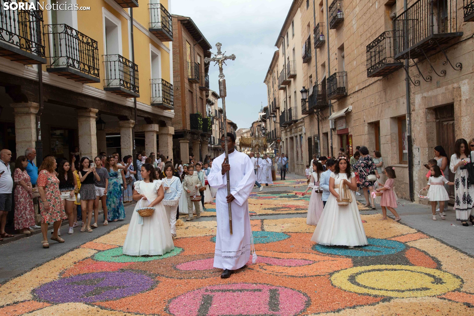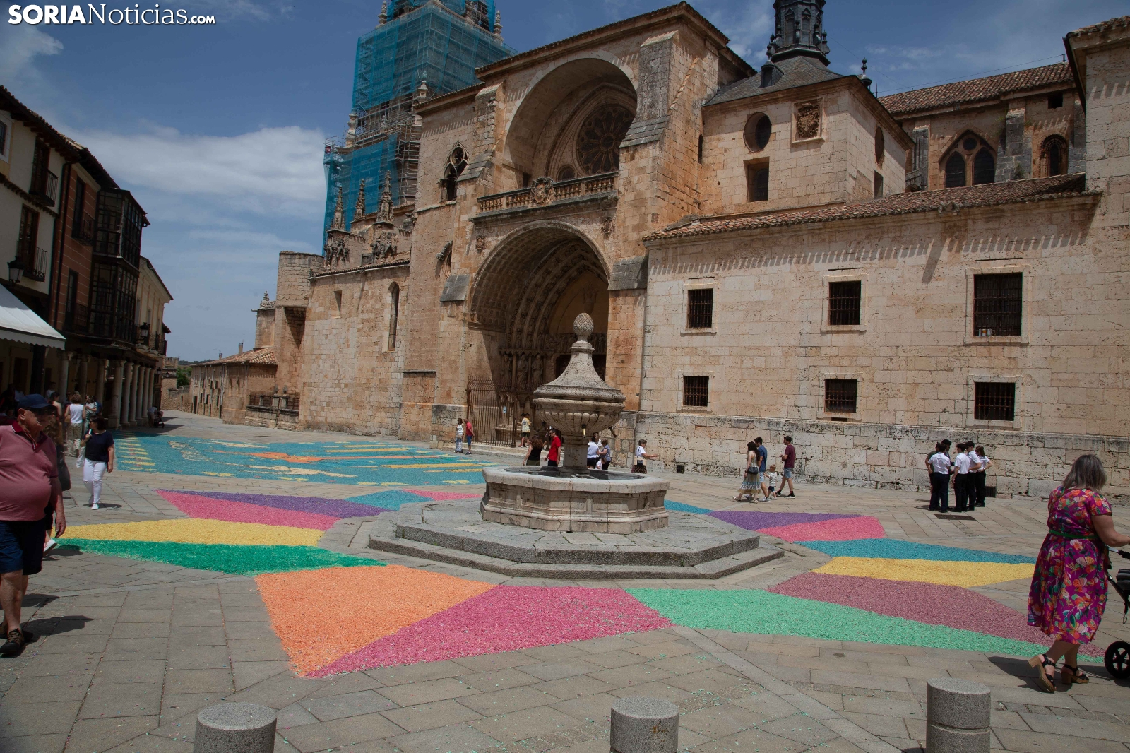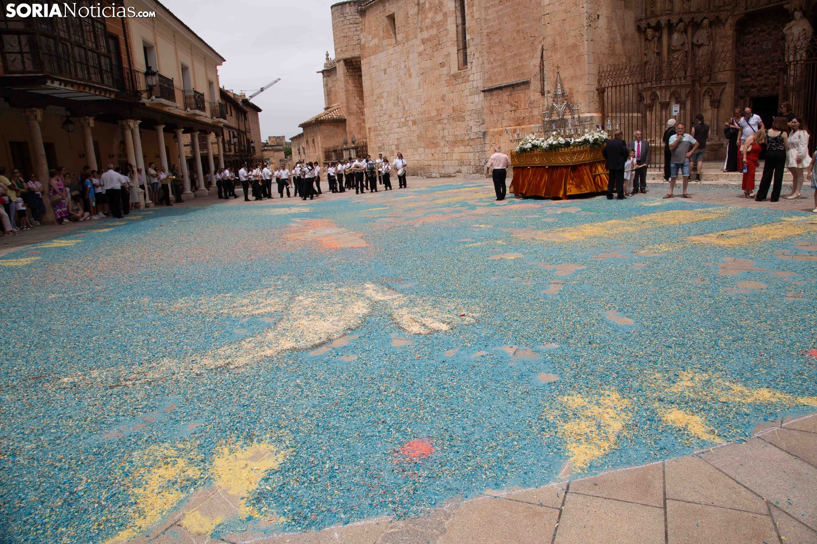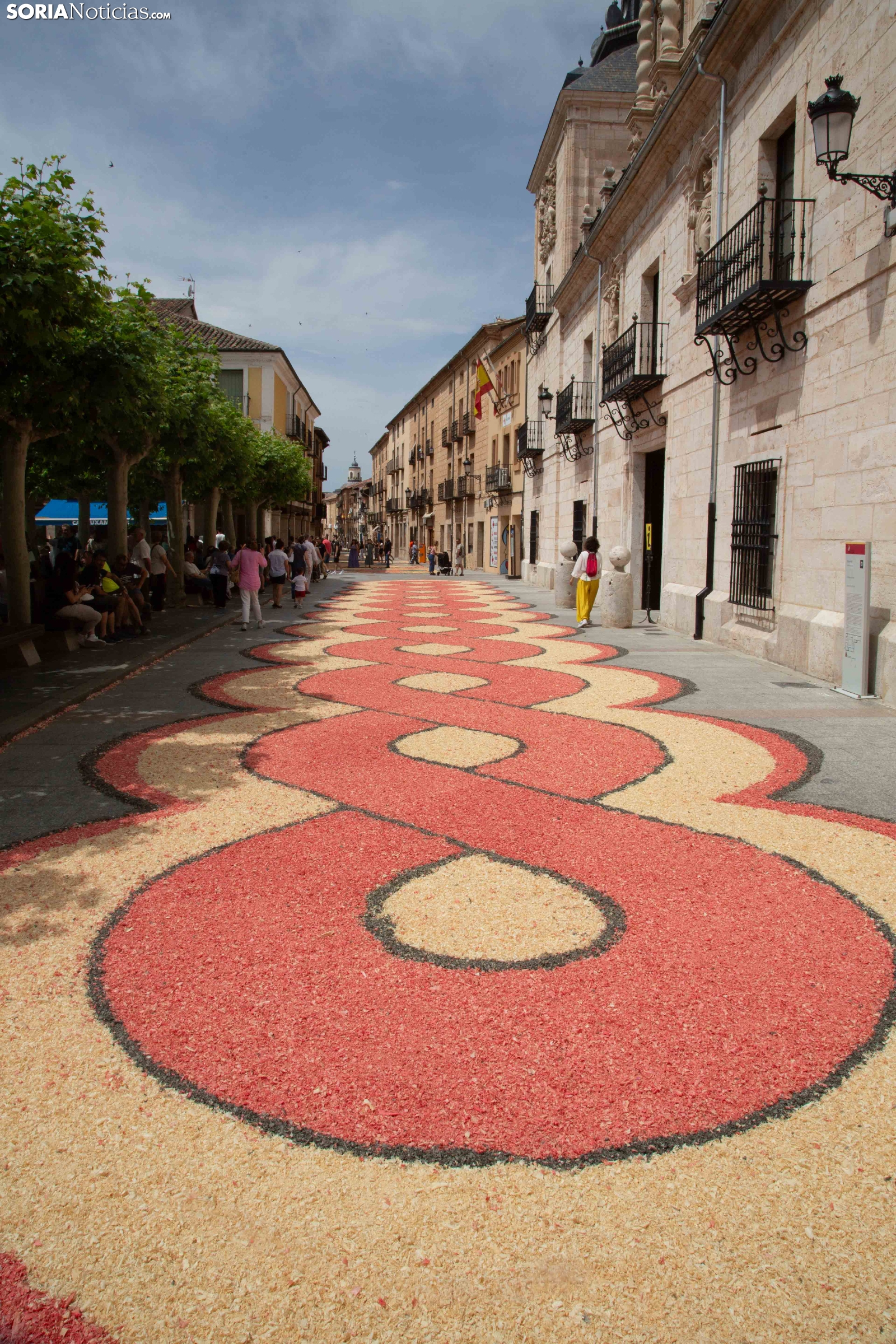 El Burgo de Osma ha revivido este domingo, 22 de junio, con especial intensidad y colorido, la solemnidad y la belleza de la festividad del Corpus Christi, una celebración que cada año transforma sus históricas calles en un auténtico escenario de fe, arte efímero y profunda tradición. Vecinos y numerosos visitantes han sido testigos privilegiados de una jornada donde el vibrante color de las alfombras florales, la majestuosidad de los altares cuidadosamente preparados y la devoción palpable de los participantes se han erigido como los grandes protagonistas. Esta galería de imágenes que acompaña estas líneas pretende ser un fiel reflejo de los momentos más emotivos y visualmente impactantes de una celebración que sigue latiendo con una fuerza arrolladora en el corazón de la villa episcopal, mostrando el esmero, la dedicación y el fervor popular con el que se vive y se prepara cada detalle de esta arraigada costumbre. Desde la solemne procesión, con la custodia como epicentro, hasta los minuciosos adornos que engalanan cada rincón del recorrido, cada fotografía busca capturar la esencia única e irrepetible de un día marcado en rojo en el calendario burgense.