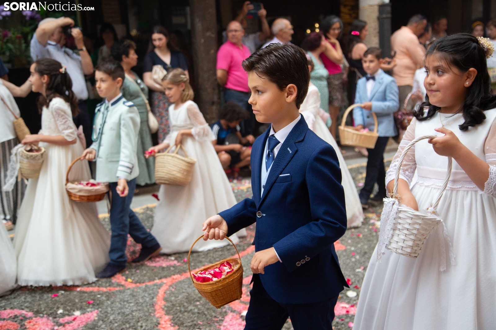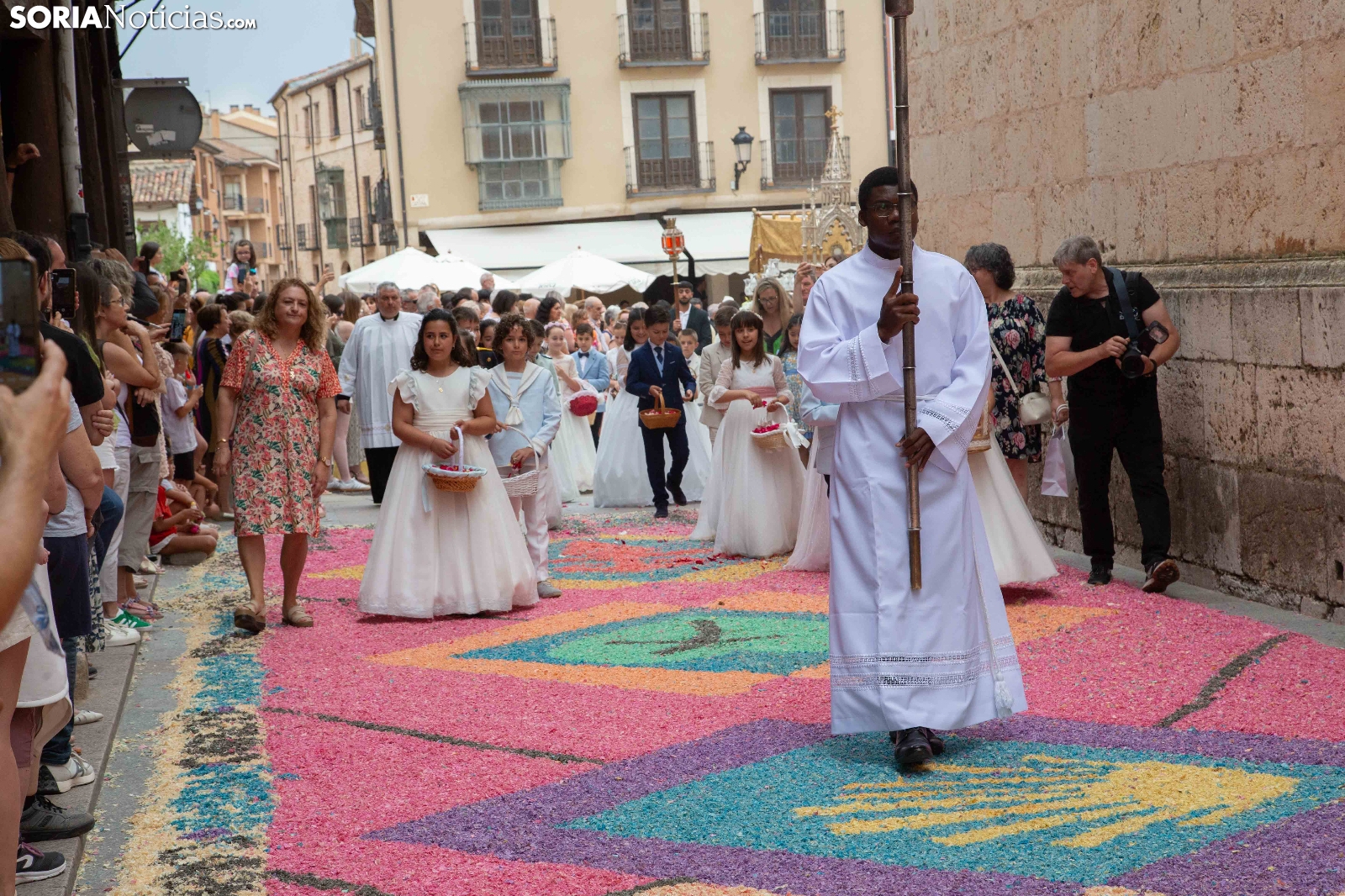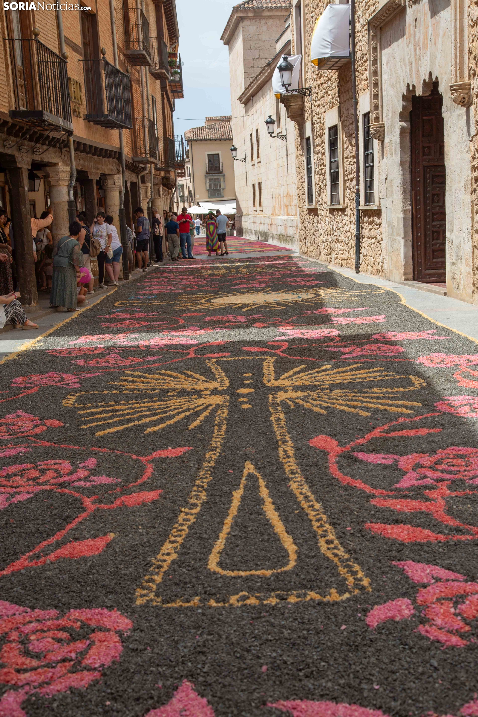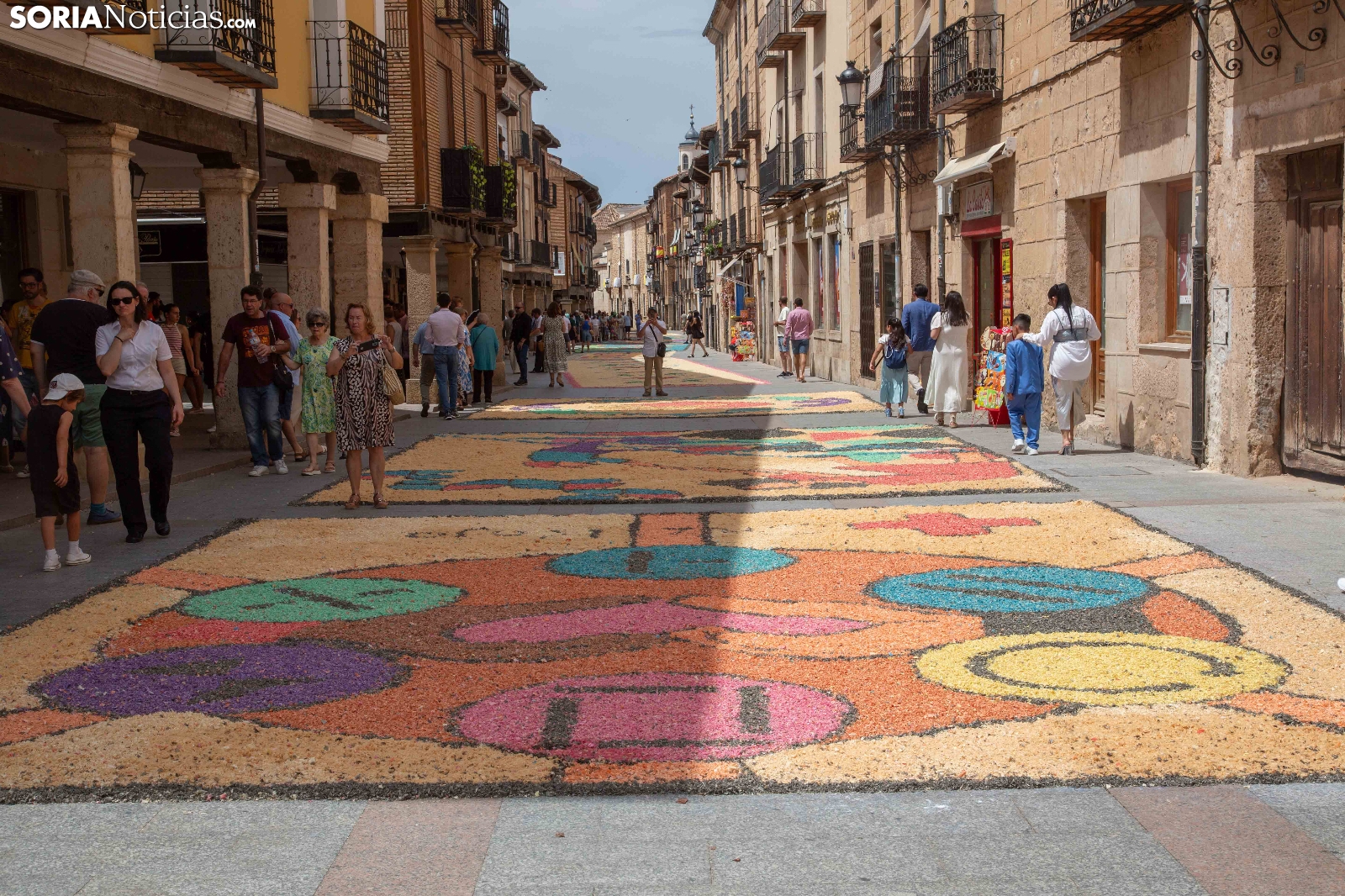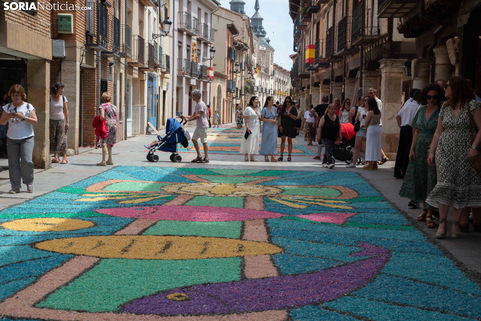 El Burgo de Osma ha revivido este domingo, 22 de junio, con especial intensidad y colorido, la solemnidad y la belleza de la festividad del Corpus Christi, una celebración que cada año transforma sus históricas calles en un auténtico escenario de fe, arte efímero y profunda tradición. Vecinos y numerosos visitantes han sido testigos privilegiados de una jornada donde el vibrante color de las alfombras florales, la majestuosidad de los altares cuidadosamente preparados y la devoción palpable de los participantes se han erigido como los grandes protagonistas. Esta galería de imágenes que acompaña estas líneas pretende ser un fiel reflejo de los momentos más emotivos y visualmente impactantes de una celebración que sigue latiendo con una fuerza arrolladora en el corazón de la villa episcopal, mostrando el esmero, la dedicación y el fervor popular con el que se vive y se prepara cada detalle de esta arraigada costumbre. Desde la solemne procesión, con la custodia como epicentro, hasta los minuciosos adornos que engalanan cada rincón del recorrido, cada fotografía busca capturar la esencia única e irrepetible de un día marcado en rojo en el calendario burgense.