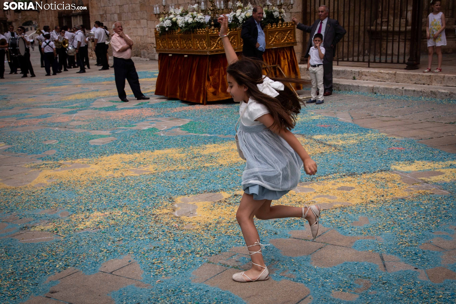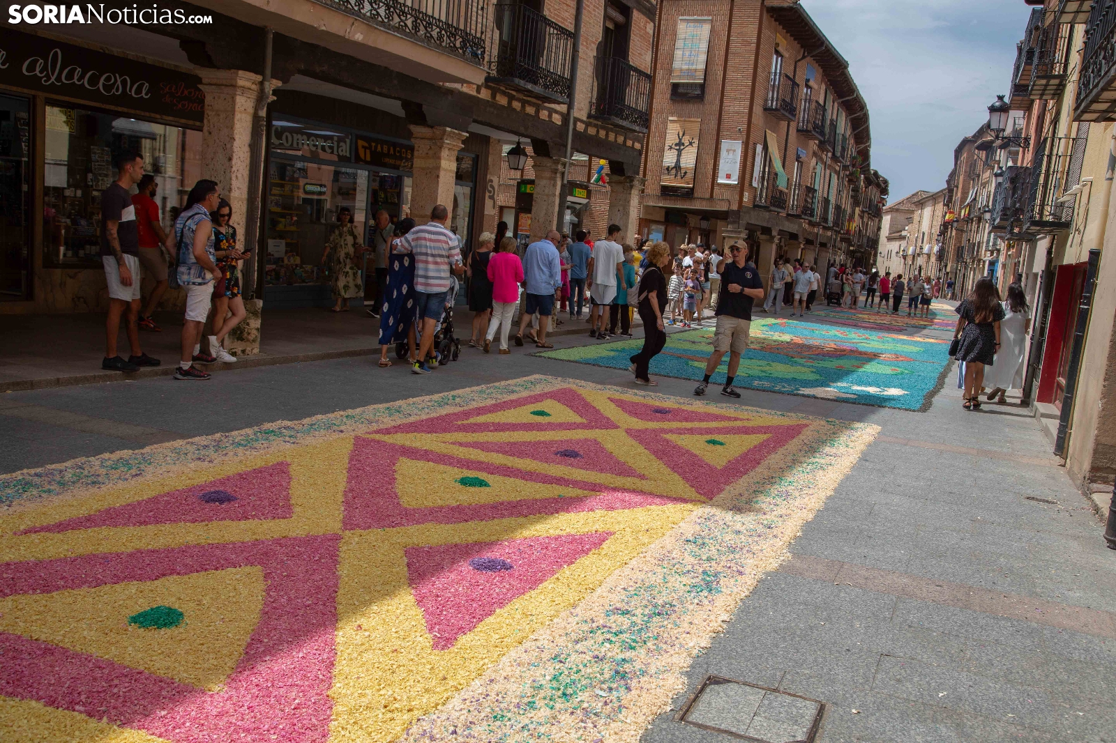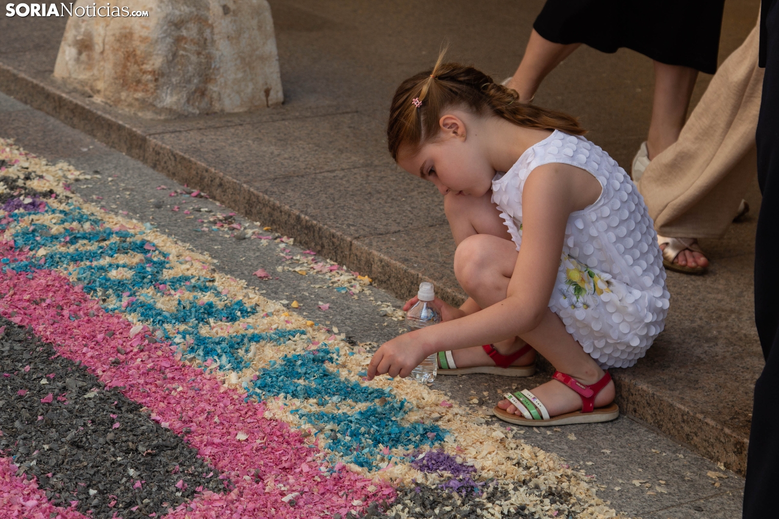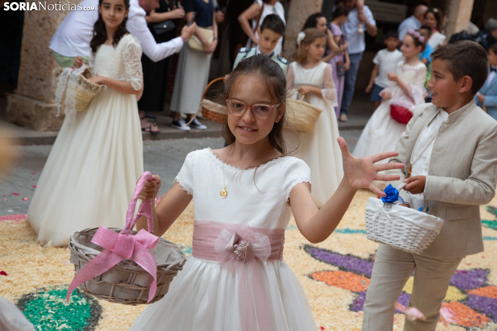 El Burgo de Osma ha revivido este domingo, 22 de junio, con especial intensidad y colorido, la solemnidad y la belleza de la festividad del Corpus Christi, una celebración que cada año transforma sus históricas calles en un auténtico escenario de fe, arte efímero y profunda tradición. Vecinos y numerosos visitantes han sido testigos privilegiados de una jornada donde el vibrante color de las alfombras florales, la majestuosidad de los altares cuidadosamente preparados y la devoción palpable de los participantes se han erigido como los grandes protagonistas. Esta galería de imágenes que acompaña estas líneas pretende ser un fiel reflejo de los momentos más emotivos y visualmente impactantes de una celebración que sigue latiendo con una fuerza arrolladora en el corazón de la villa episcopal, mostrando el esmero, la dedicación y el fervor popular con el que se vive y se prepara cada detalle de esta arraigada costumbre. Desde la solemne procesión, con la custodia como epicentro, hasta los minuciosos adornos que engalanan cada rincón del recorrido, cada fotografía busca capturar la esencia única e irrepetible de un día marcado en rojo en el calendario burgense.