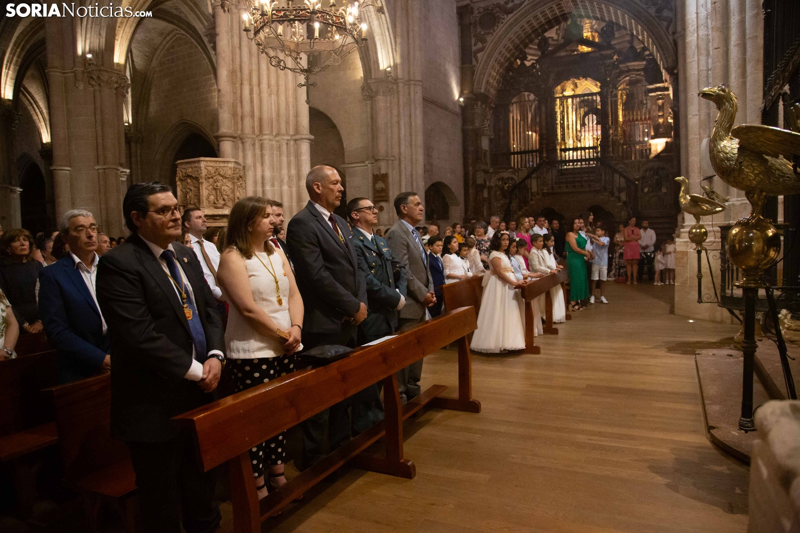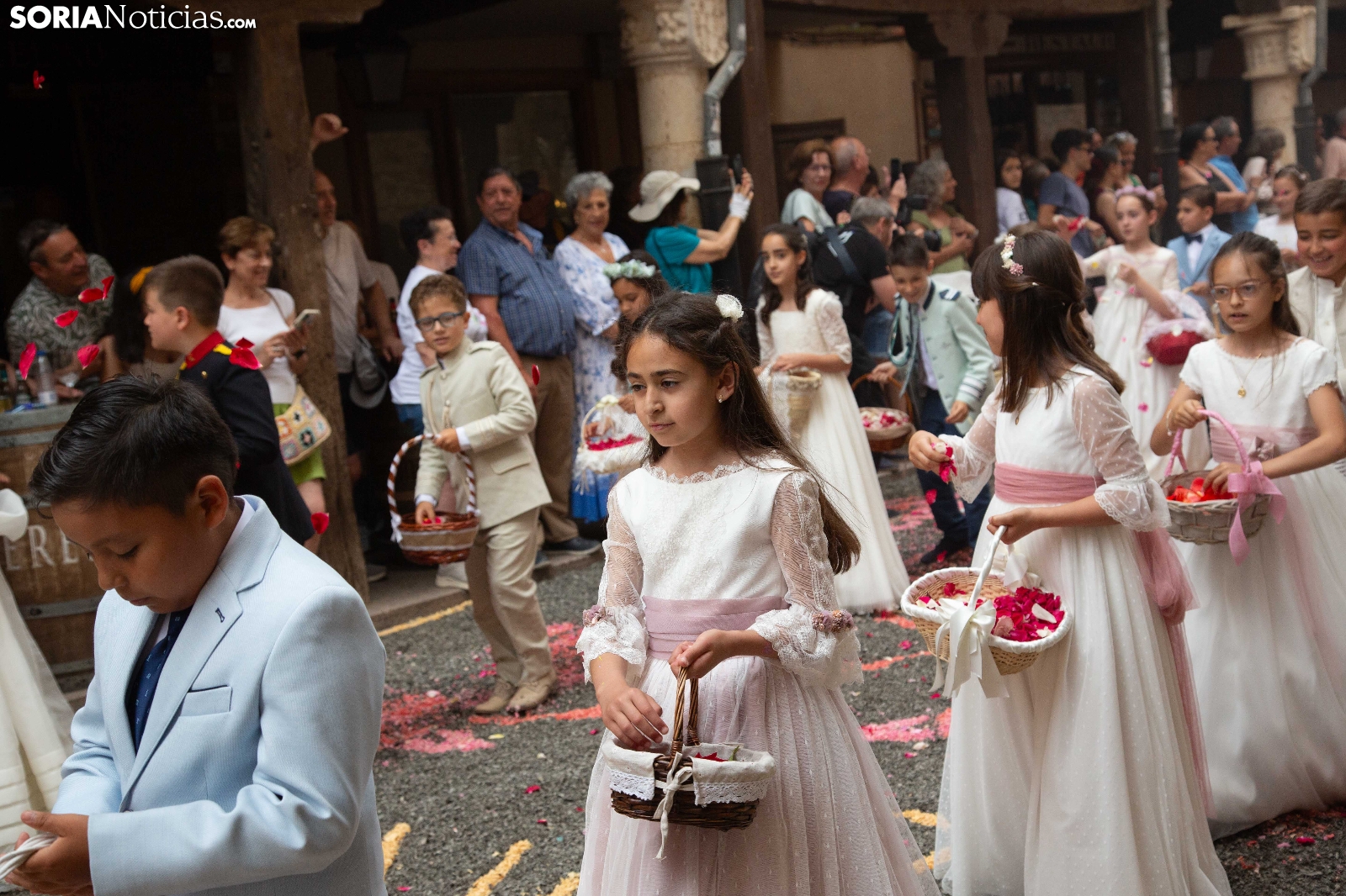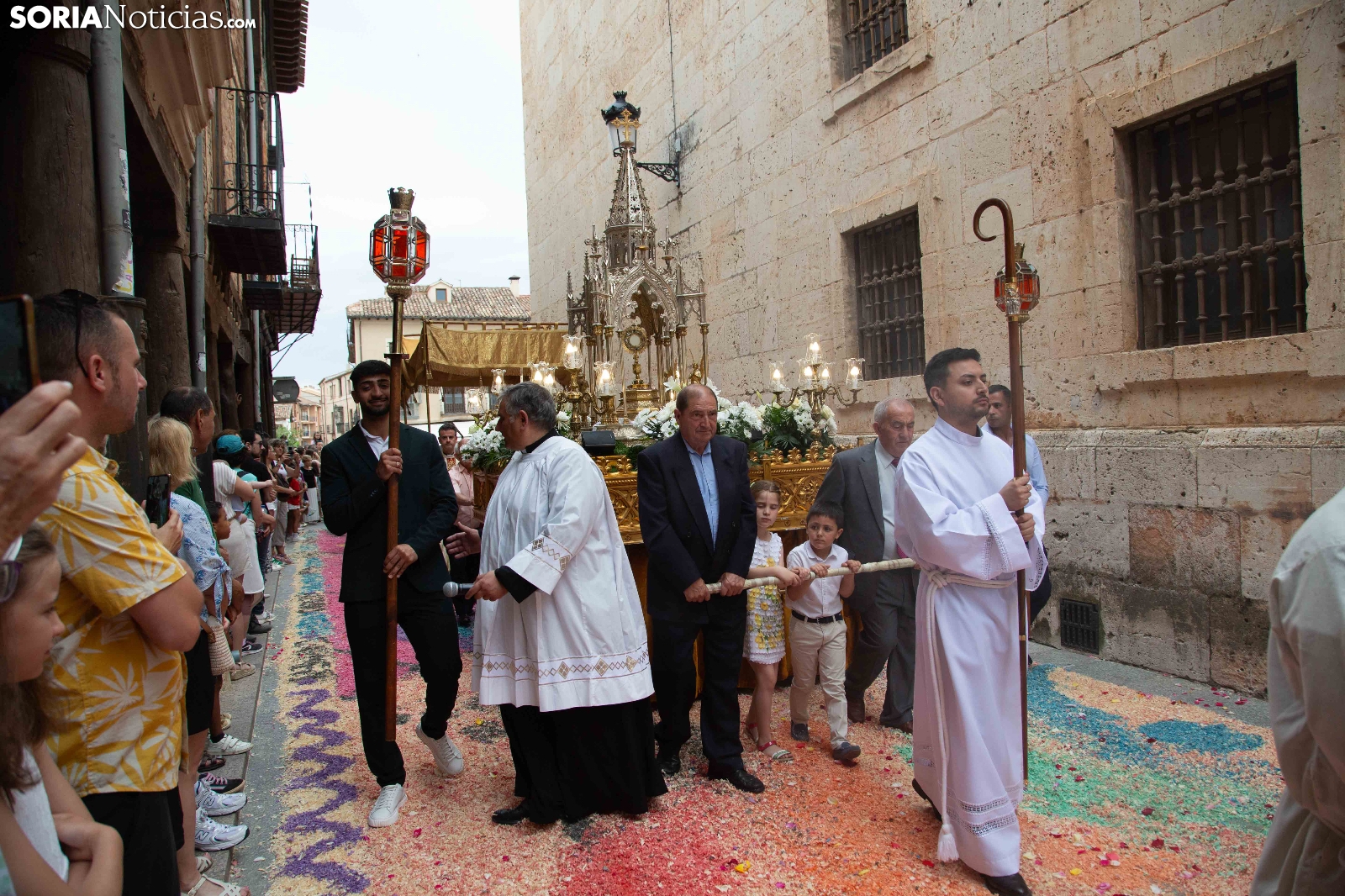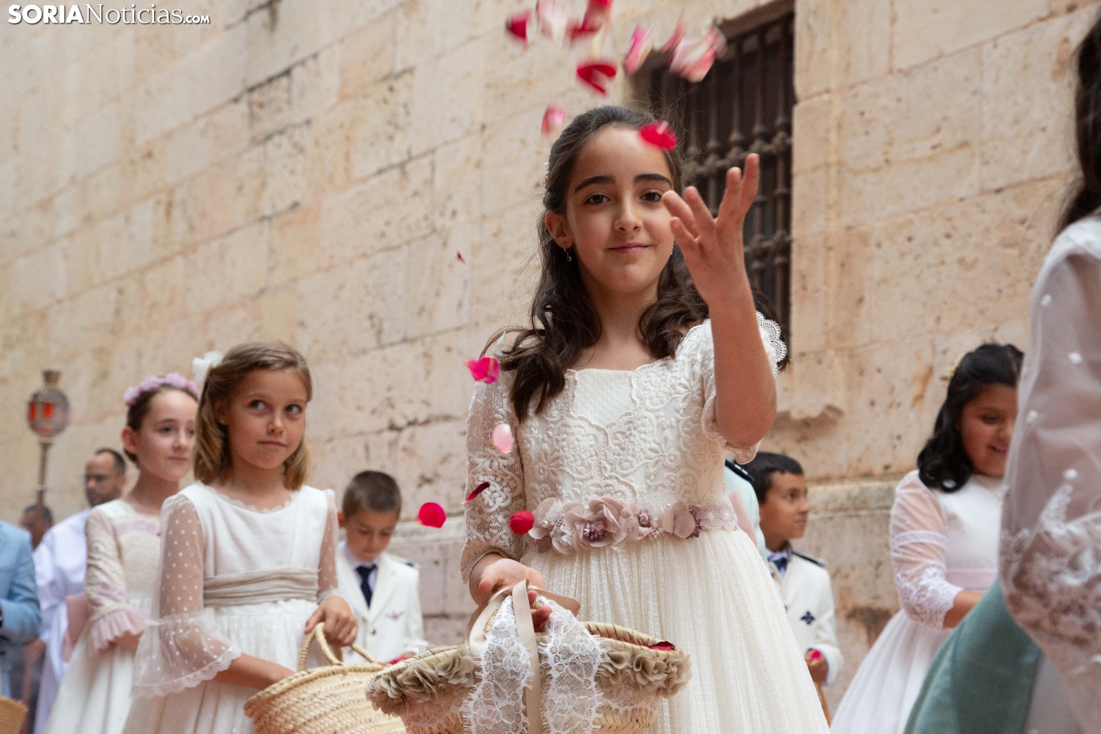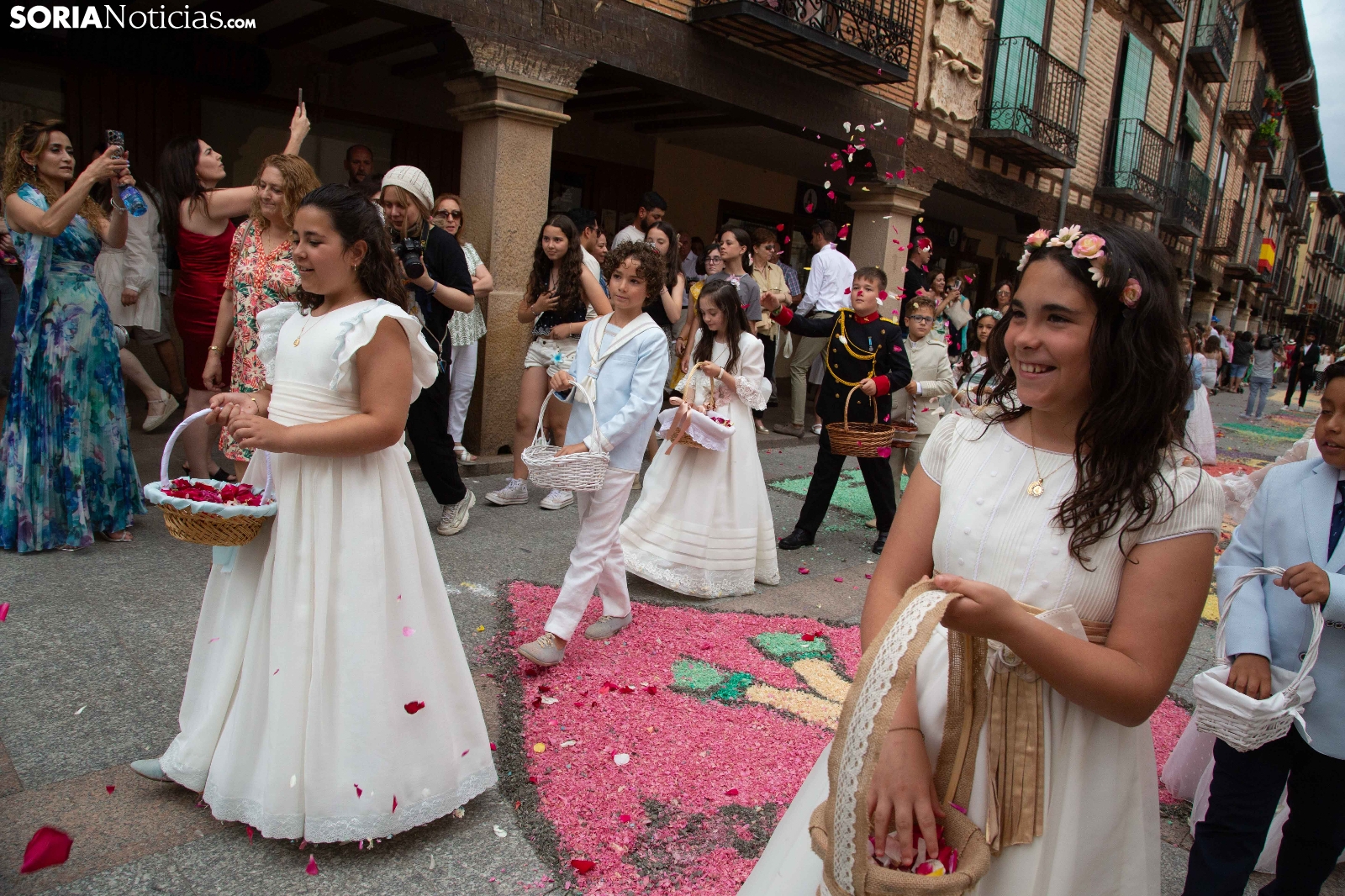 El Burgo de Osma ha revivido este domingo, 22 de junio, con especial intensidad y colorido, la solemnidad y la belleza de la festividad del Corpus Christi, una celebración que cada año transforma sus históricas calles en un auténtico escenario de fe, arte efímero y profunda tradición. Vecinos y numerosos visitantes han sido testigos privilegiados de una jornada donde el vibrante color de las alfombras florales, la majestuosidad de los altares cuidadosamente preparados y la devoción palpable de los participantes se han erigido como los grandes protagonistas. Esta galería de imágenes que acompaña estas líneas pretende ser un fiel reflejo de los momentos más emotivos y visualmente impactantes de una celebración que sigue latiendo con una fuerza arrolladora en el corazón de la villa episcopal, mostrando el esmero, la dedicación y el fervor popular con el que se vive y se prepara cada detalle de esta arraigada costumbre. Desde la solemne procesión, con la custodia como epicentro, hasta los minuciosos adornos que engalanan cada rincón del recorrido, cada fotografía busca capturar la esencia única e irrepetible de un día marcado en rojo en el calendario burgense.