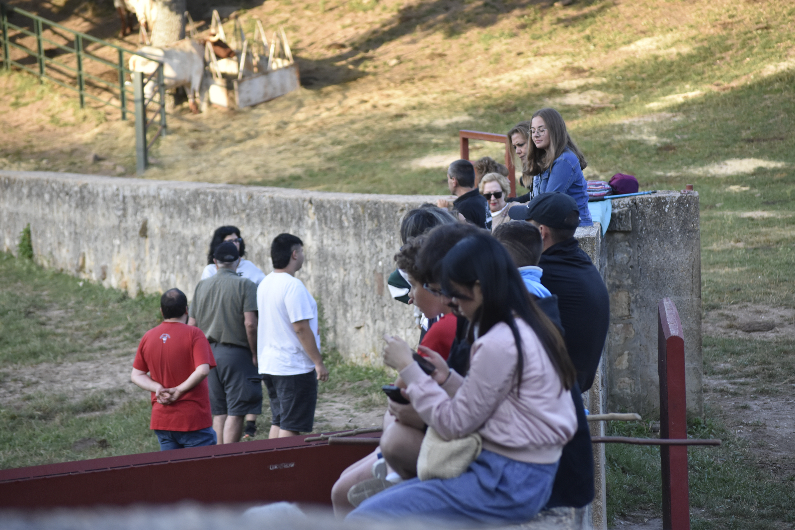 Apenas pasaban siete minutos de las ocho de la mañana cuando, en solo doce minutos, once de los doce erales han sido conducidos con éxito a los corrales. El último novillo, sin embargo, se ha quedado rezagado al darse la vuelta a mitad de camino. Un segundo intento junto a los mansos tampoco ha tenido éxito, a la altura del embudo ha vuelto a retroceder, por lo que se ha optado por su traslado en camión.