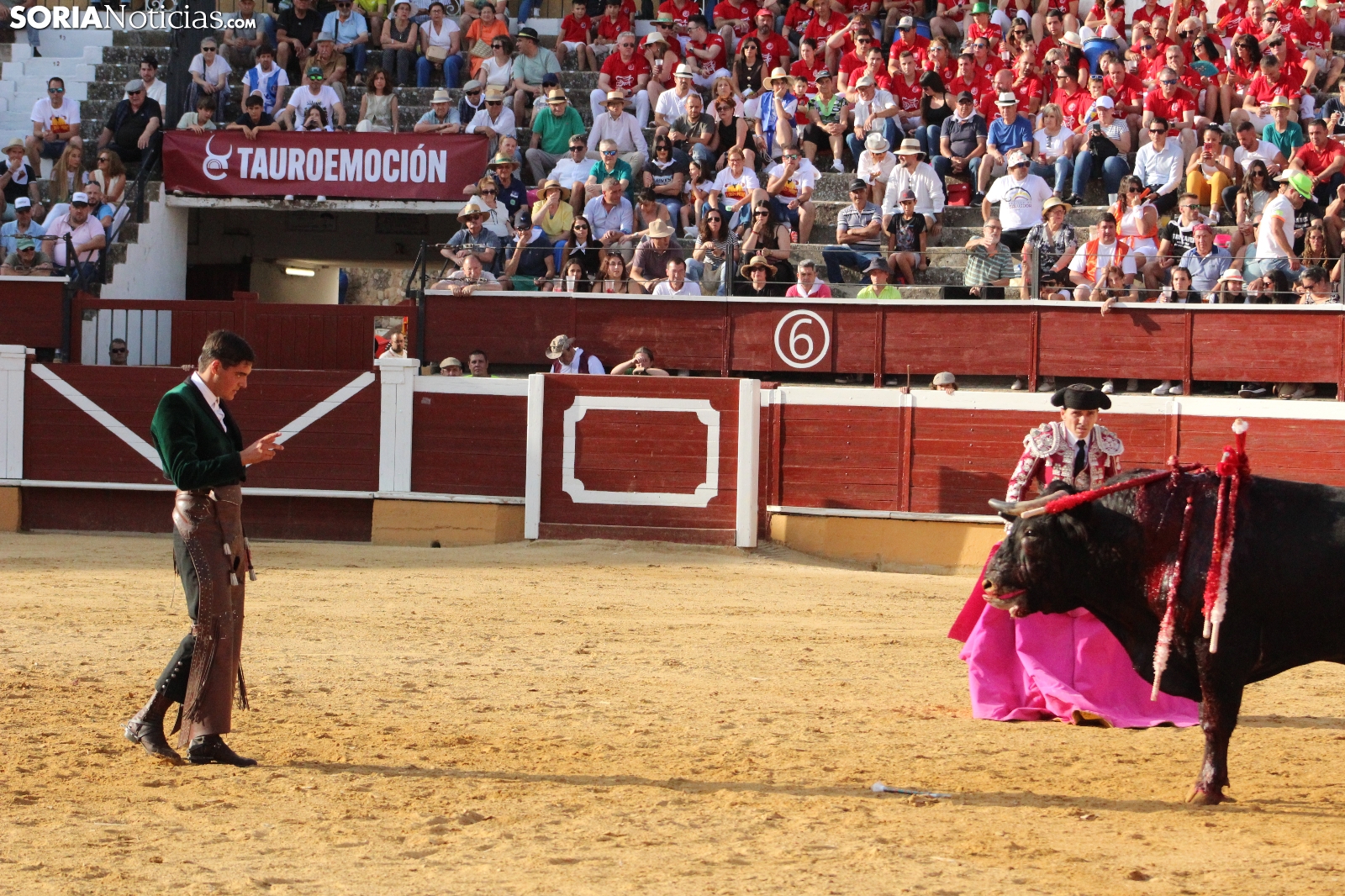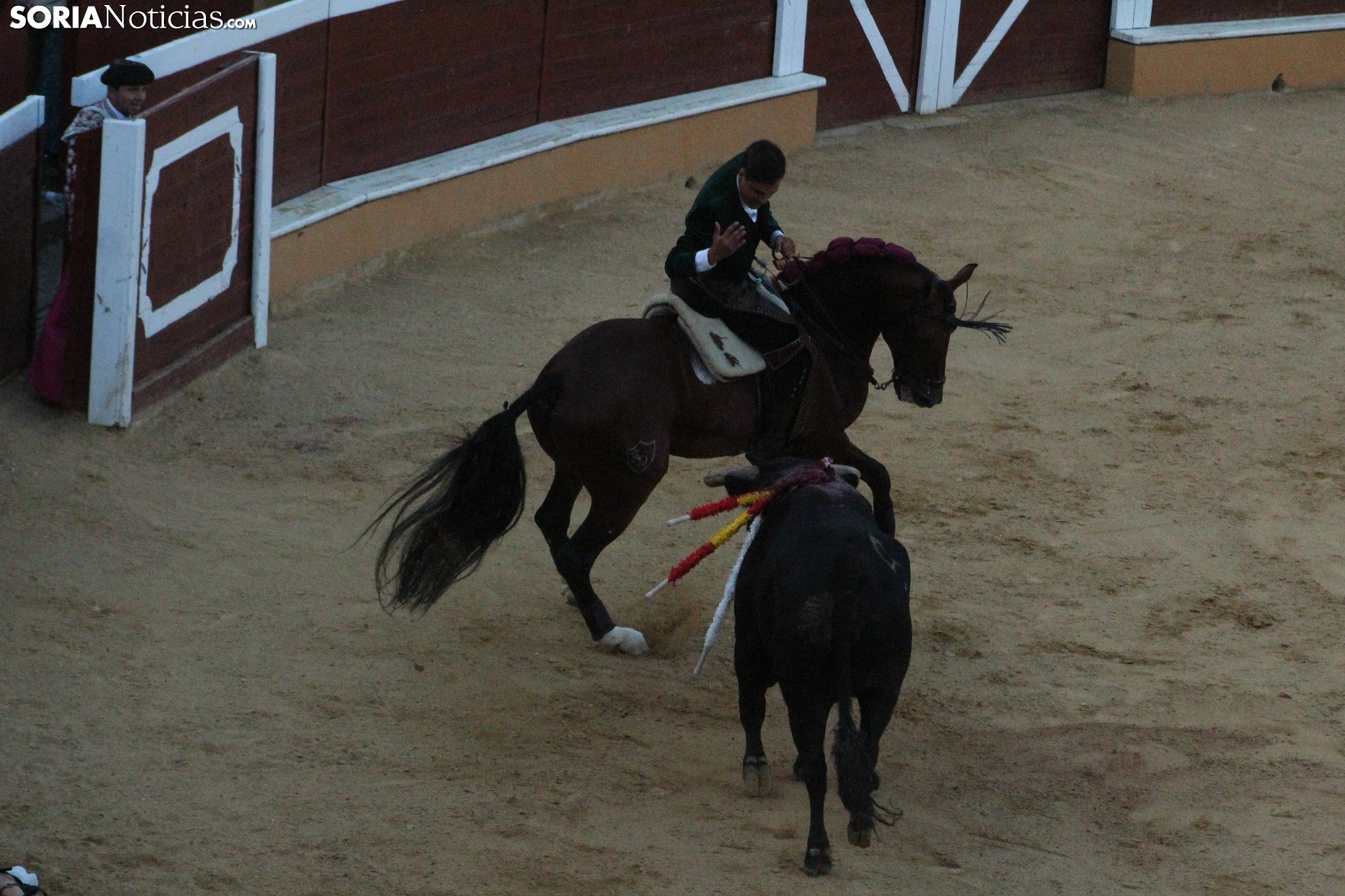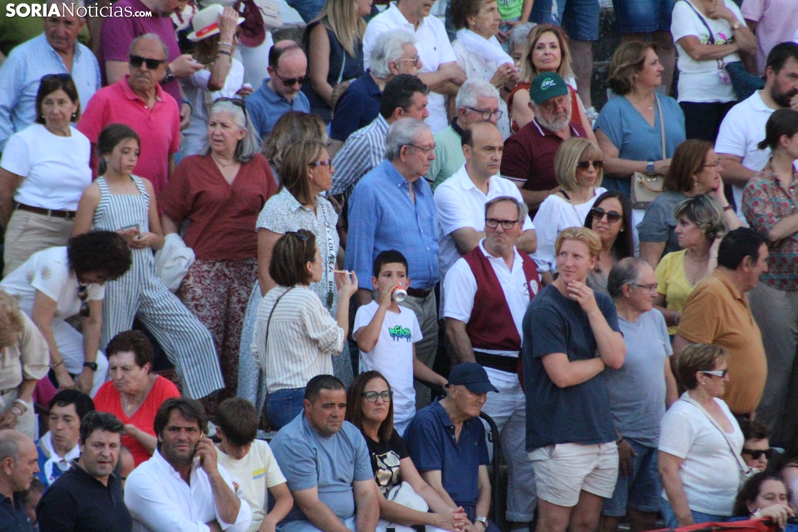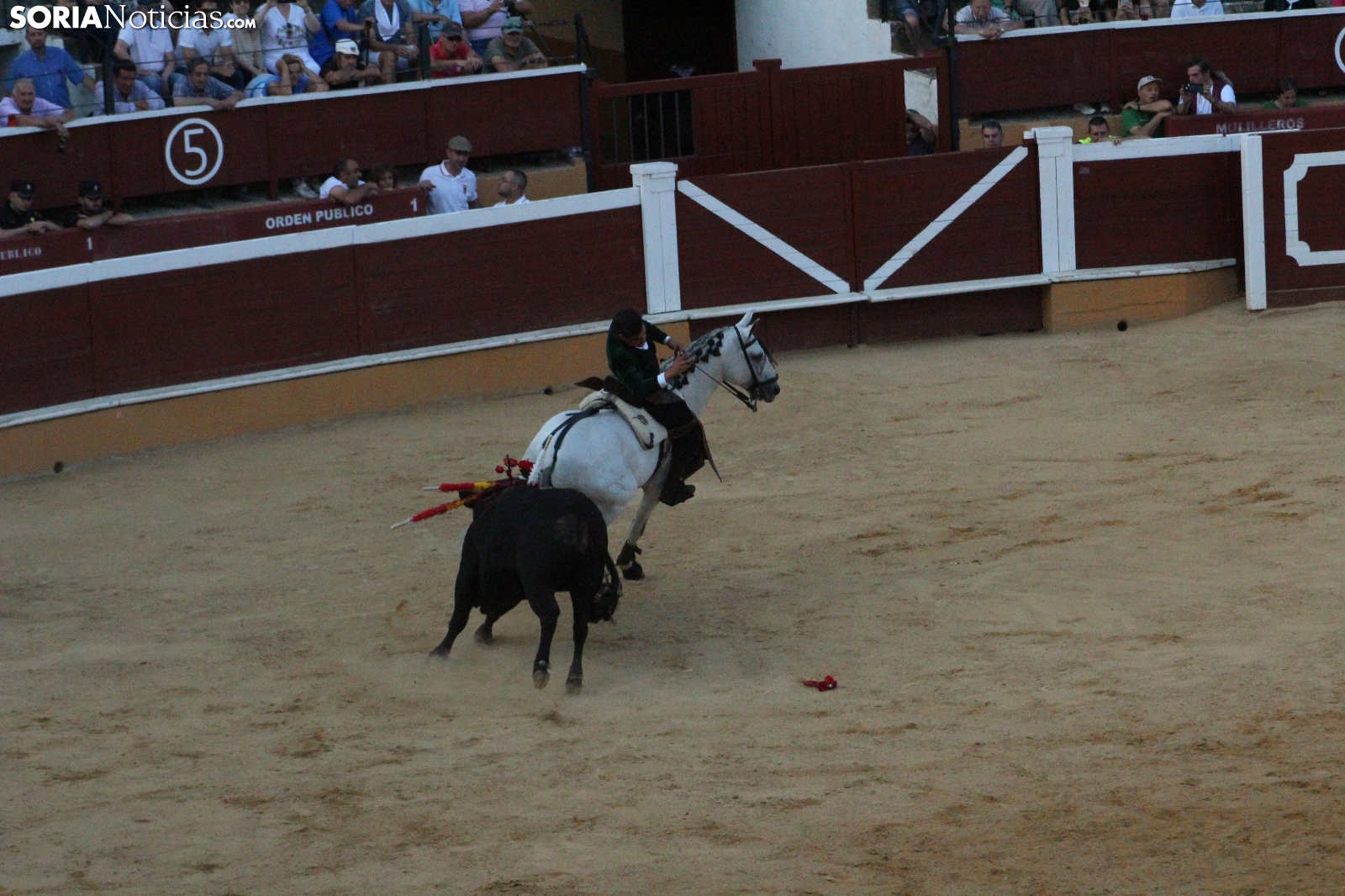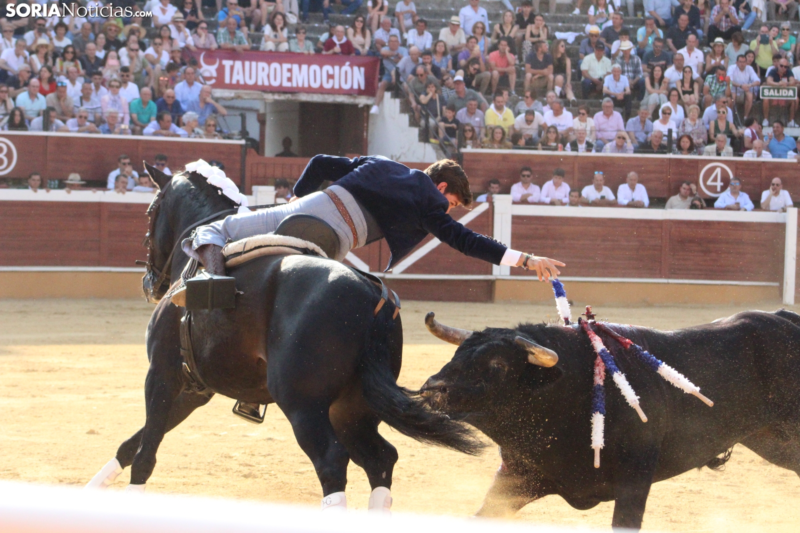La calurosa tarde de este Miércoles el Pregón acogía el primero de los festejos de abono de la feria taurina de San Juan. Como es habitual, los rejones protagonizaban la primera de las tardes en San Benito, honrando la cultura soriana que hermana en un eterno litigio al caballo y al toro. Sobre las monturas, Leonardo, Guillermo Hermoso de Mendoza y Sergio Pérez de Gregorio, con sus diferentes personalidades, hacían las delicias del público, siempre amable con el toreo a caballo. La crónica, aquí.