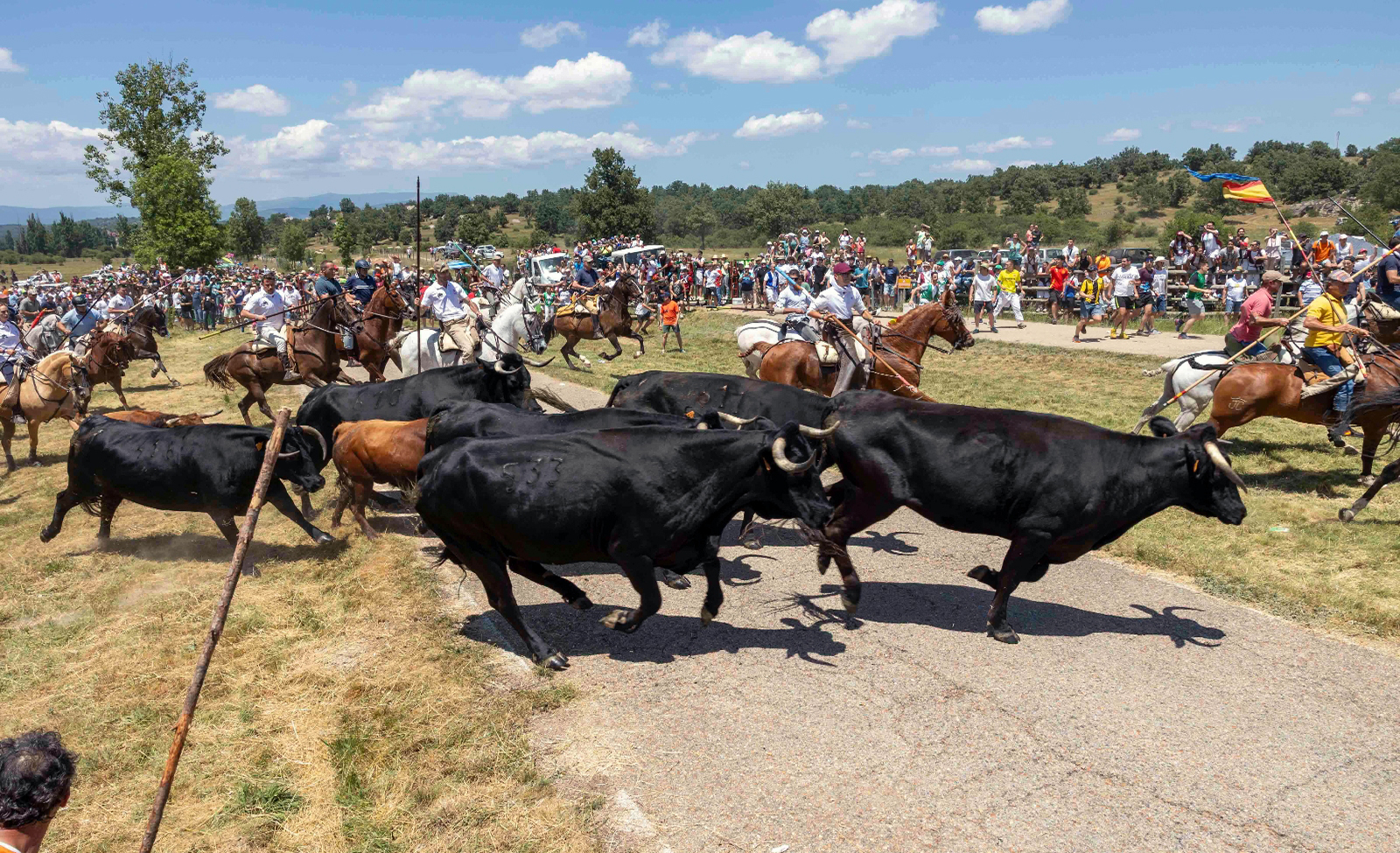 El paraje conocido como la Junta de los Ríos es el lugar donde efectivos del Servicio de Protección de la Naturaleza (Seprona) de la Guardia Civil están centrando sus esfuerzos para dar con el novillo que se desligaba de la manada ayer jueves La Saca, iniciando un camino contrario al resto de sus hermanos y sin que pudiera ser reducido.