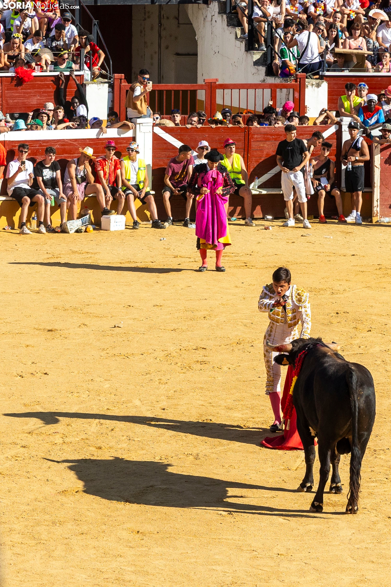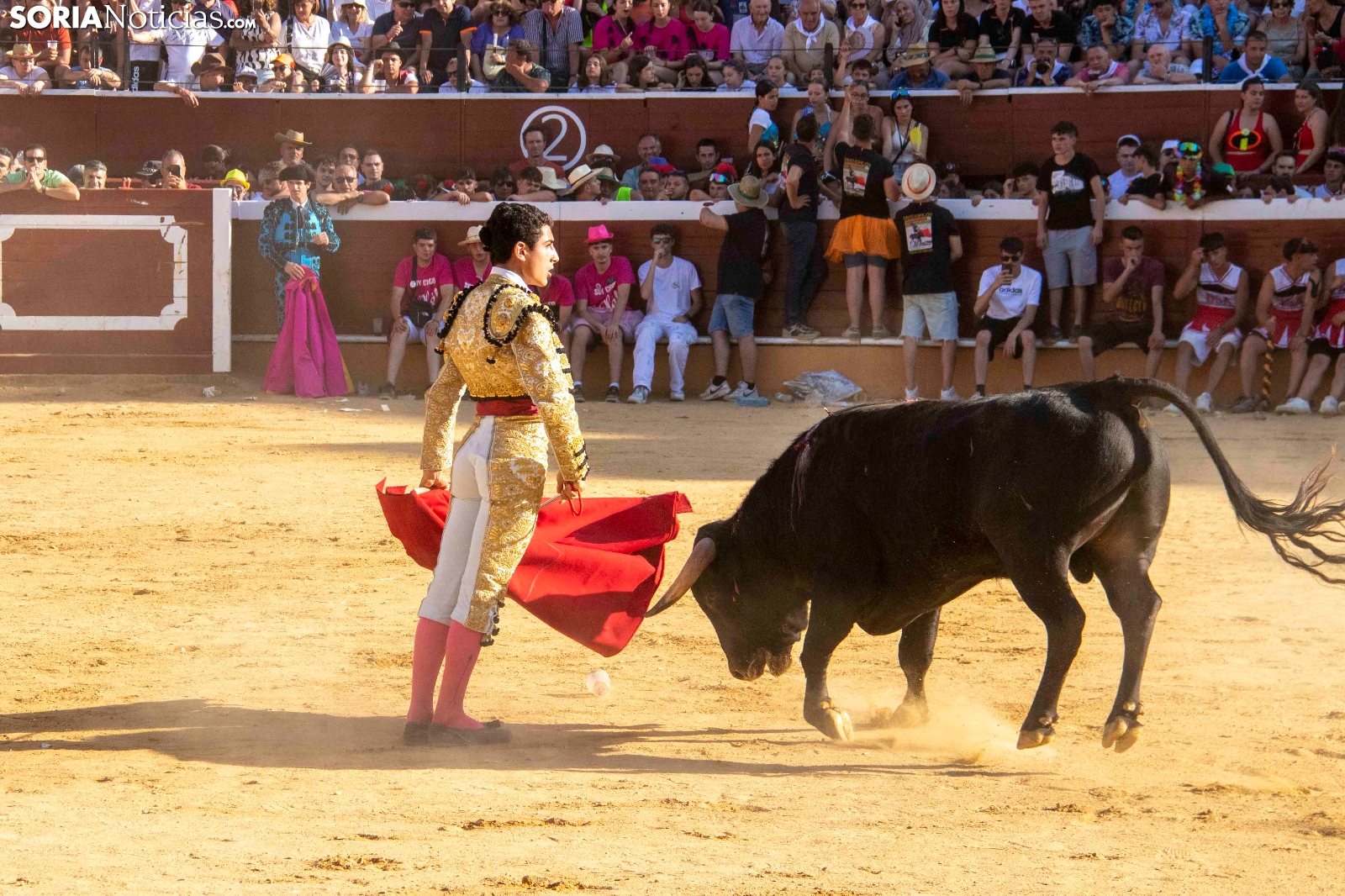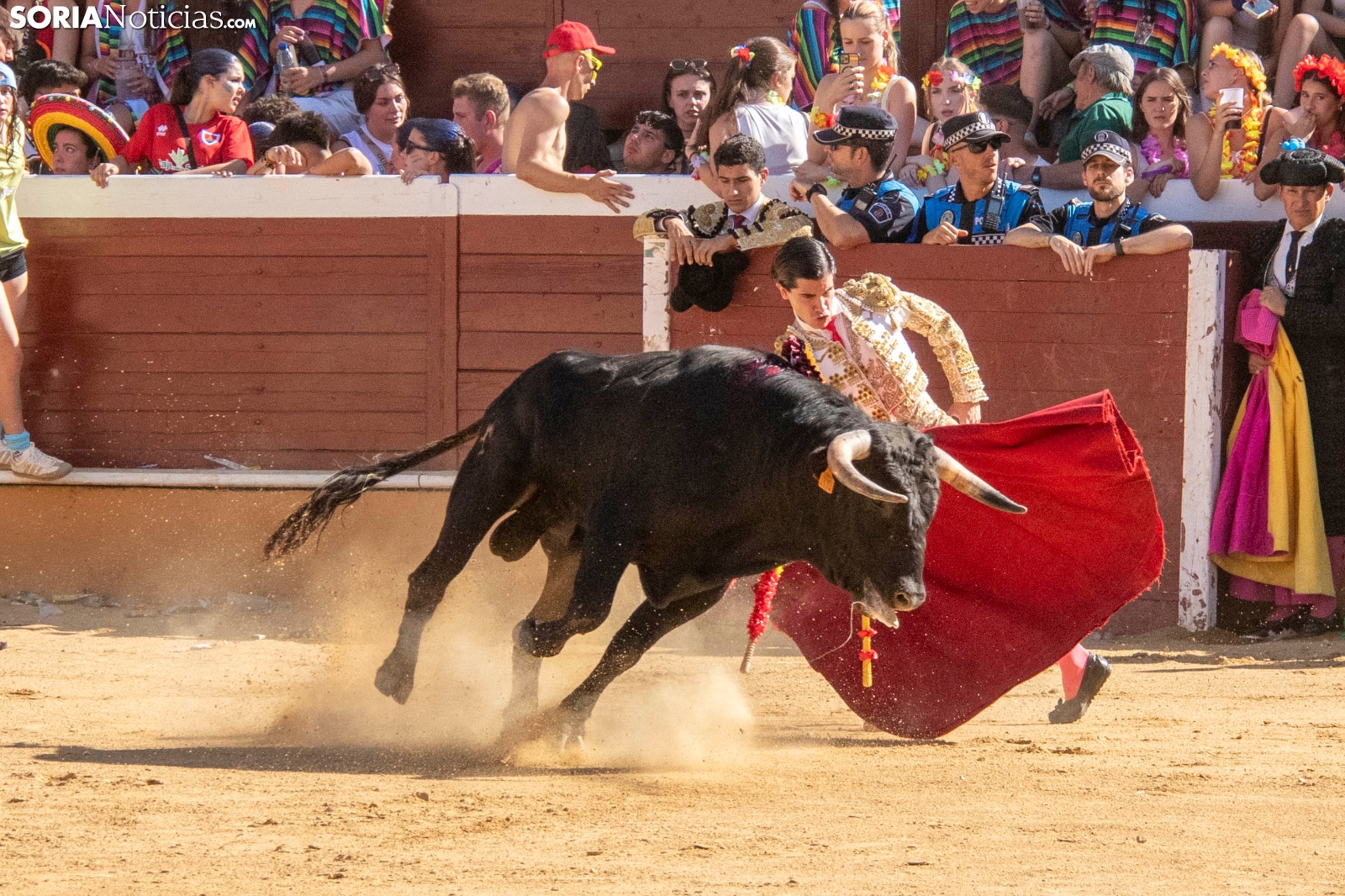 Manuel Luque 'El Exquisito', Cristian Restrepo y David Gutiérrez han compuesto el cartel de la segunda novillada del Viernes de Toros en Soria. Plaza llena hasta la bandera y fiesta en los tendidos. Los novilleros han estado voluntariosos. Luque, mostraba su arte ante sus dos enemigos, con más suerte en el astado que abría plaza. El segundo de la terna, el colombiano Restrepo mostraba su voluntad aunque quizá su juventud le negaba el triunfo en la n suprema, sobre todo en su primero. Por último, Gutiérrez cuajaba una memorable faena en el novillo que cerraba plaza, el mejor del encierro al que ha sabido encontrar el terreno con buen hacer y maneras descerrajando la puerta grande. En los tendidos, en los estribos de la barrera y en el callejón, la fiesta ha mantenido los cánones de este día sanjuanero, caluroso y taurino como pocos.