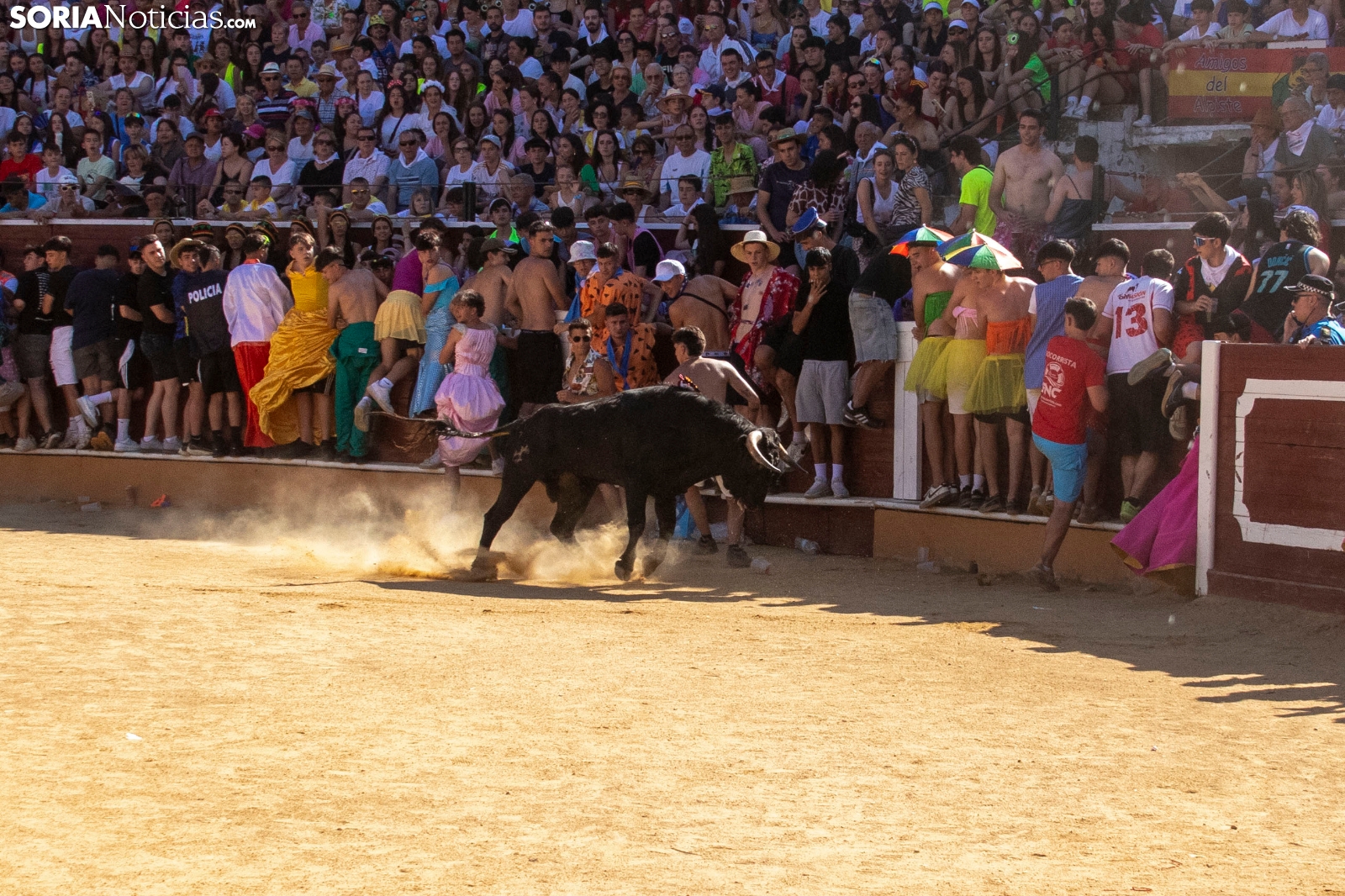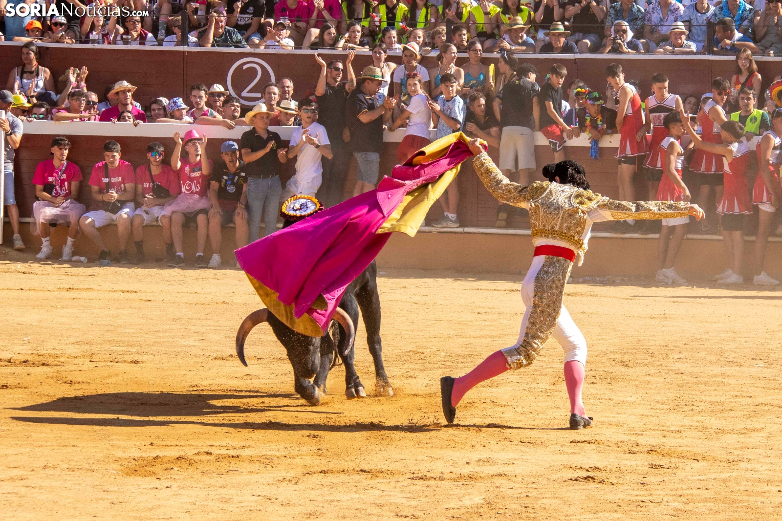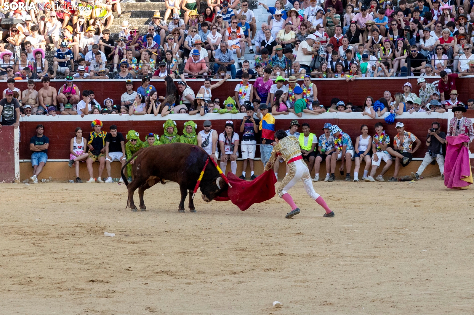 Manuel Luque 'El Exquisito', Cristian Restrepo y David Gutiérrez han compuesto el cartel de la segunda novillada del Viernes de Toros en Soria. Plaza llena hasta la bandera y fiesta en los tendidos. Los novilleros han estado voluntariosos. Luque, mostraba su arte ante sus dos enemigos, con más suerte en el astado que abría plaza. El segundo de la terna, el colombiano Restrepo mostraba su voluntad aunque quizá su juventud le negaba el triunfo en la n suprema, sobre todo en su primero. Por último, Gutiérrez cuajaba una memorable faena en el novillo que cerraba plaza, el mejor del encierro al que ha sabido encontrar el terreno con buen hacer y maneras descerrajando la puerta grande. En los tendidos, en los estribos de la barrera y en el callejón, la fiesta ha mantenido los cánones de este día sanjuanero, caluroso y taurino como pocos.