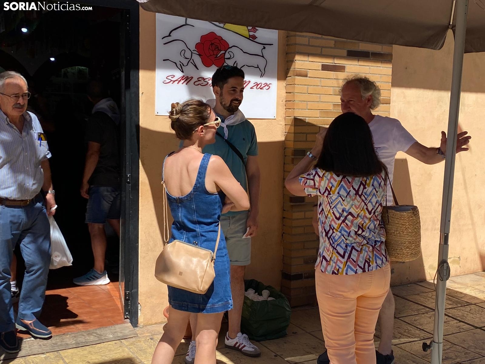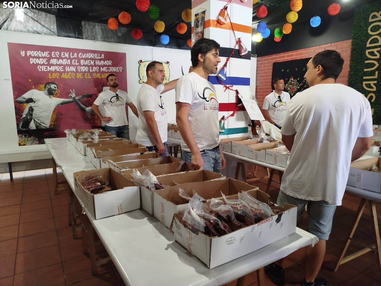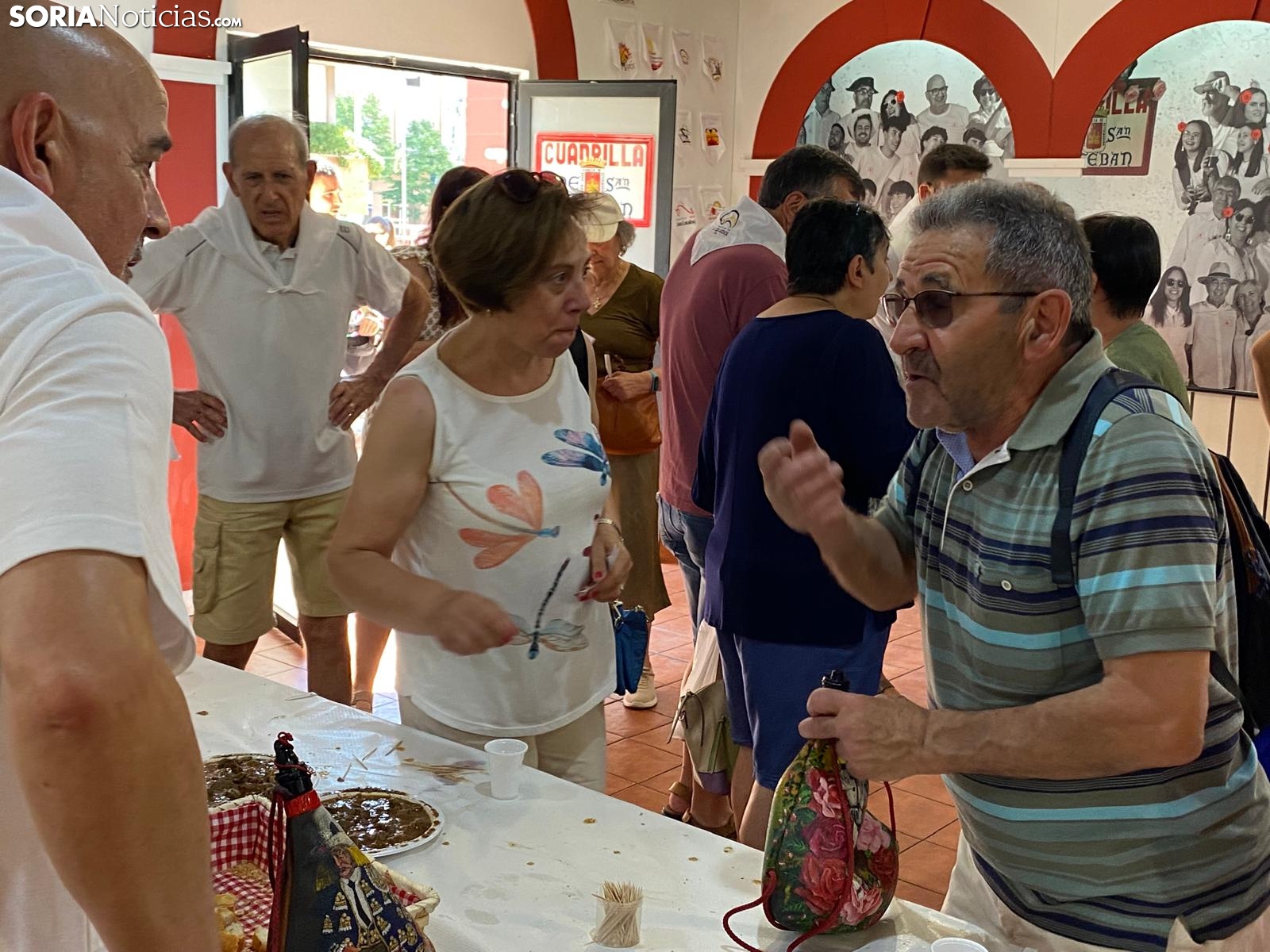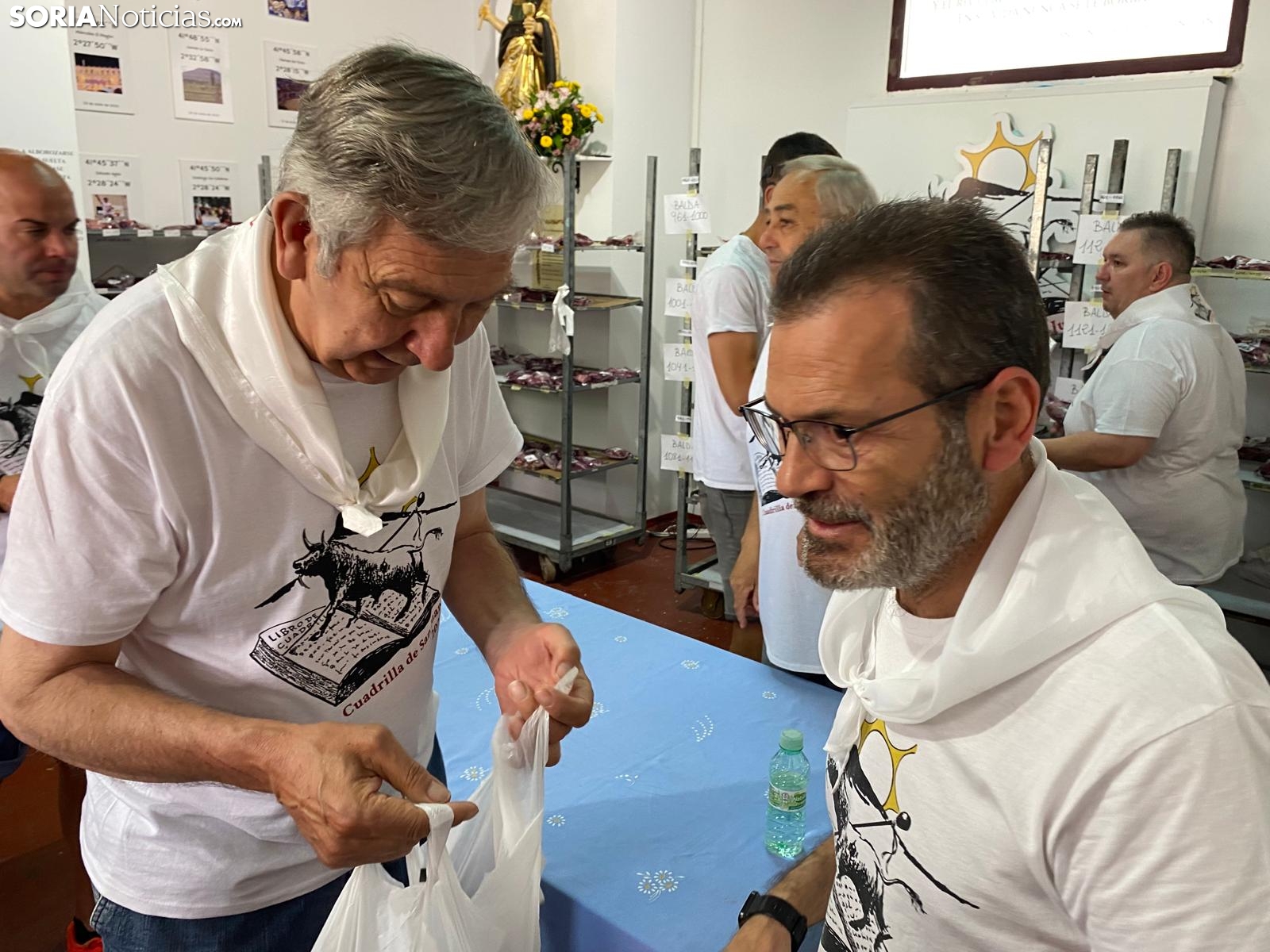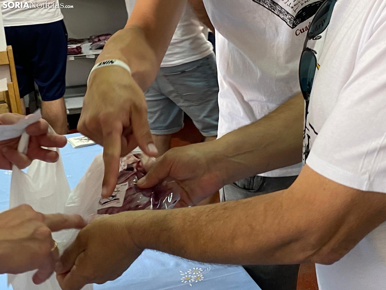 Un sinvivir esta mañana de Sábado agés en las cuadrillas. Miles de sorianos se han acercado a las sedes para recoger la tajada, en fresco, de la carne tras el Agés de toros, ayer. Los locales de las alcaldías de barrio han vivido un tiempo frenético para atender al vecindario y entregar la ración, tras ser presentada la tarjeta habilitada para la ocasión y tomar, al azar, el número que corresponde a cada unidad. Colaboradores, jurados y simpatizantes han recibido al paisanaje, obsequiando con moscatel, pastas y también estofado a la concurrencia. Los niños, protagonistas y voluntariosos al otro lado del mostrador, como en El Calaverón, en una tarea que se ha prolongado ya de madrugada hasta las 13:00 h. Por la tarde, nueva cita en estos lugares con la subasta de las piezas de los novillos lidiados un día antes.