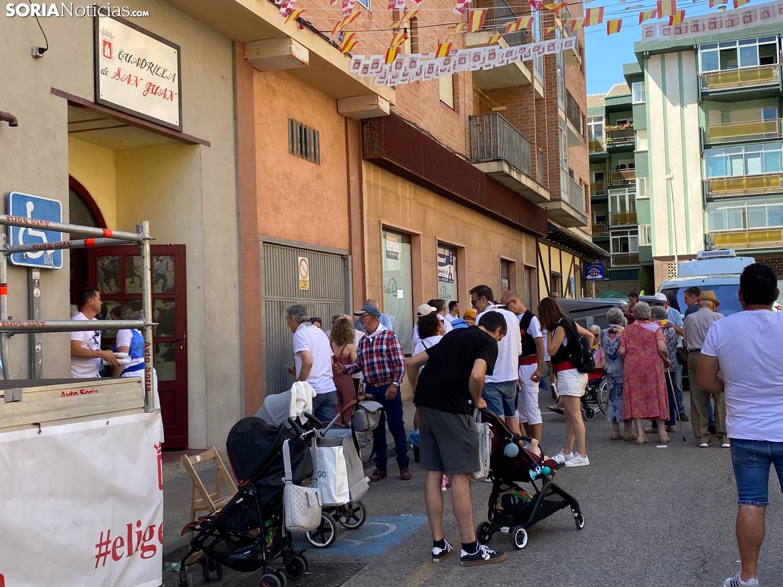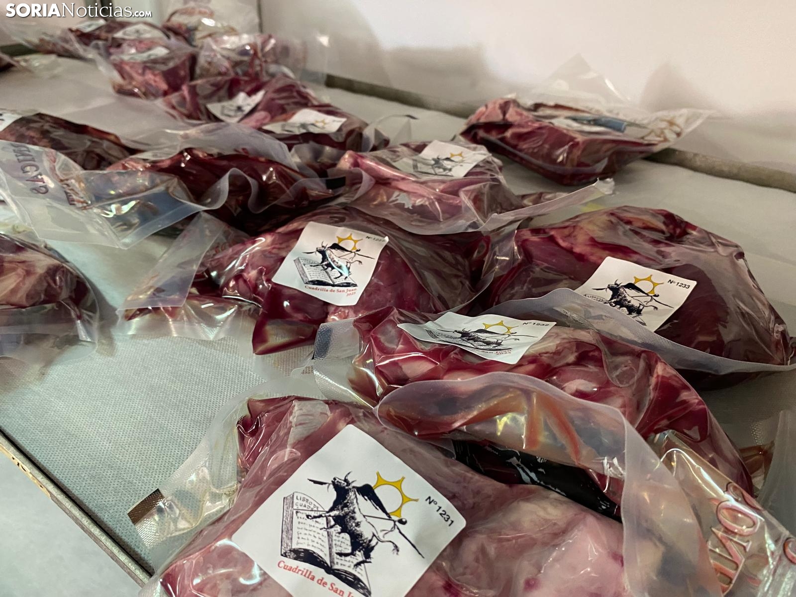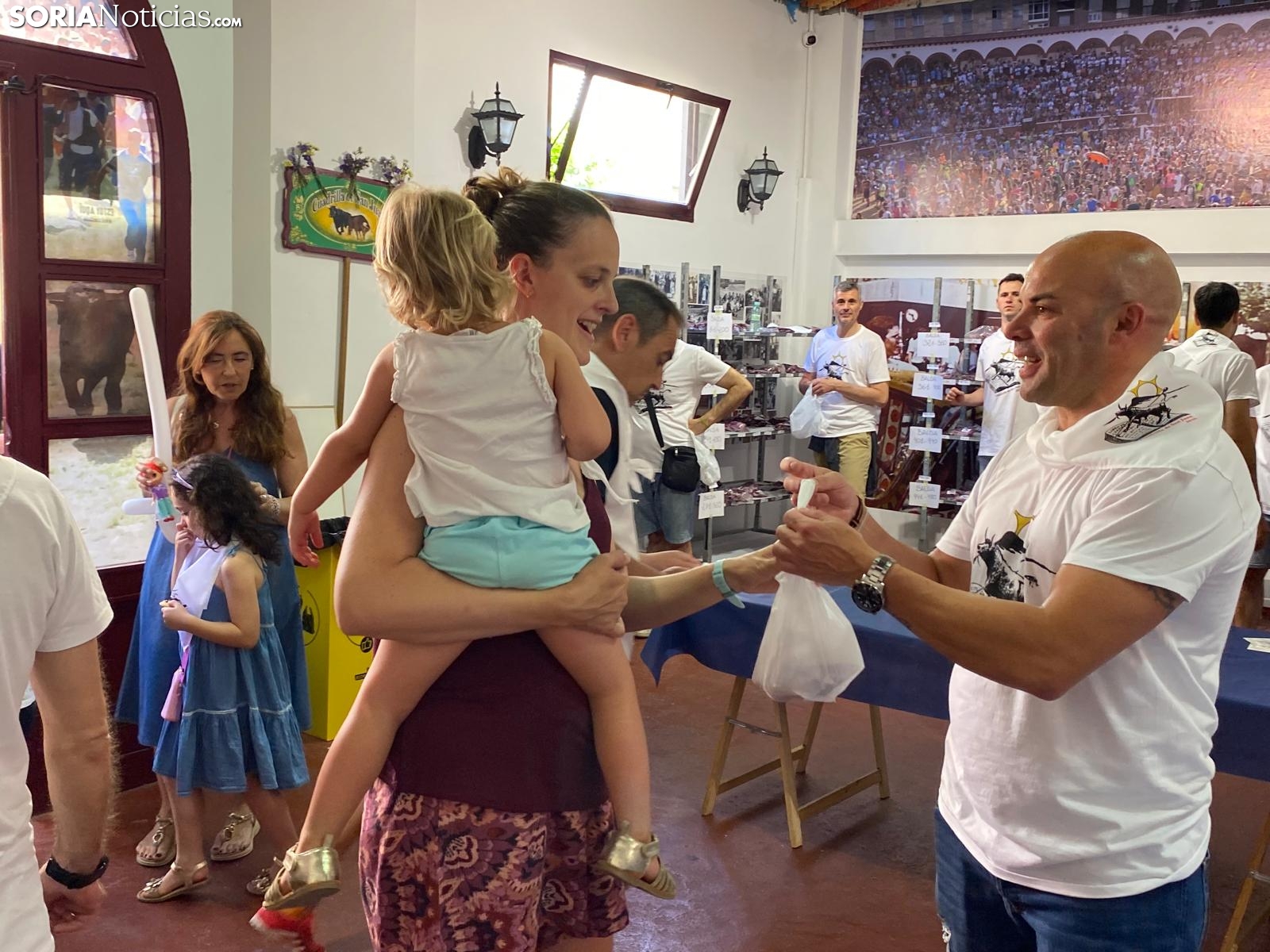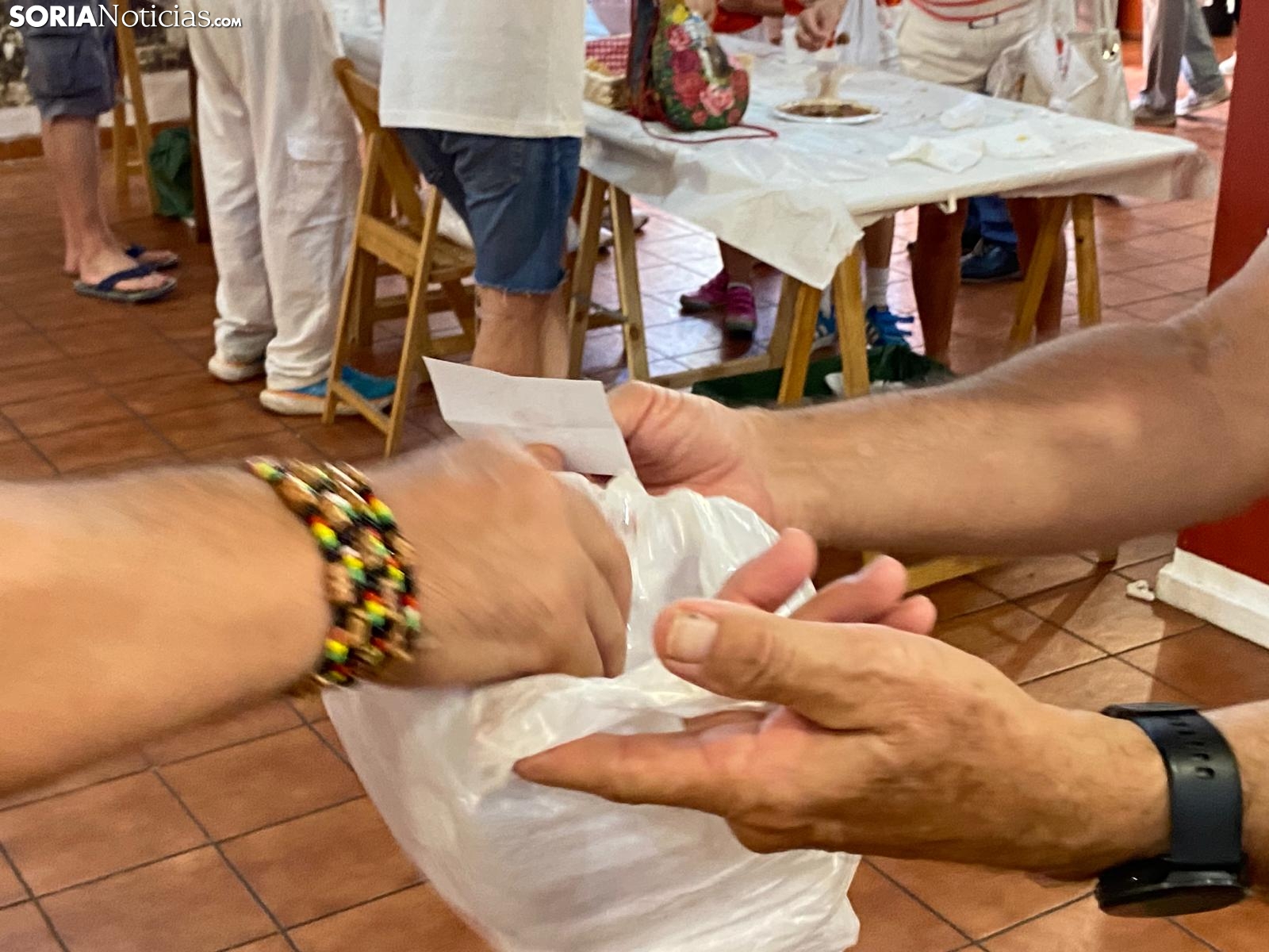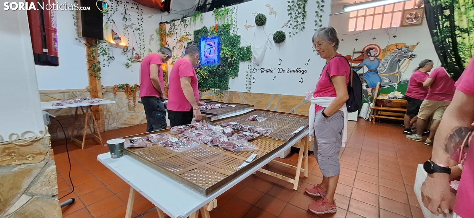 Un sinvivir esta mañana de Sábado agés en las cuadrillas. Miles de sorianos se han acercado a las sedes para recoger la tajada, en fresco, de la carne tras el Agés de toros, ayer. Los locales de las alcaldías de barrio han vivido un tiempo frenético para atender al vecindario y entregar la ración, tras ser presentada la tarjeta habilitada para la ocasión y tomar, al azar, el número que corresponde a cada unidad. Colaboradores, jurados y simpatizantes han recibido al paisanaje, obsequiando con moscatel, pastas y también estofado a la concurrencia. Los niños, protagonistas y voluntariosos al otro lado del mostrador, como en El Calaverón, en una tarea que se ha prolongado ya de madrugada hasta las 13:00 h. Por la tarde, nueva cita en estos lugares con la subasta de las piezas de los novillos lidiados un día antes.