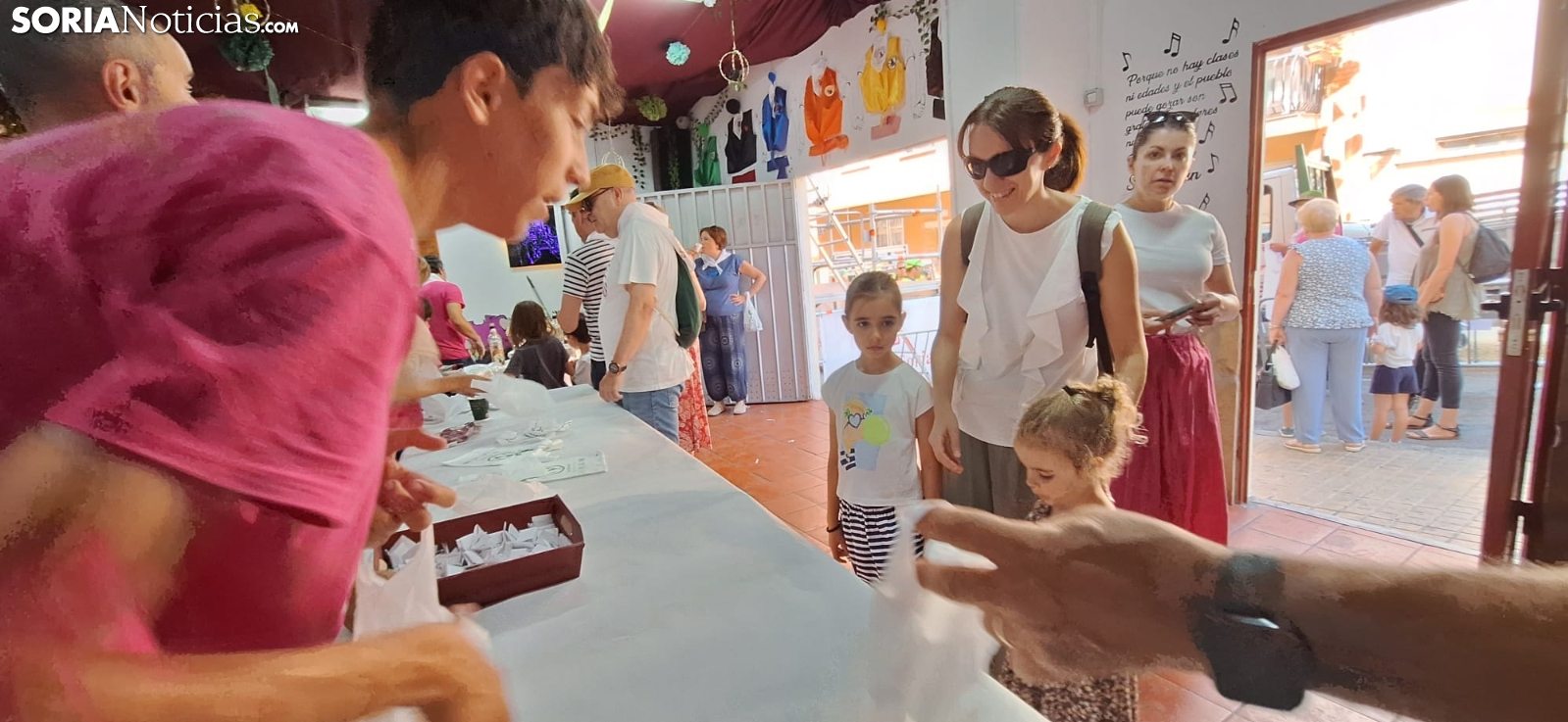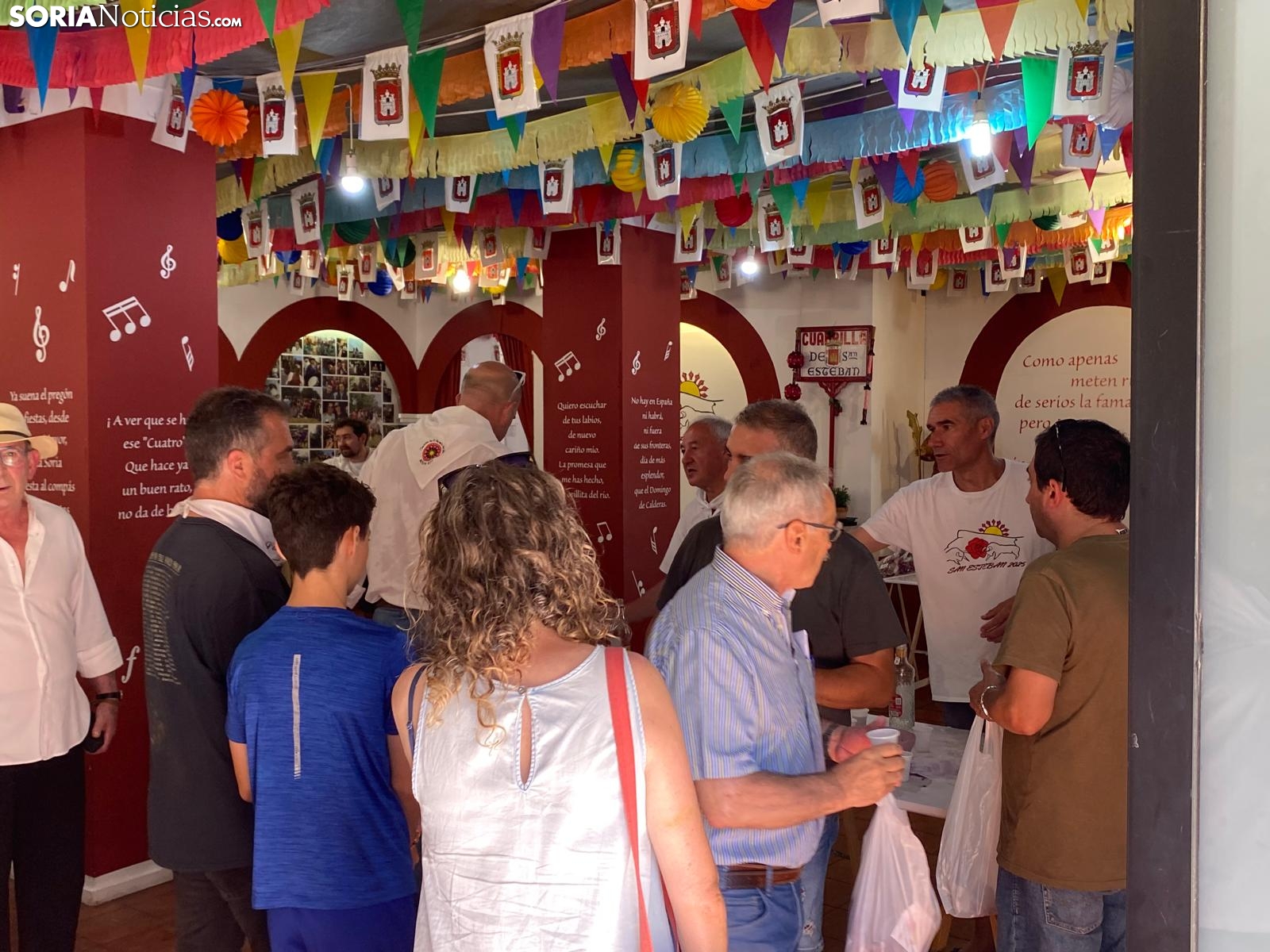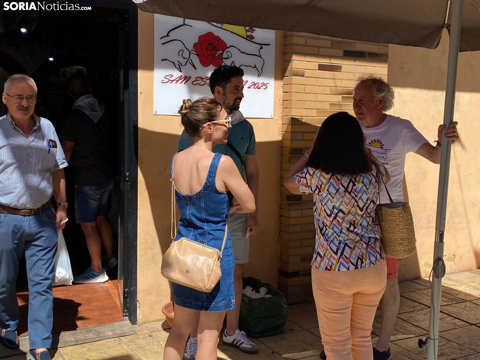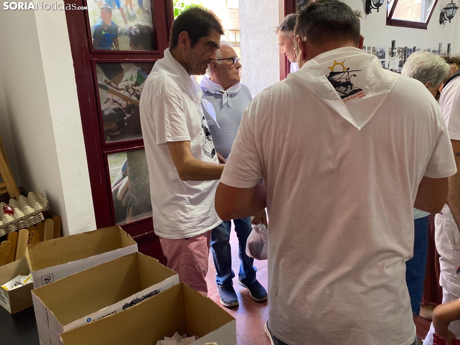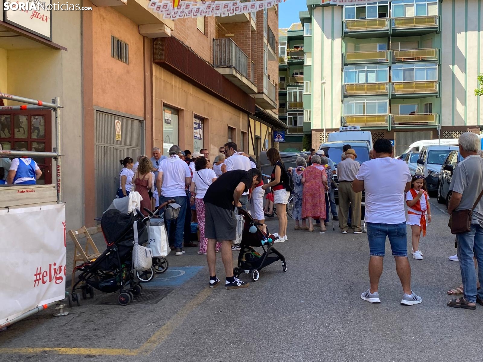 Un sinvivir esta mañana de Sábado agés en las cuadrillas. Miles de sorianos se han acercado a las sedes para recoger la tajada, en fresco, de la carne tras el Agés de toros, ayer. Los locales de las alcaldías de barrio han vivido un tiempo frenético para atender al vecindario y entregar la ración, tras ser presentada la tarjeta habilitada para la ocasión y tomar, al azar, el número que corresponde a cada unidad. Colaboradores, jurados y simpatizantes han recibido al paisanaje, obsequiando con moscatel, pastas y también estofado a la concurrencia. Los niños, protagonistas y voluntariosos al otro lado del mostrador, como en El Calaverón, en una tarea que se ha prolongado ya de madrugada hasta las 13:00 h. Por la tarde, nueva cita en estos lugares con la subasta de las piezas de los novillos lidiados un día antes.