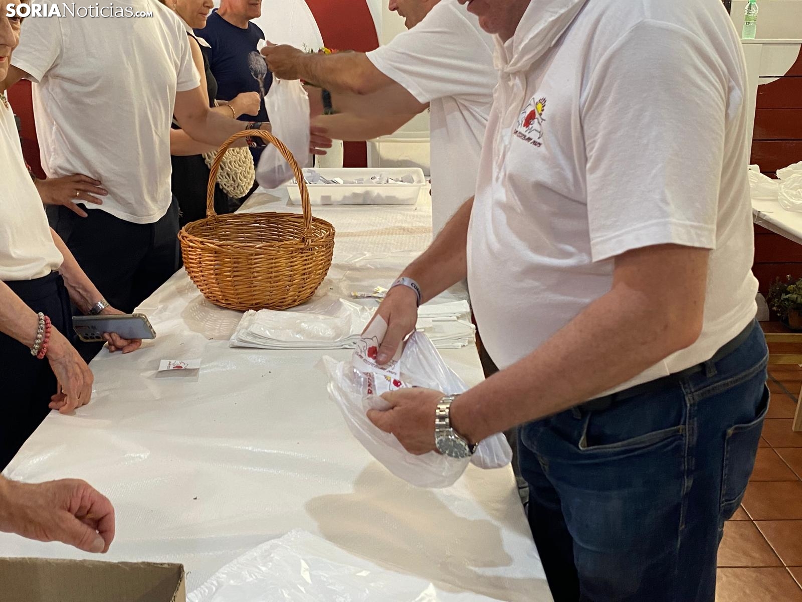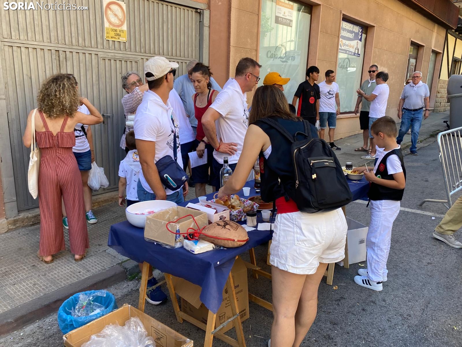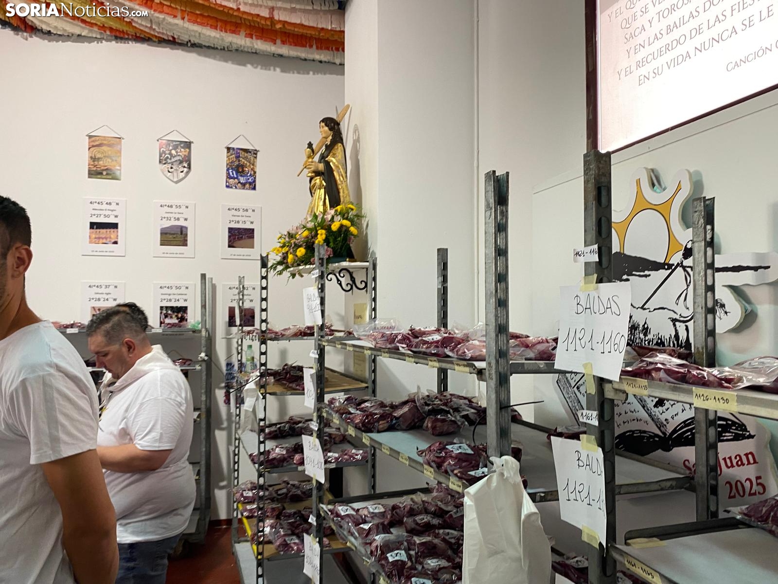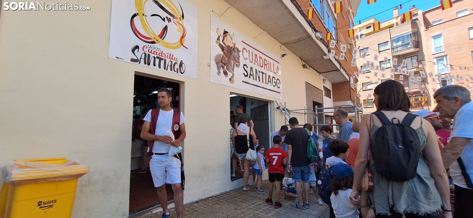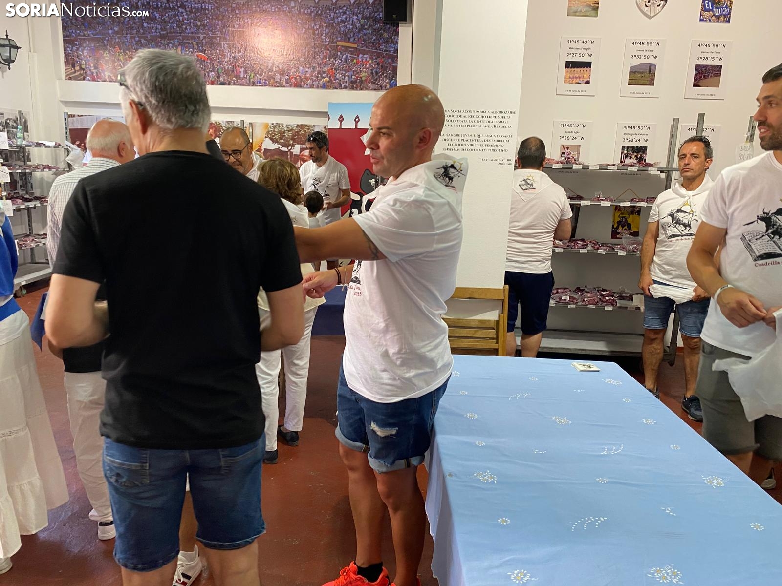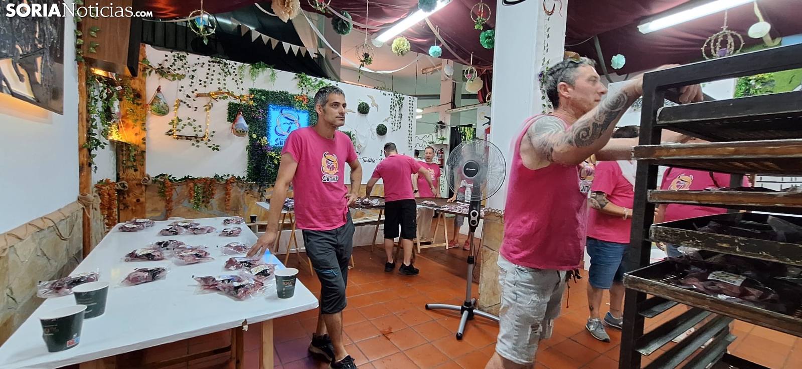 Un sinvivir esta mañana de Sábado agés en las cuadrillas. Miles de sorianos se han acercado a las sedes para recoger la tajada, en fresco, de la carne tras el Agés de toros, ayer. Los locales de las alcaldías de barrio han vivido un tiempo frenético para atender al vecindario y entregar la ración, tras ser presentada la tarjeta habilitada para la ocasión y tomar, al azar, el número que corresponde a cada unidad. Colaboradores, jurados y simpatizantes han recibido al paisanaje, obsequiando con moscatel, pastas y también estofado a la concurrencia. Los niños, protagonistas y voluntariosos al otro lado del mostrador, como en El Calaverón, en una tarea que se ha prolongado ya de madrugada hasta las 13:00 h. Por la tarde, nueva cita en estos lugares con la subasta de las piezas de los novillos lidiados un día antes.