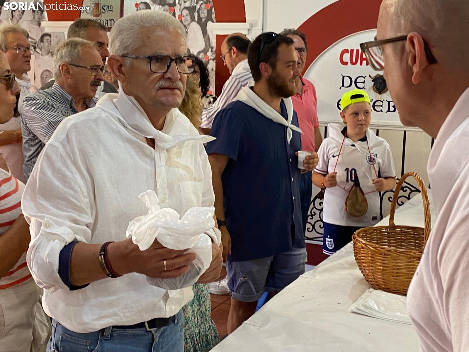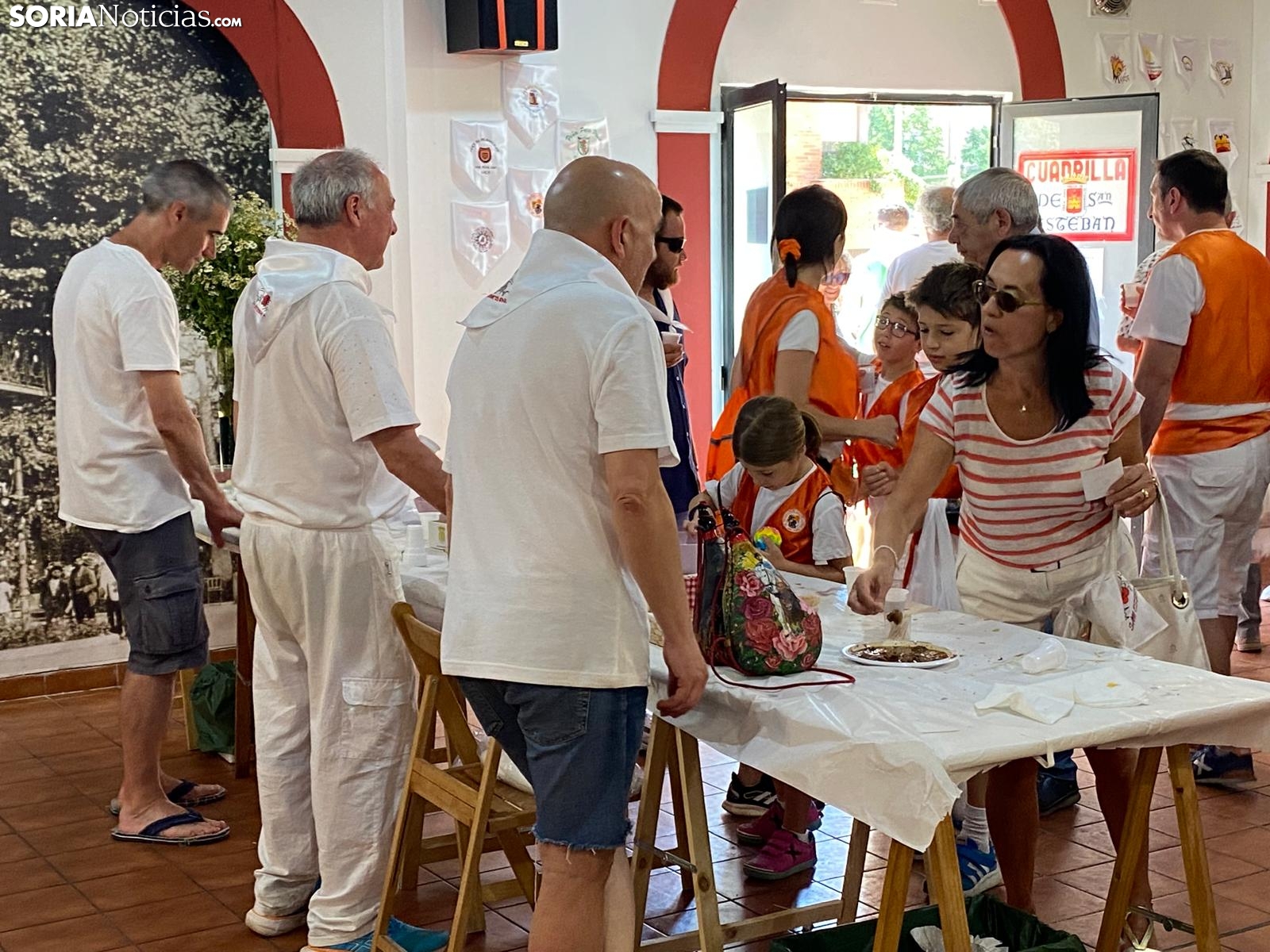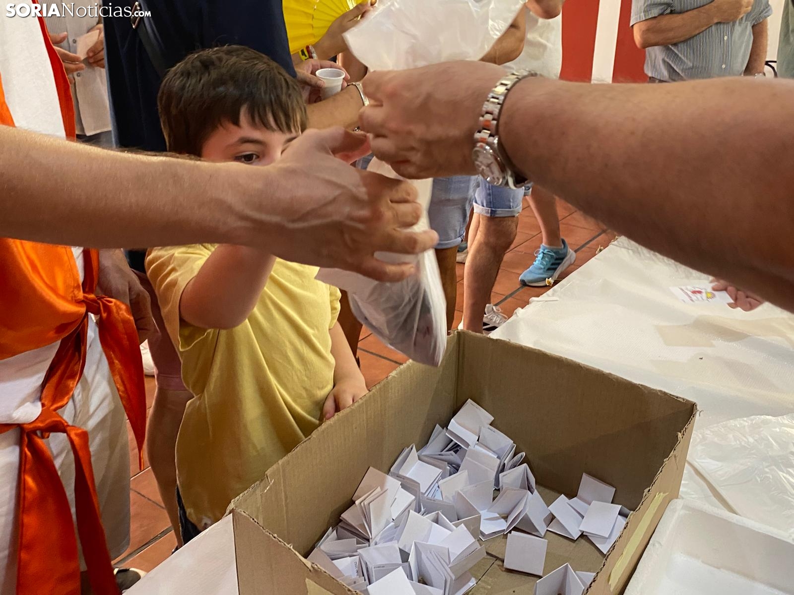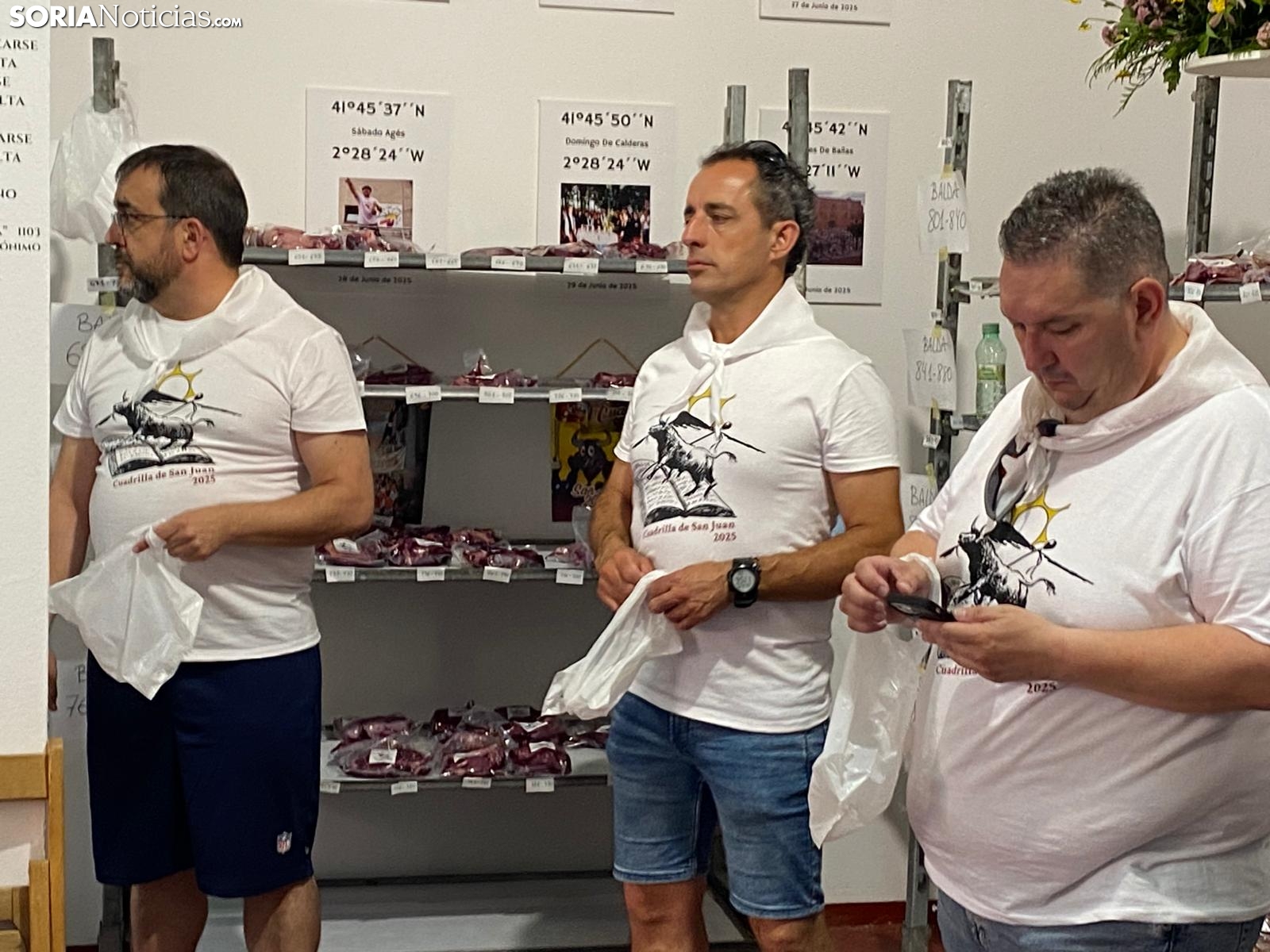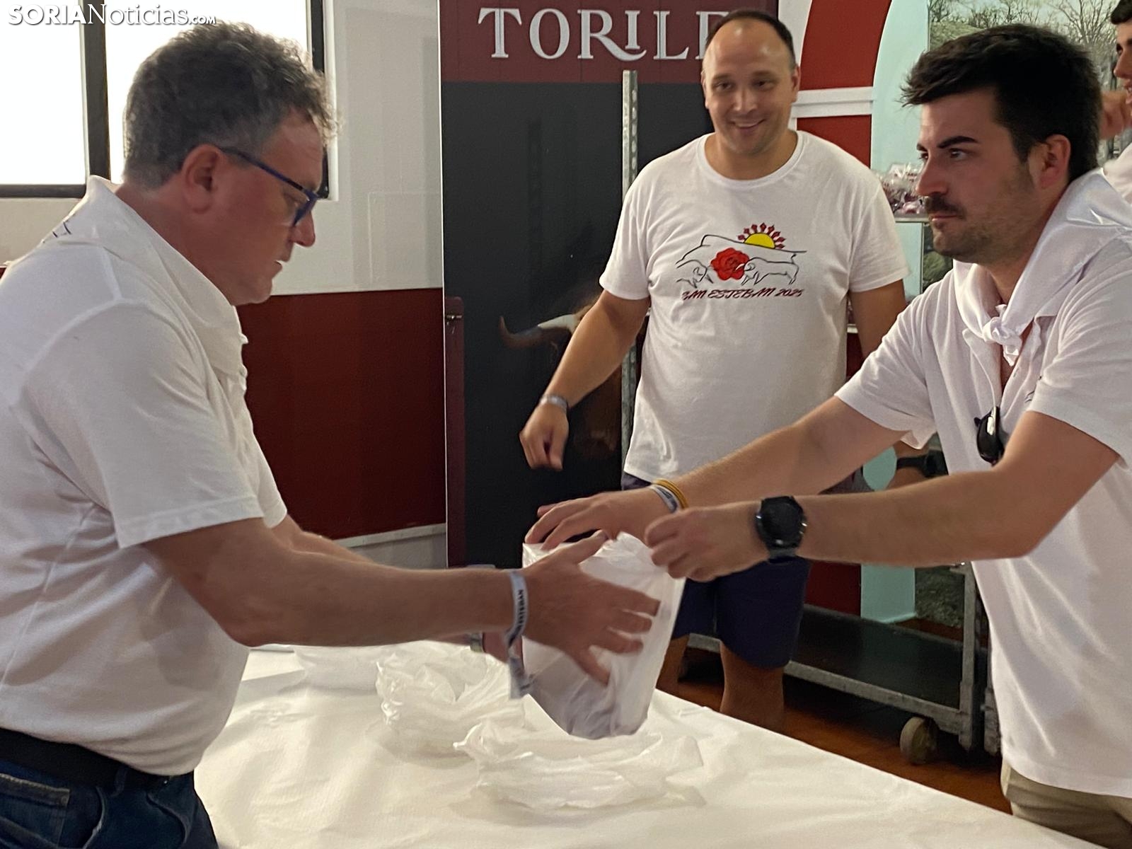 Un sinvivir esta mañana de Sábado agés en las cuadrillas. Miles de sorianos se han acercado a las sedes para recoger la tajada, en fresco, de la carne tras el Agés de toros, ayer. Los locales de las alcaldías de barrio han vivido un tiempo frenético para atender al vecindario y entregar la ración, tras ser presentada la tarjeta habilitada para la ocasión y tomar, al azar, el número que corresponde a cada unidad. Colaboradores, jurados y simpatizantes han recibido al paisanaje, obsequiando con moscatel, pastas y también estofado a la concurrencia. Los niños, protagonistas y voluntariosos al otro lado del mostrador, como en El Calaverón, en una tarea que se ha prolongado ya de madrugada hasta las 13:00 h. Por la tarde, nueva cita en estos lugares con la subasta de las piezas de los novillos lidiados un día antes.