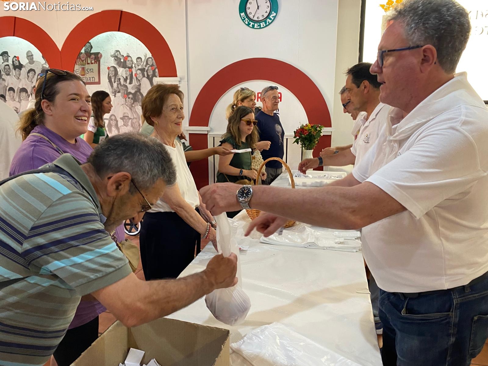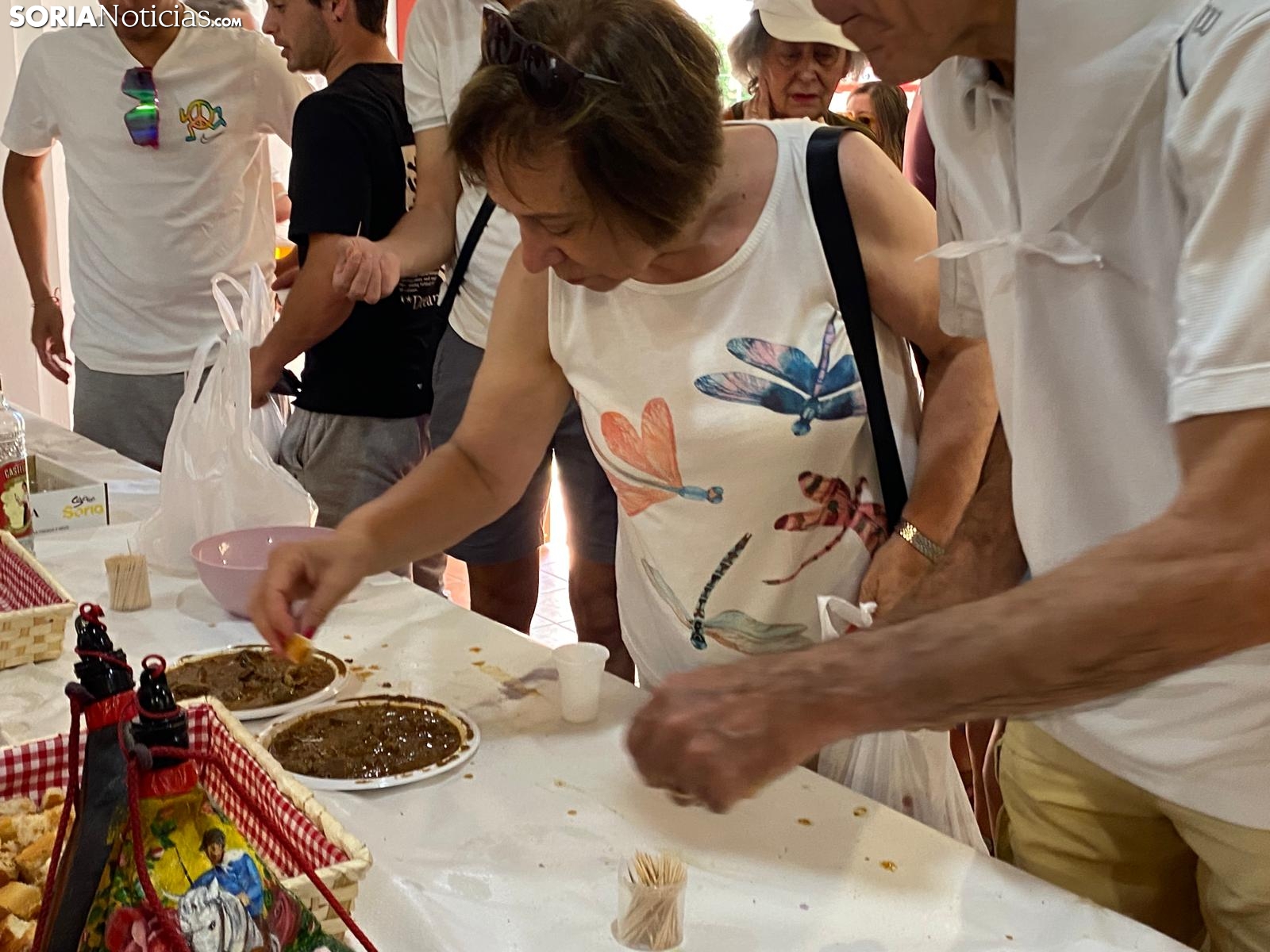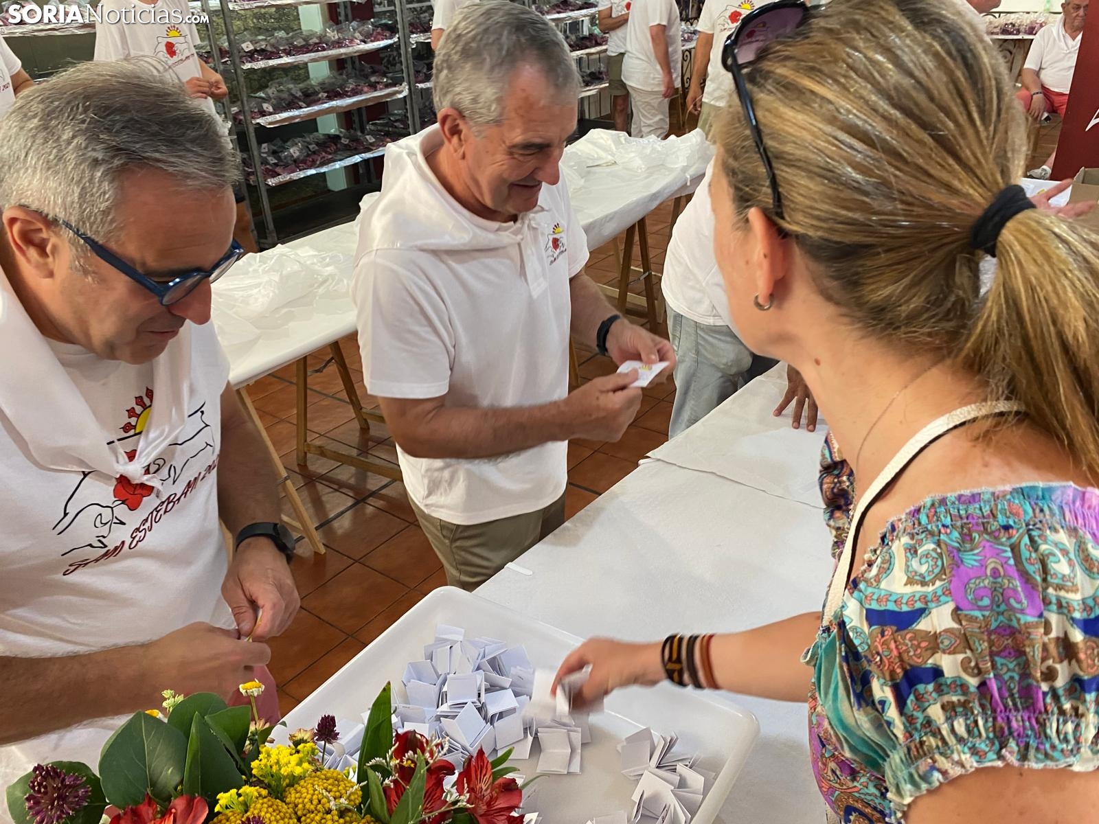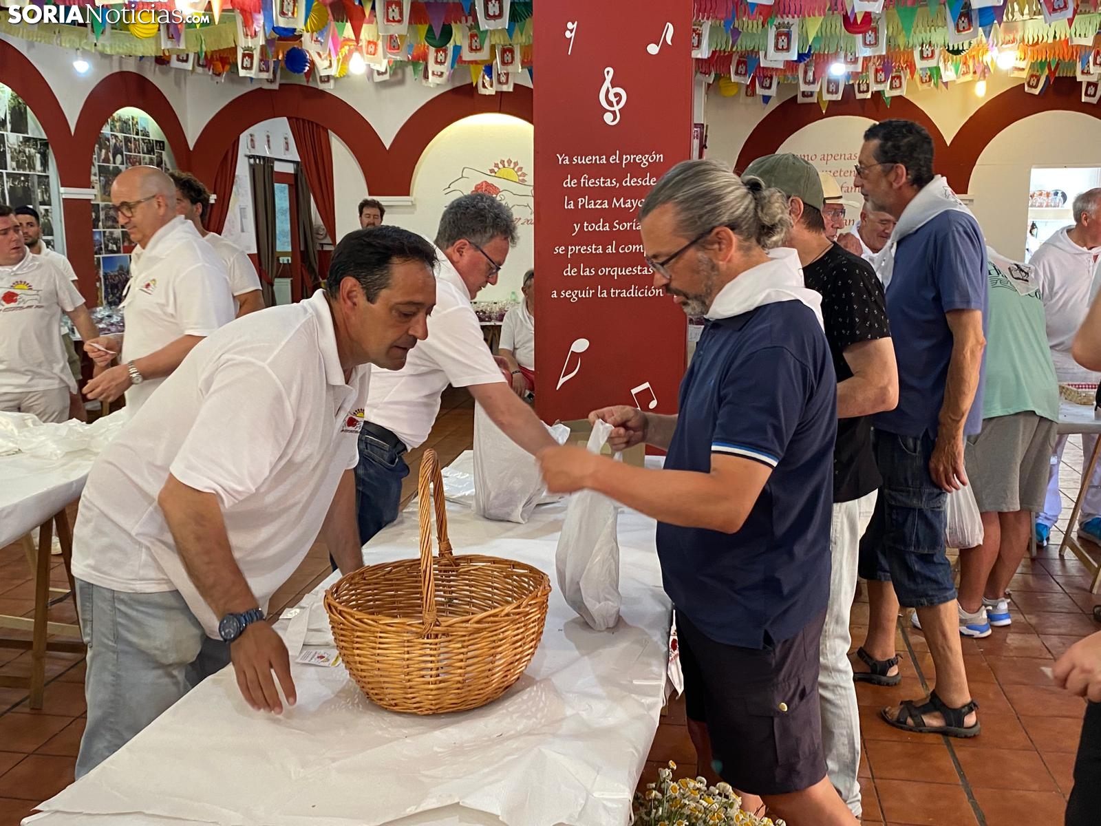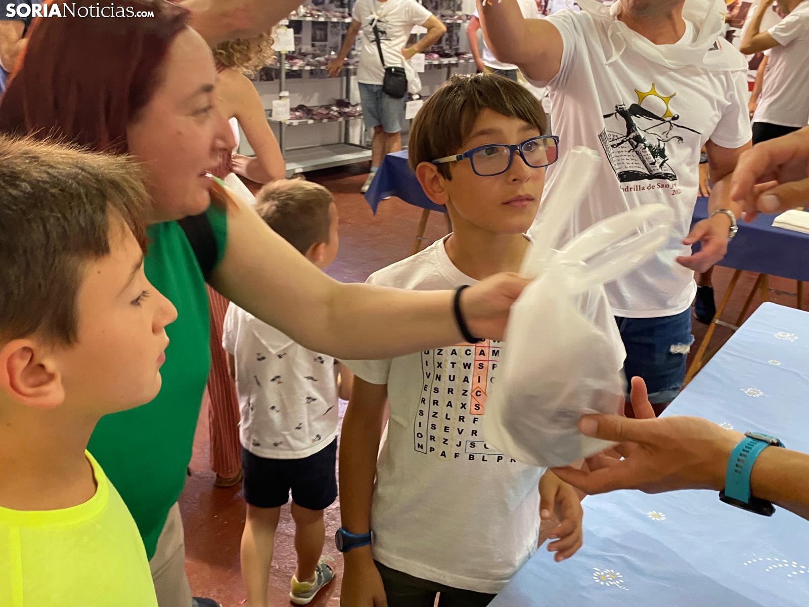 Un sinvivir esta mañana de Sábado agés en las cuadrillas. Miles de sorianos se han acercado a las sedes para recoger la tajada, en fresco, de la carne tras el Agés de toros, ayer. Los locales de las alcaldías de barrio han vivido un tiempo frenético para atender al vecindario y entregar la ración, tras ser presentada la tarjeta habilitada para la ocasión y tomar, al azar, el número que corresponde a cada unidad. Colaboradores, jurados y simpatizantes han recibido al paisanaje, obsequiando con moscatel, pastas y también estofado a la concurrencia. Los niños, protagonistas y voluntariosos al otro lado del mostrador, como en El Calaverón, en una tarea que se ha prolongado ya de madrugada hasta las 13:00 h. Por la tarde, nueva cita en estos lugares con la subasta de las piezas de los novillos lidiados un día antes.