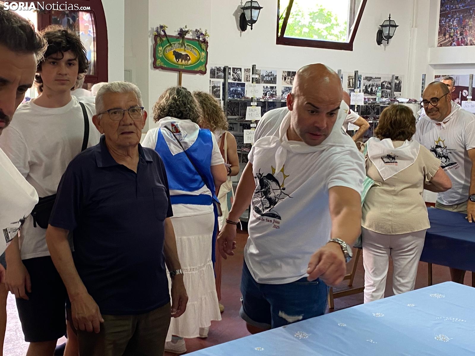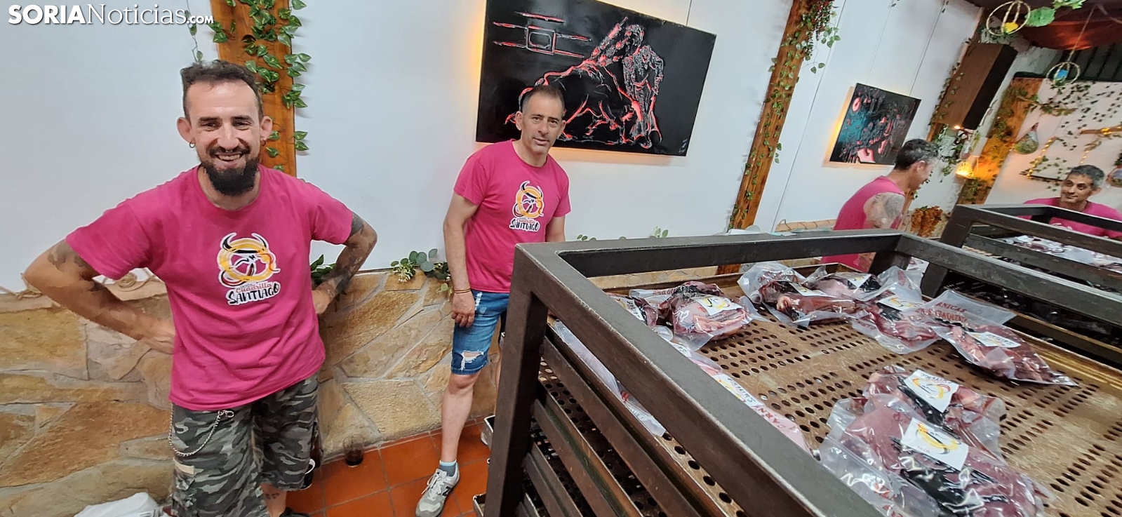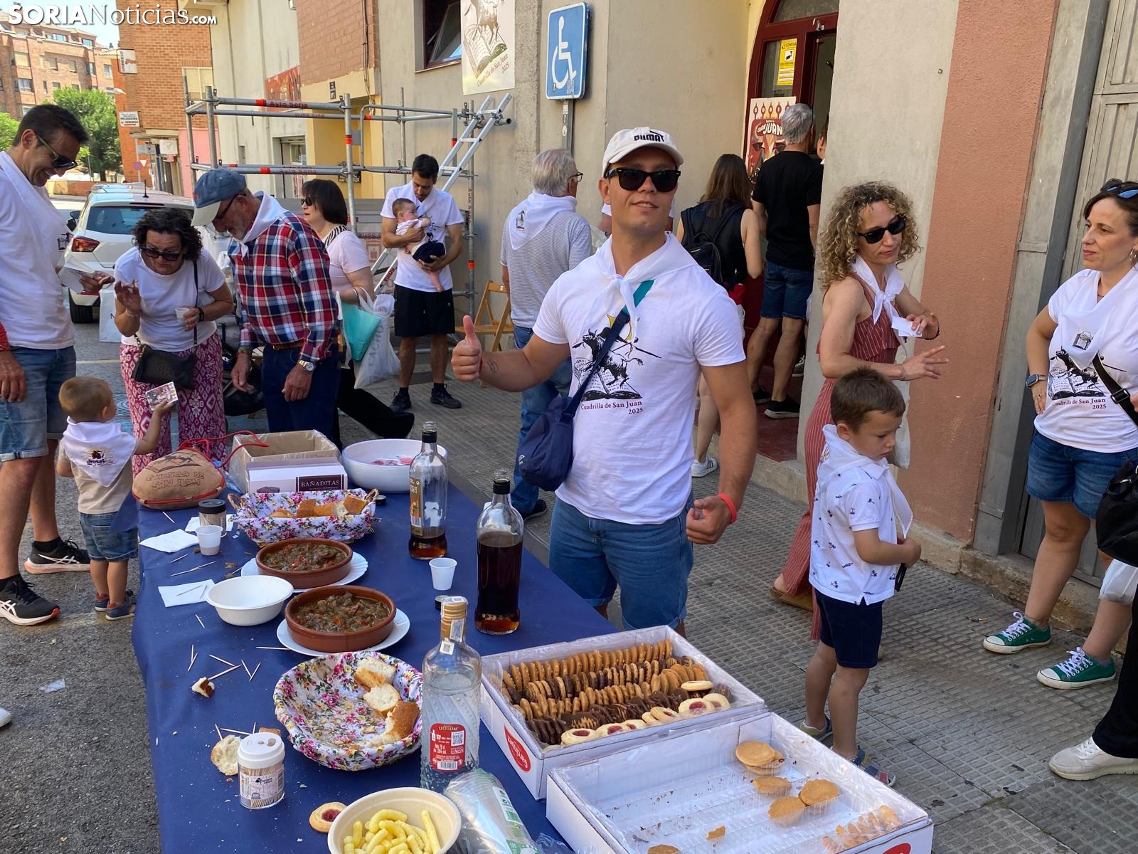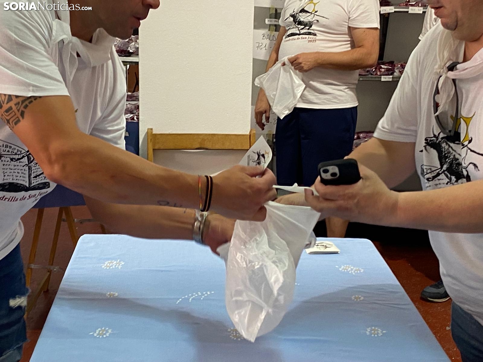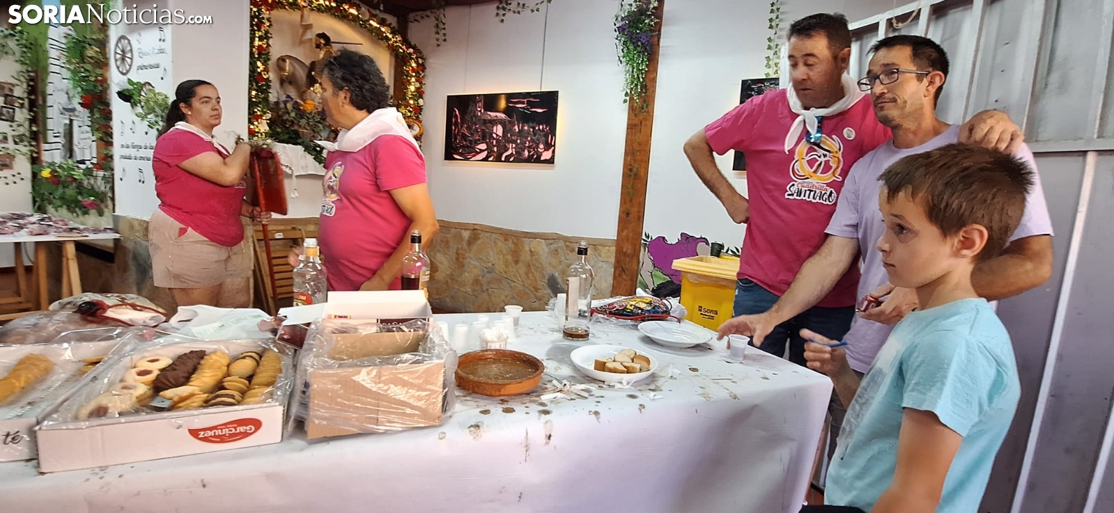 Un sinvivir esta mañana de Sábado agés en las cuadrillas. Miles de sorianos se han acercado a las sedes para recoger la tajada, en fresco, de la carne tras el Agés de toros, ayer. Los locales de las alcaldías de barrio han vivido un tiempo frenético para atender al vecindario y entregar la ración, tras ser presentada la tarjeta habilitada para la ocasión y tomar, al azar, el número que corresponde a cada unidad. Colaboradores, jurados y simpatizantes han recibido al paisanaje, obsequiando con moscatel, pastas y también estofado a la concurrencia. Los niños, protagonistas y voluntariosos al otro lado del mostrador, como en El Calaverón, en una tarea que se ha prolongado ya de madrugada hasta las 13:00 h. Por la tarde, nueva cita en estos lugares con la subasta de las piezas de los novillos lidiados un día antes.