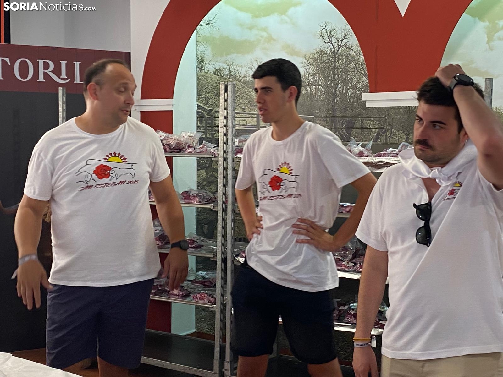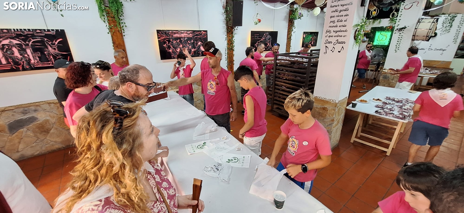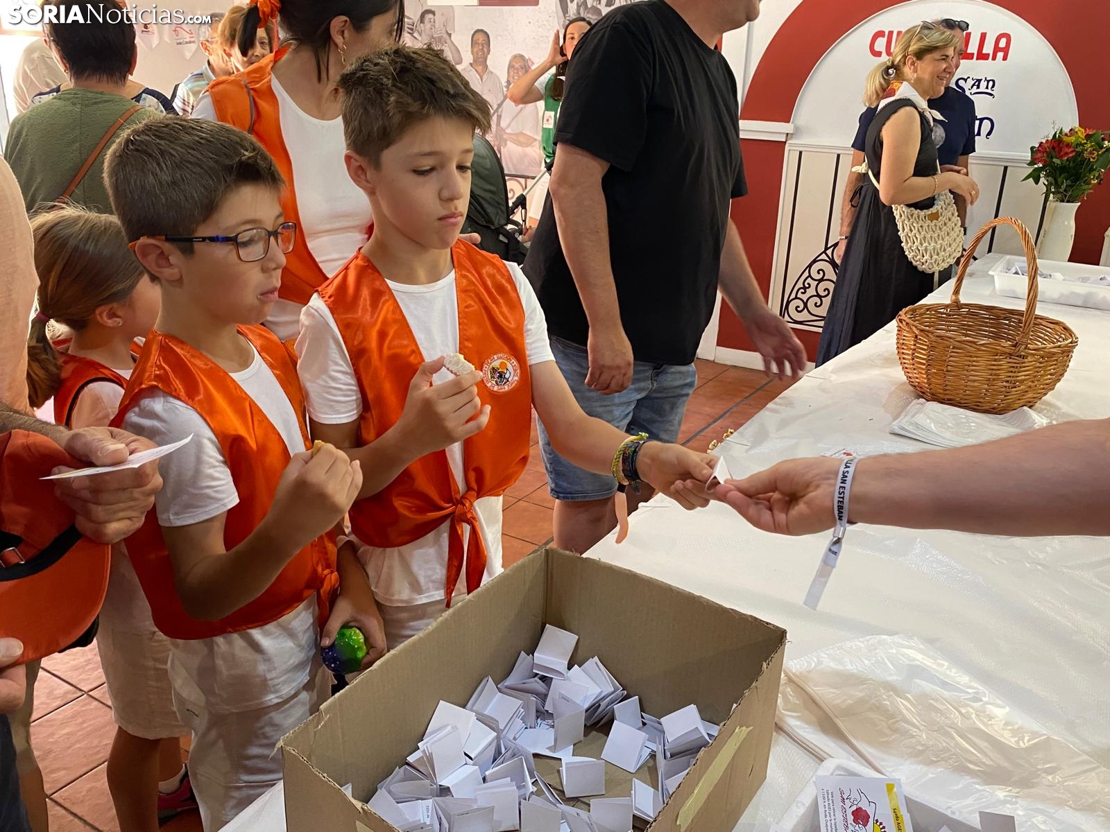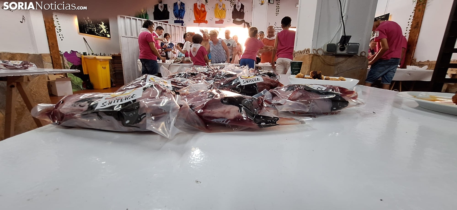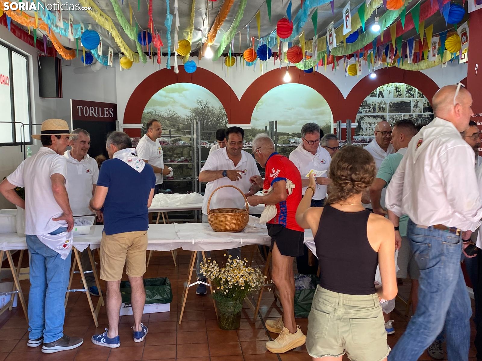 Un sinvivir esta mañana de Sábado agés en las cuadrillas. Miles de sorianos se han acercado a las sedes para recoger la tajada, en fresco, de la carne tras el Agés de toros, ayer. Los locales de las alcaldías de barrio han vivido un tiempo frenético para atender al vecindario y entregar la ración, tras ser presentada la tarjeta habilitada para la ocasión y tomar, al azar, el número que corresponde a cada unidad. Colaboradores, jurados y simpatizantes han recibido al paisanaje, obsequiando con moscatel, pastas y también estofado a la concurrencia. Los niños, protagonistas y voluntariosos al otro lado del mostrador, como en El Calaverón, en una tarea que se ha prolongado ya de madrugada hasta las 13:00 h. Por la tarde, nueva cita en estos lugares con la subasta de las piezas de los novillos lidiados un día antes.