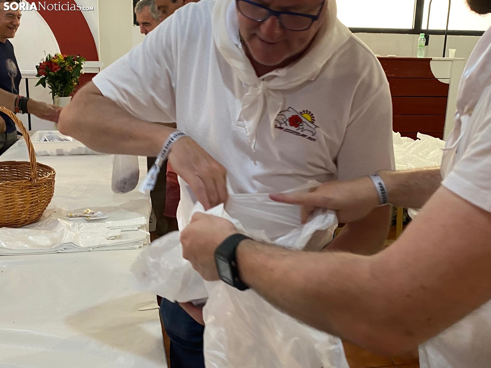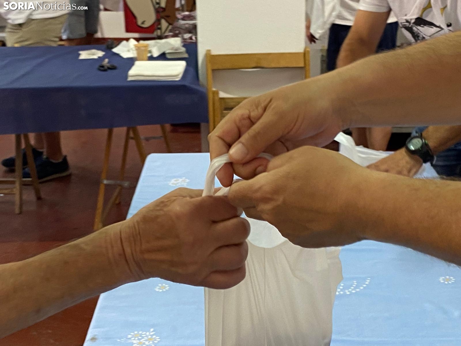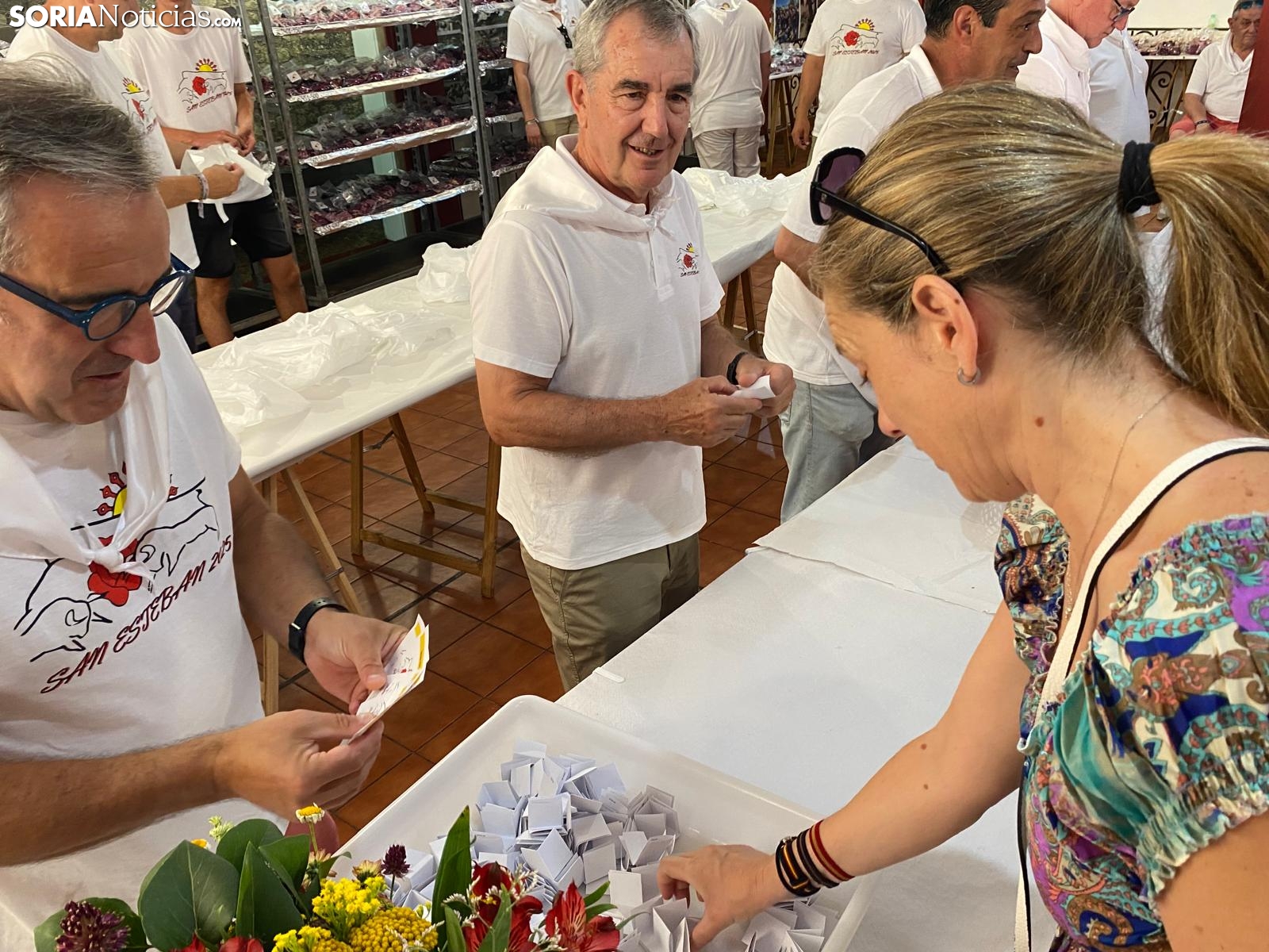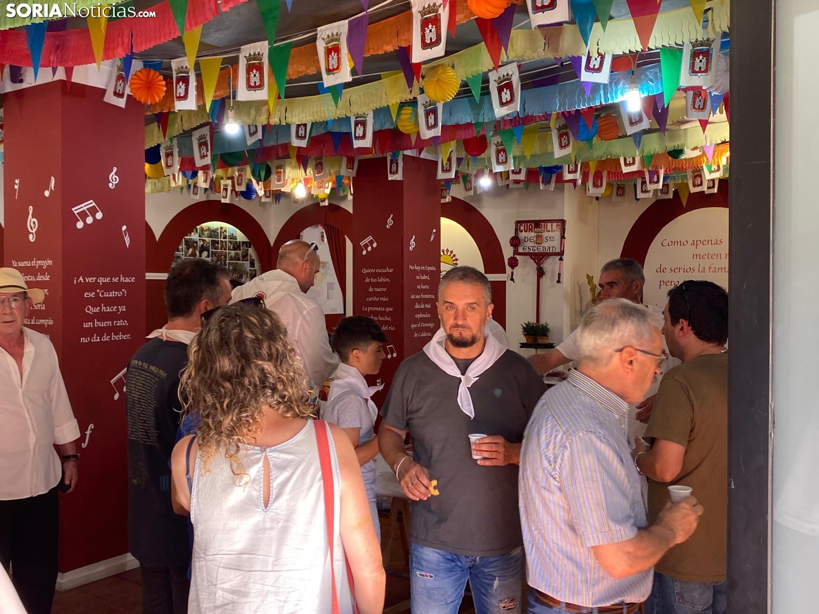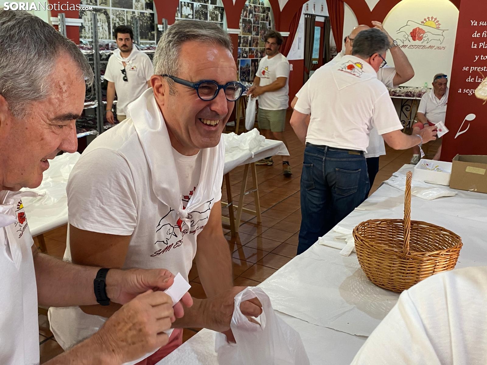 Un sinvivir esta mañana de Sábado agés en las cuadrillas. Miles de sorianos se han acercado a las sedes para recoger la tajada, en fresco, de la carne tras el Agés de toros, ayer. Los locales de las alcaldías de barrio han vivido un tiempo frenético para atender al vecindario y entregar la ración, tras ser presentada la tarjeta habilitada para la ocasión y tomar, al azar, el número que corresponde a cada unidad. Colaboradores, jurados y simpatizantes han recibido al paisanaje, obsequiando con moscatel, pastas y también estofado a la concurrencia. Los niños, protagonistas y voluntariosos al otro lado del mostrador, como en El Calaverón, en una tarea que se ha prolongado ya de madrugada hasta las 13:00 h. Por la tarde, nueva cita en estos lugares con la subasta de las piezas de los novillos lidiados un día antes.